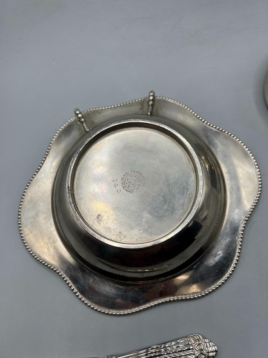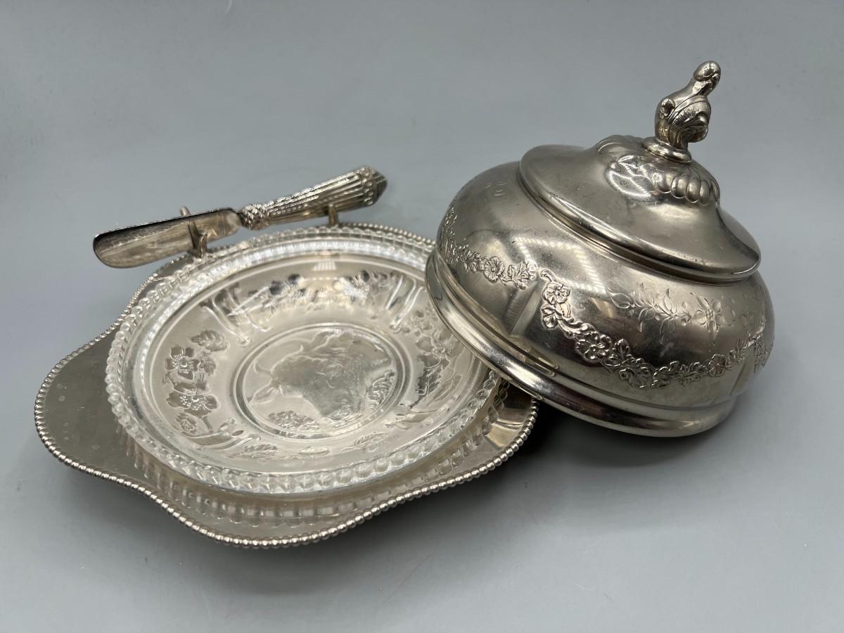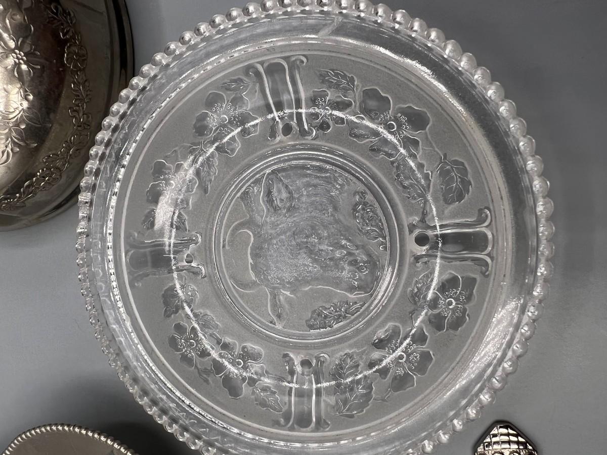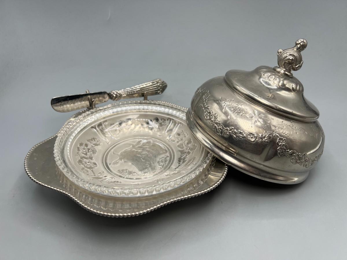 Vintage Pairpoint Quadruple Plate 345 Butter Glass Cow Insert Plate Motif with Yamazaki Japan Butter Knife