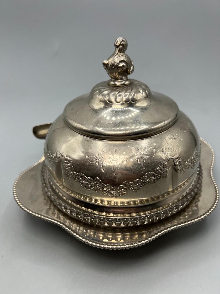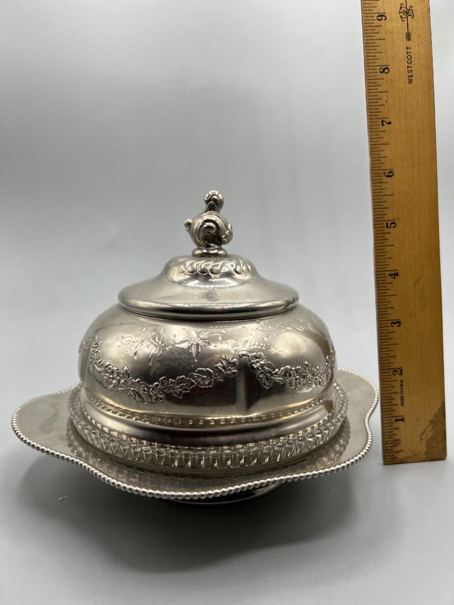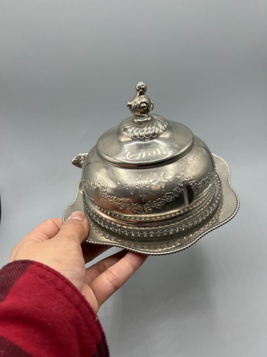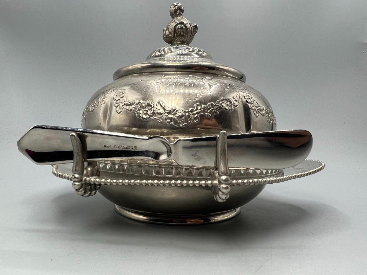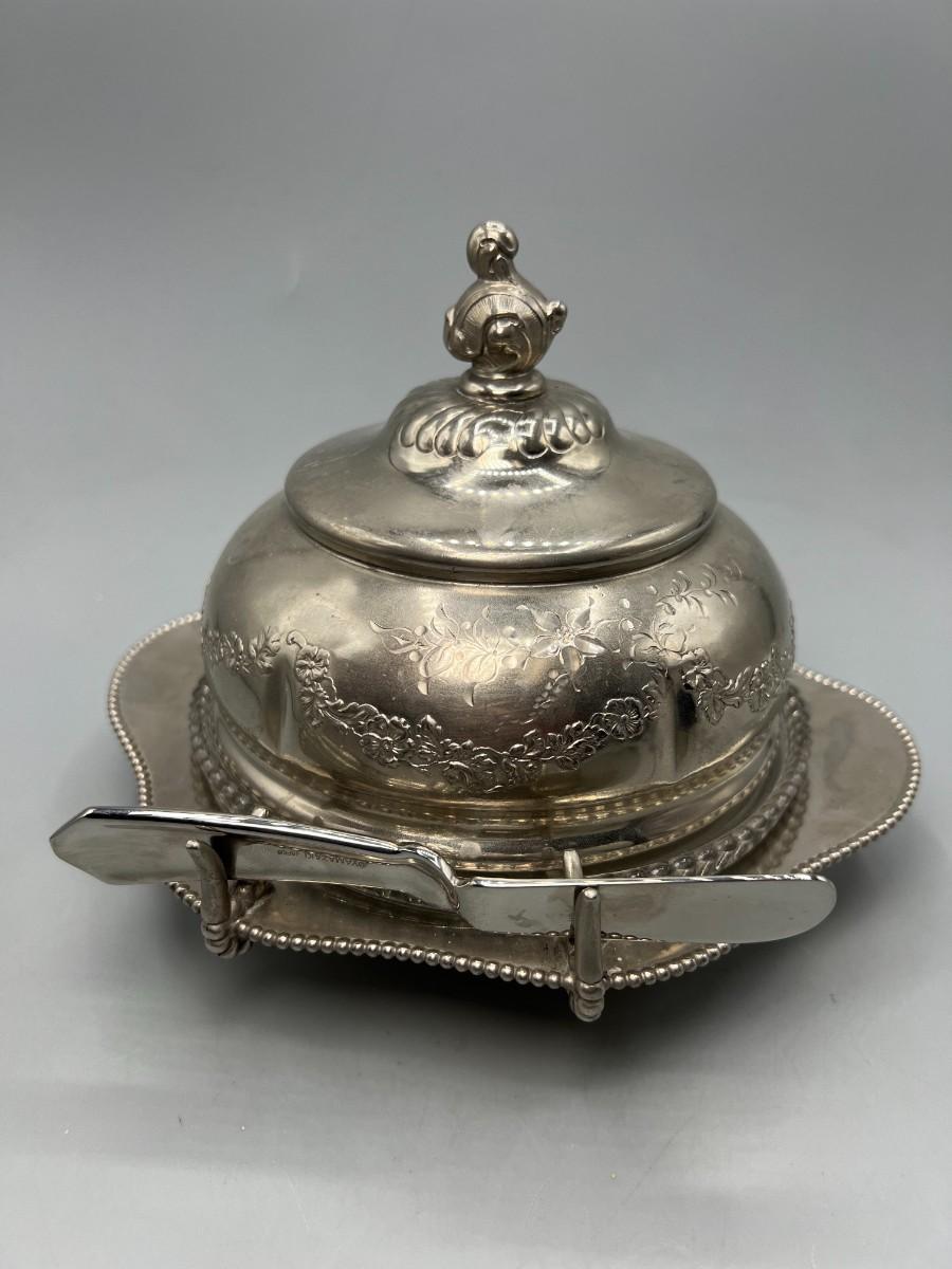Vintage Pairpoint Quadruple Plate 345 Butter Glass Cow Insert Plate Motif with Yamazaki Japan Butter Knife