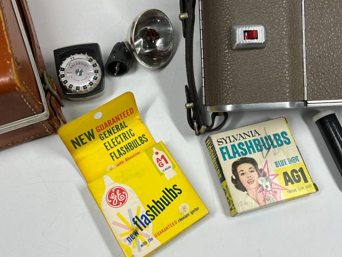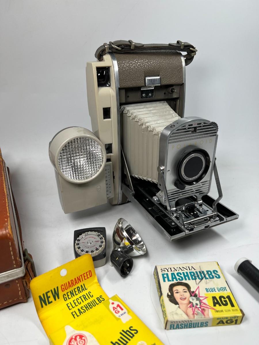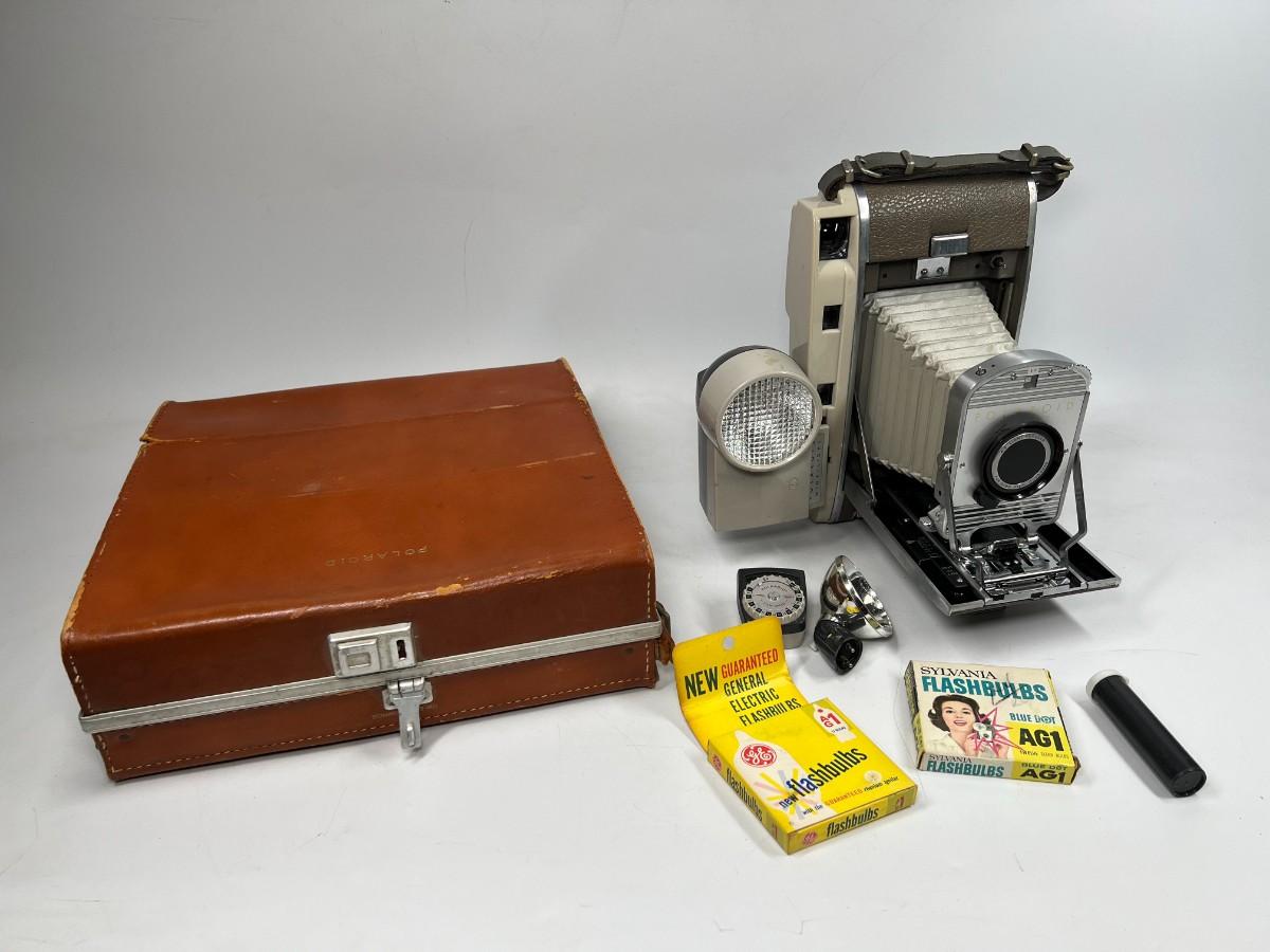 Vintage Polaroid 800 Land Camera with Attachments, Accessories, & Case
