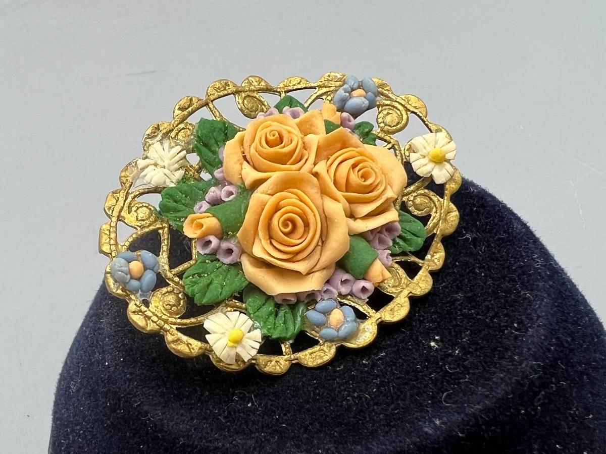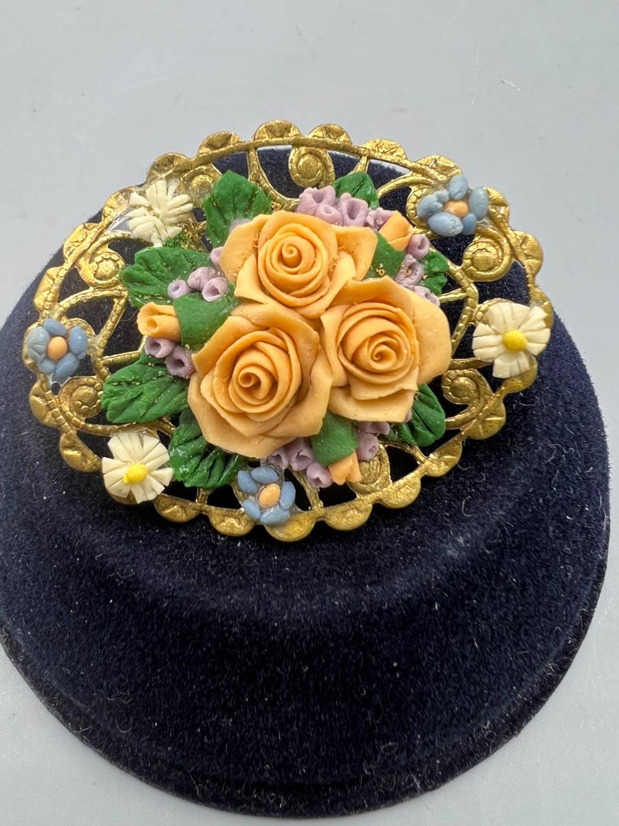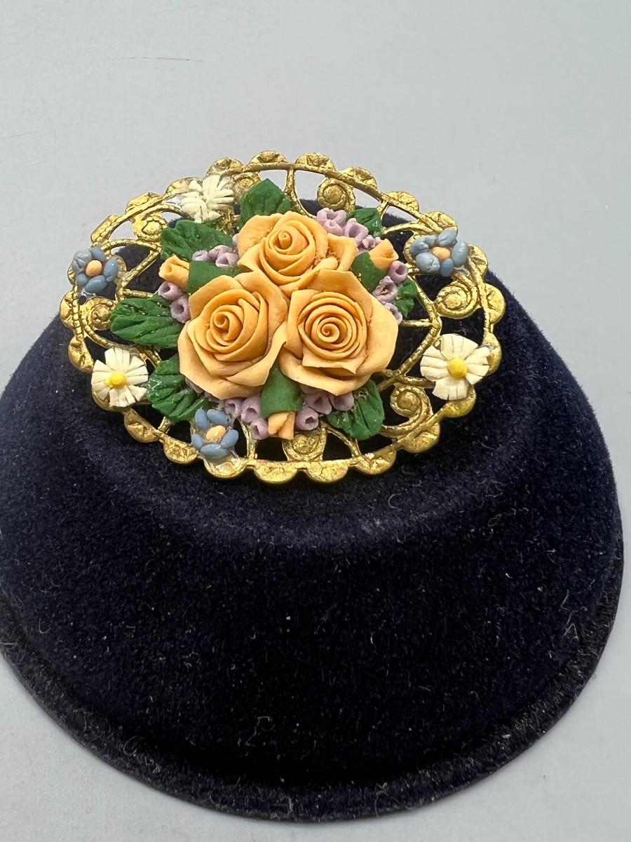 Small Vintage Handmade Bisque Rose Lapel Pin