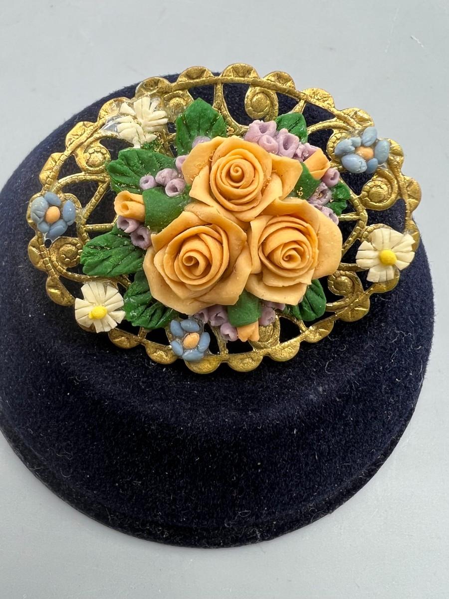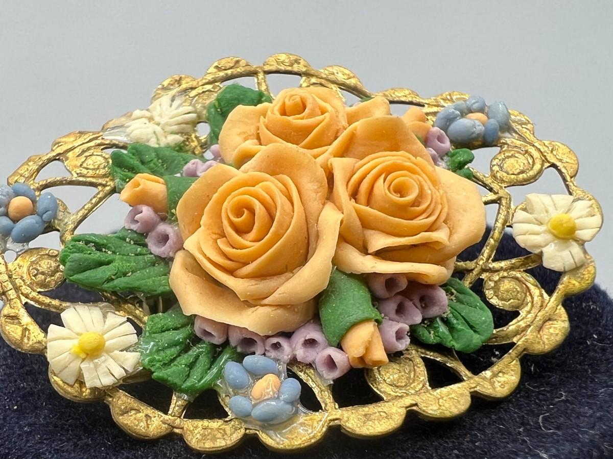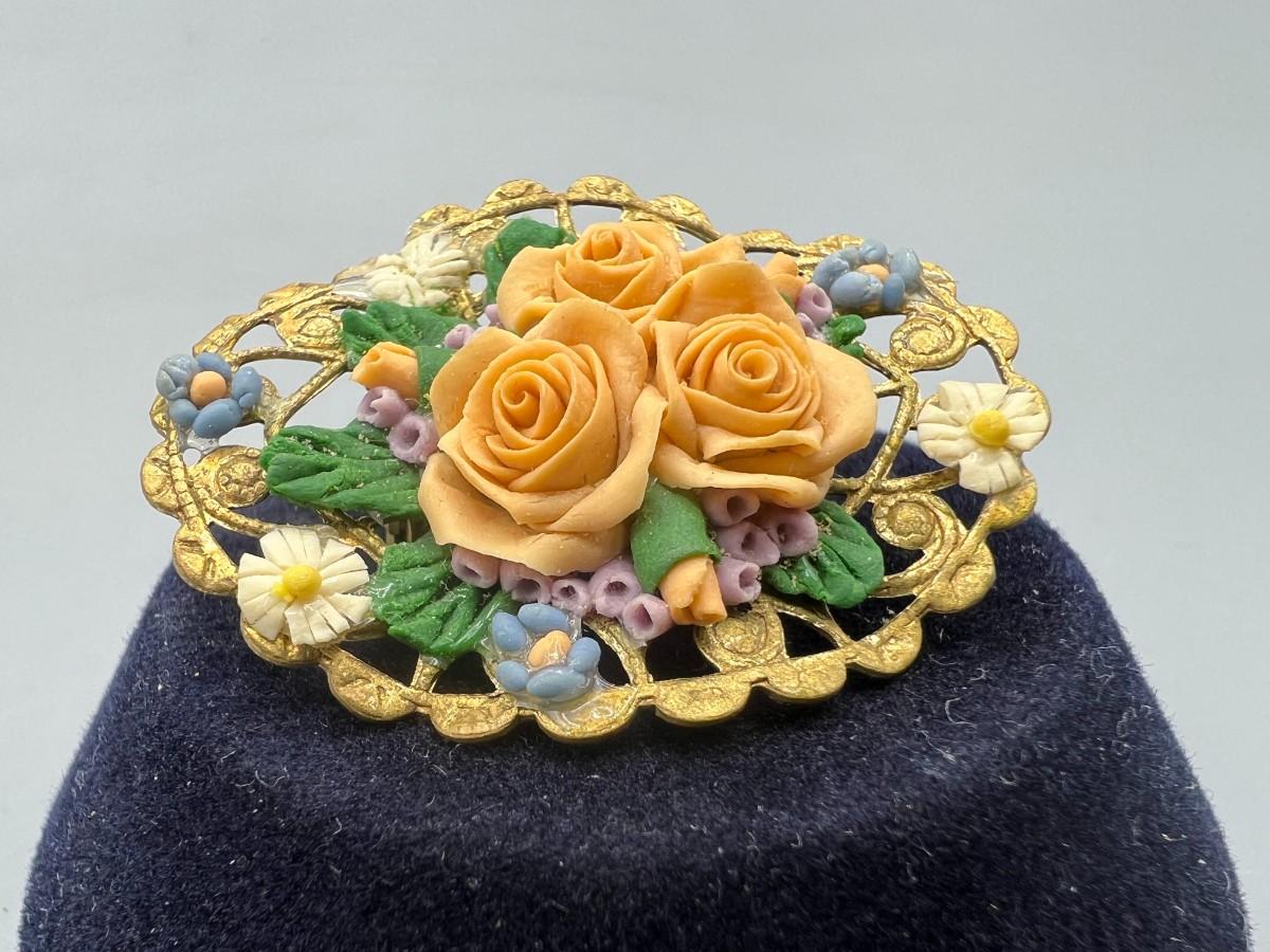 Small Vintage Handmade Bisque Rose Lapel Pin