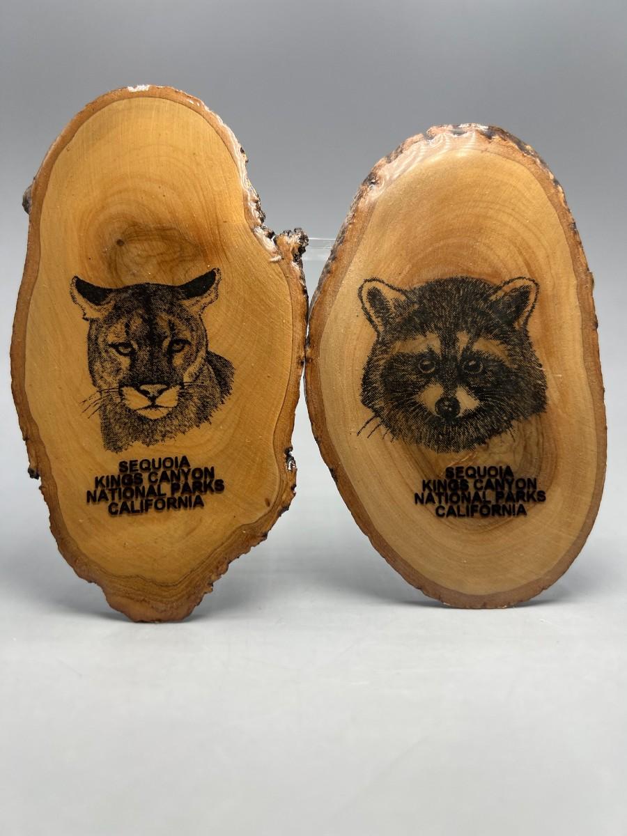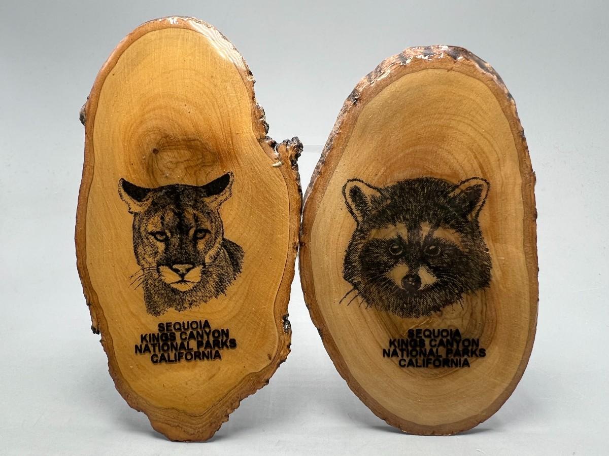 Pair Sequoia Kings Canyon National Parks California Racoon & Wild Bobcat Fridge Magnets