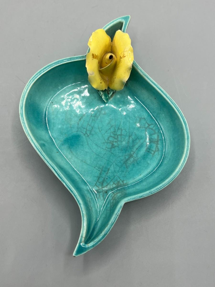 Vintage Ceramic Lily Pad Flower Cottagecore Trinket Dish
