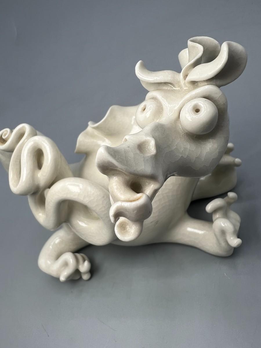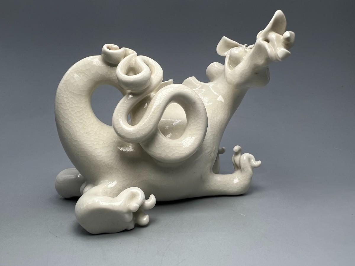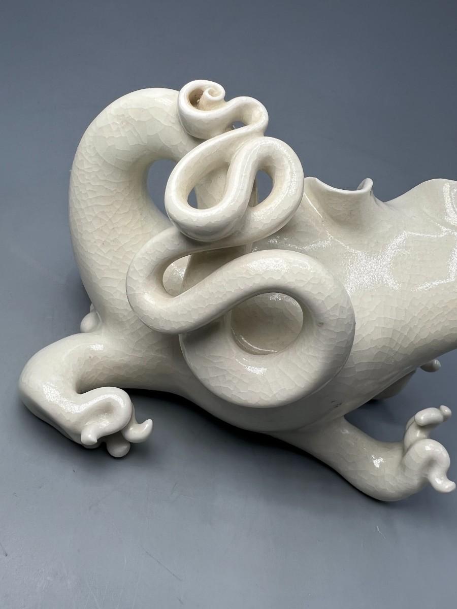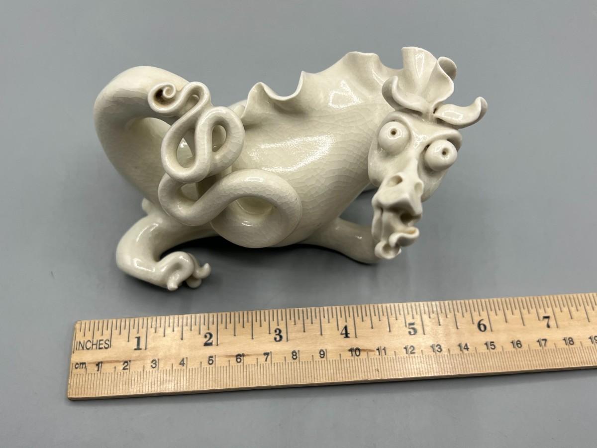 Vintage SIgned Ceramic Art Figural Abstract Surreal Dragon Figurine Sculpture