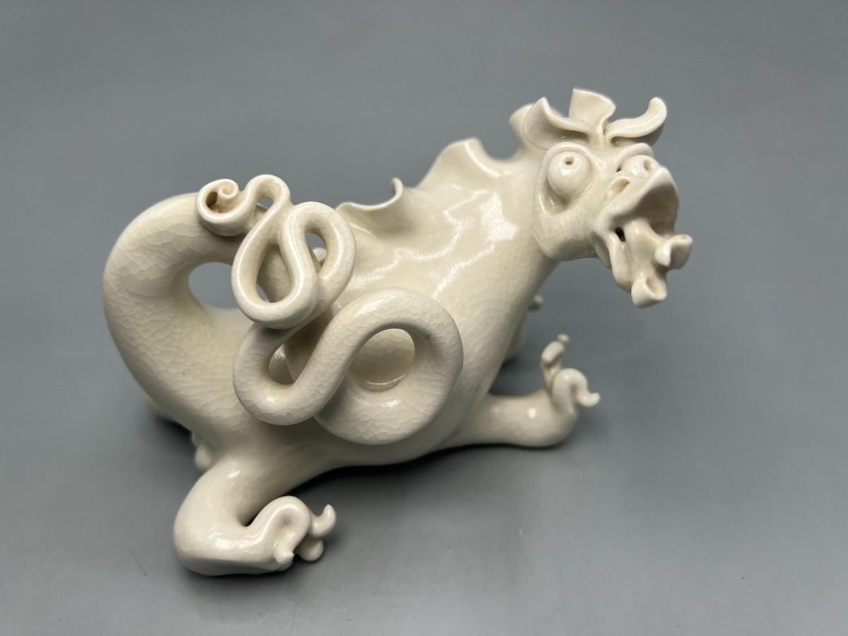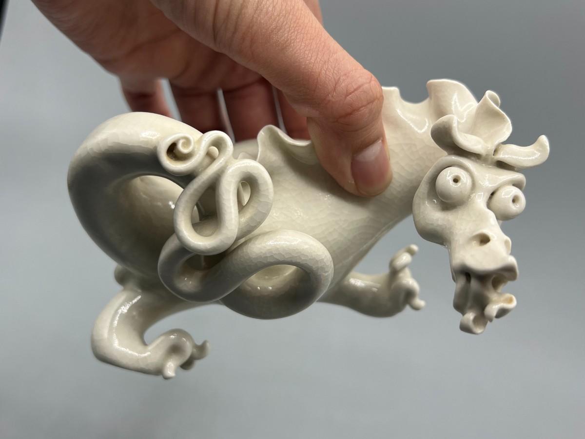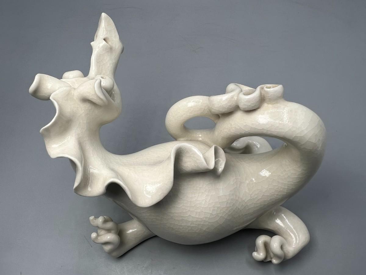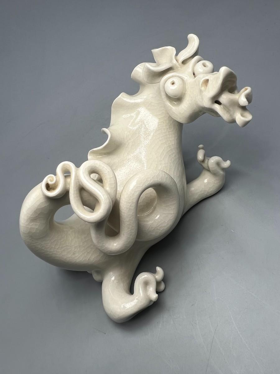 Vintage SIgned Ceramic Art Figural Abstract Surreal Dragon Figurine Sculpture