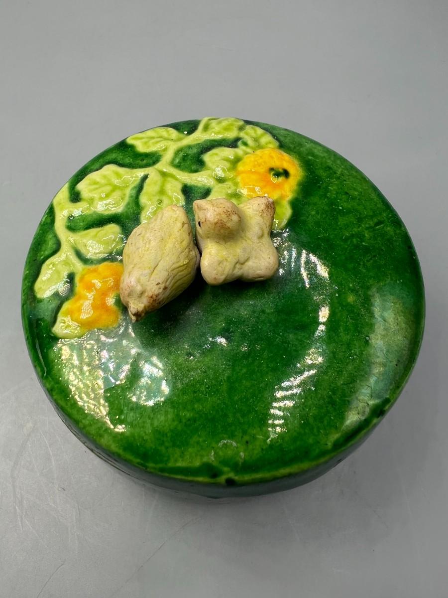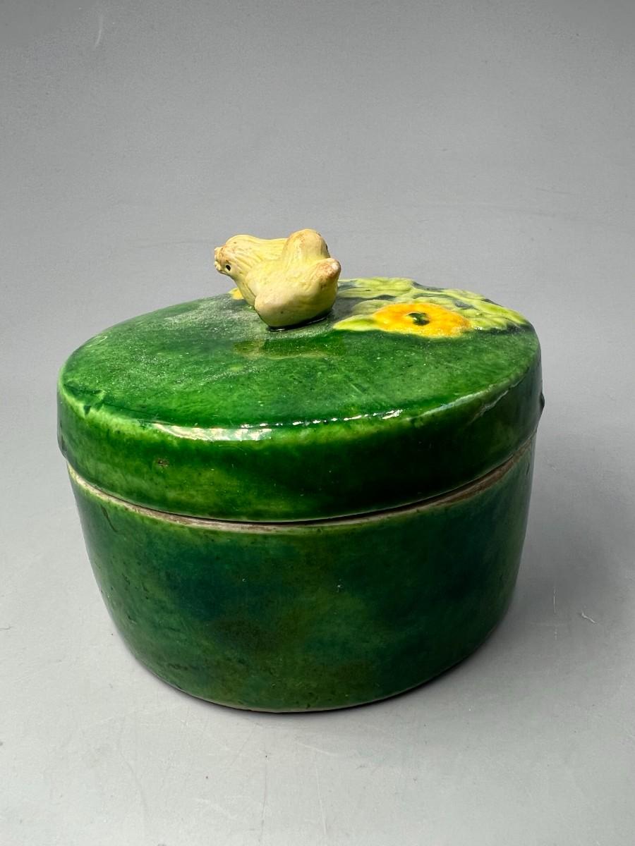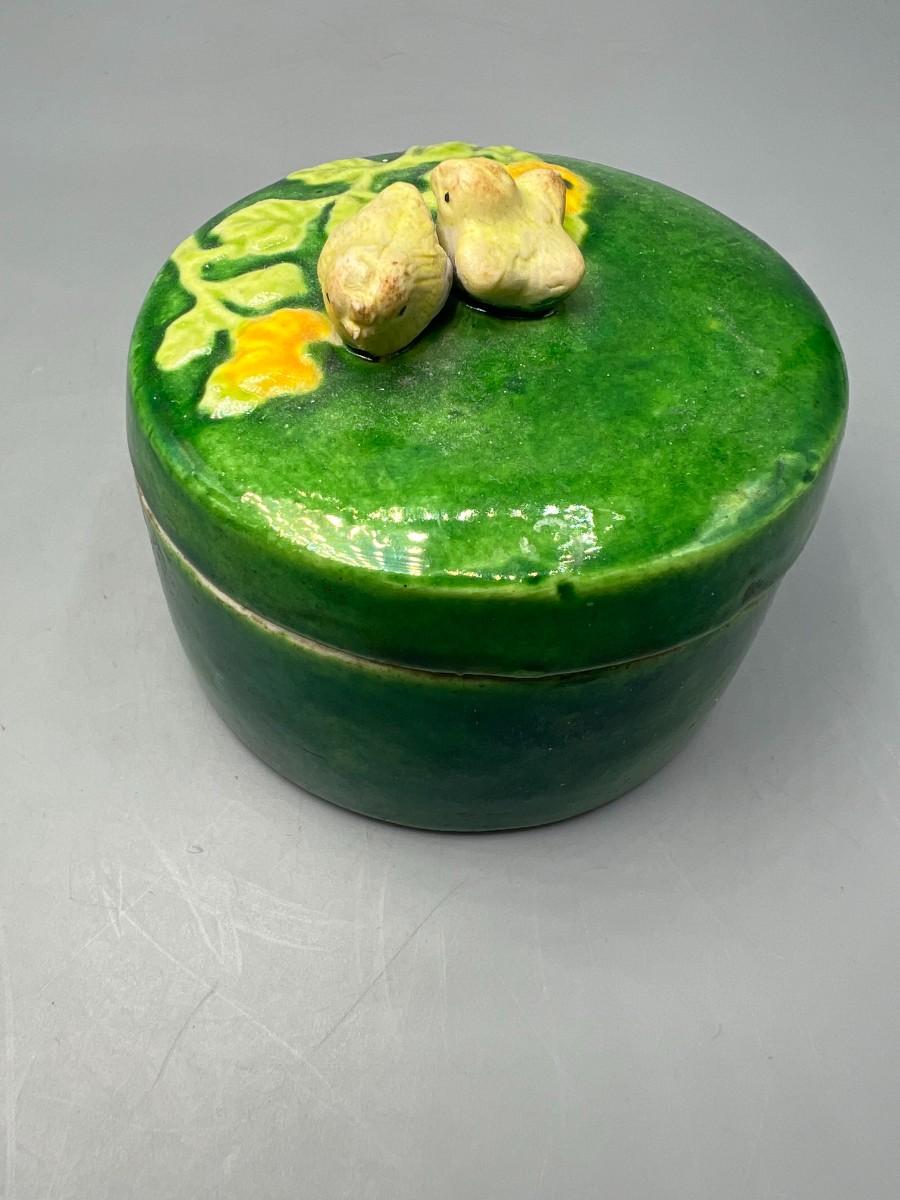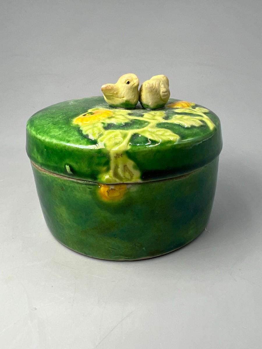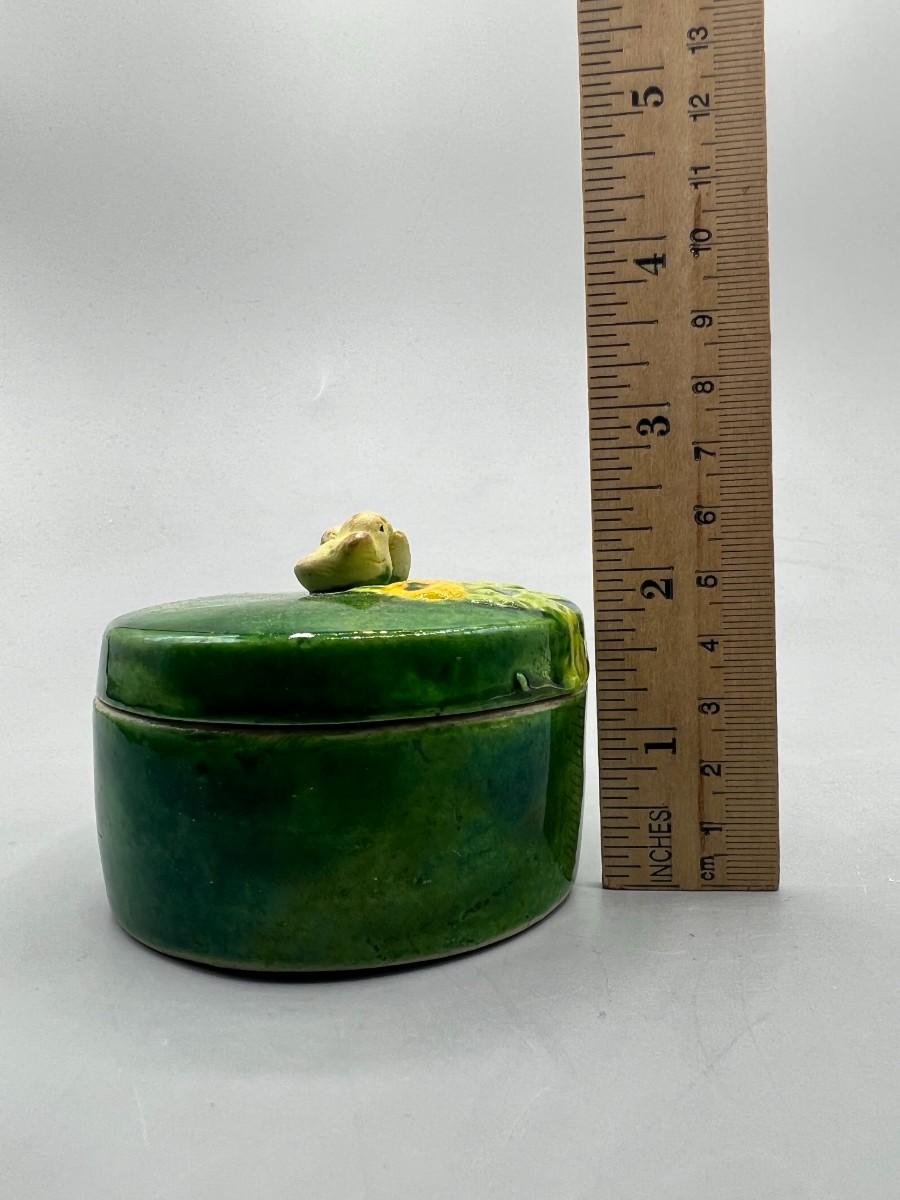 Vintage Clay Pottery Art Stamped Made in Japan Birds & Flowers Motif Lidded Trinket Dish