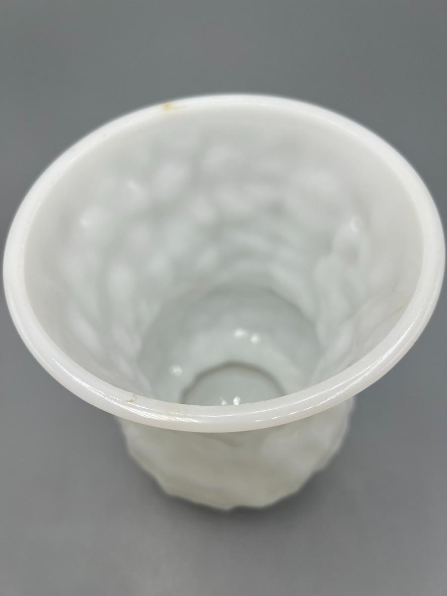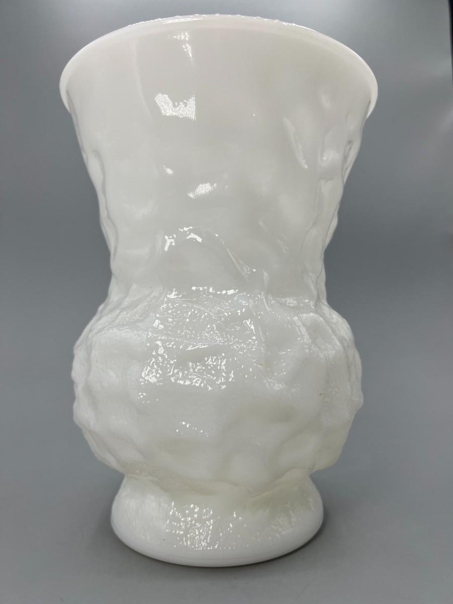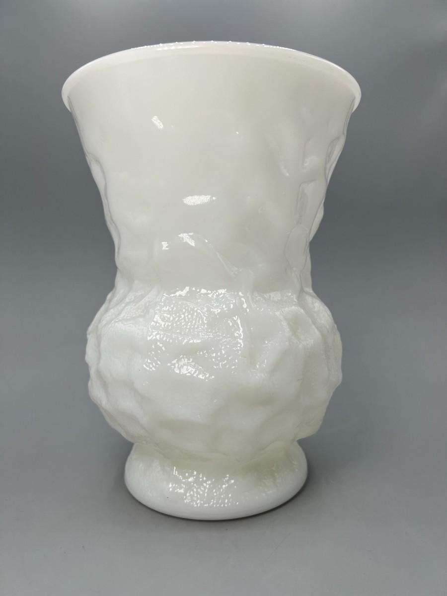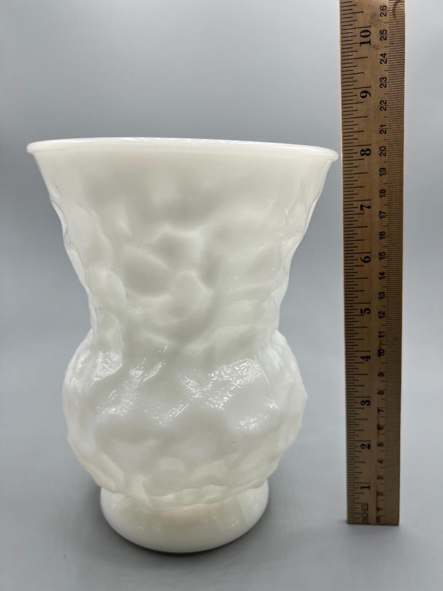 Vintage E.O. Brody Textured Wrinkle Pattern Milk Glass Art Deco Flower Vase