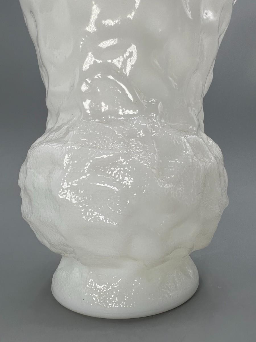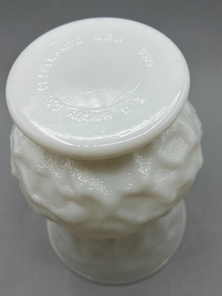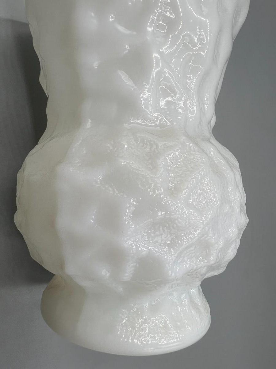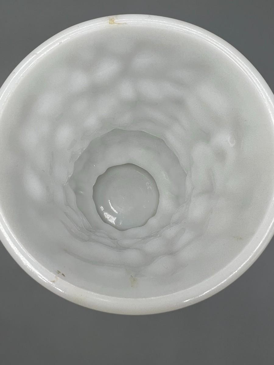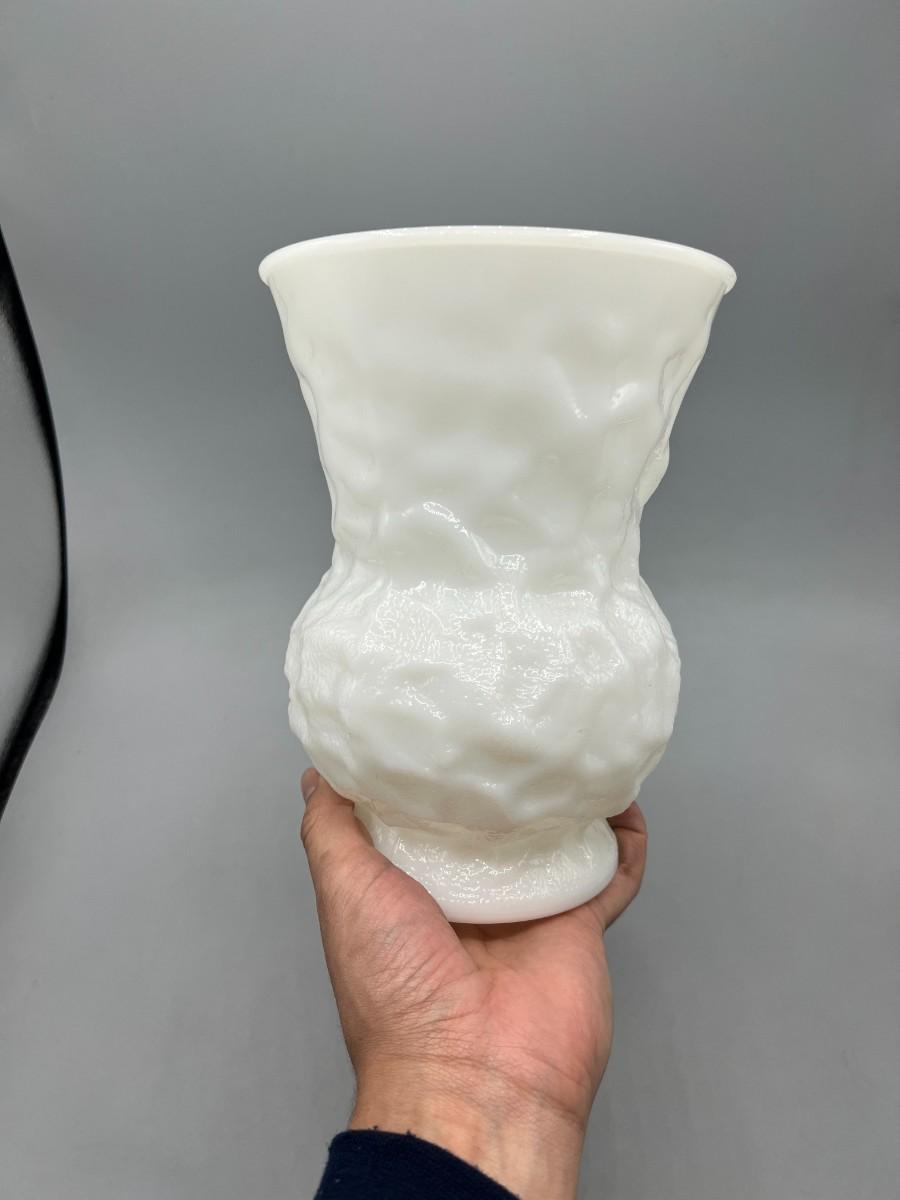 Vintage E.O. Brody Textured Wrinkle Pattern Milk Glass Art Deco Flower Vase