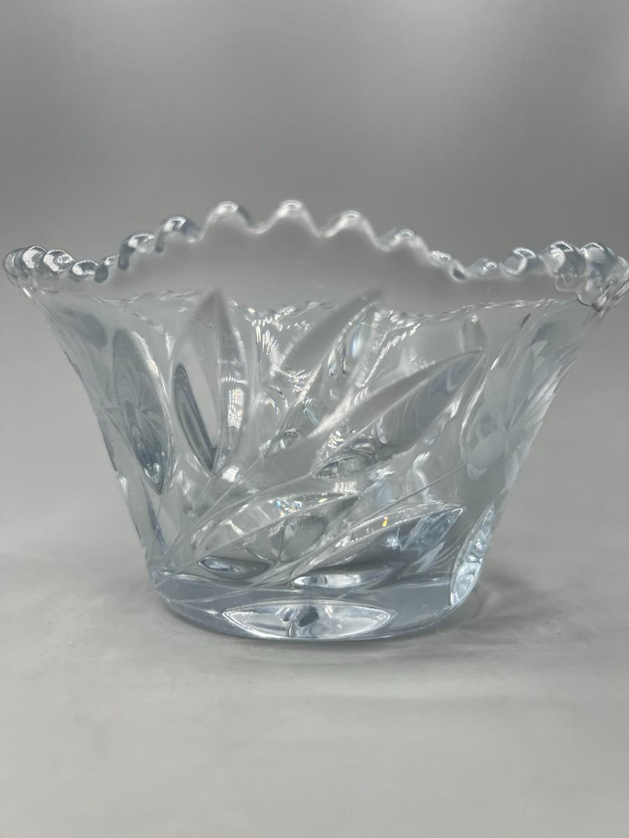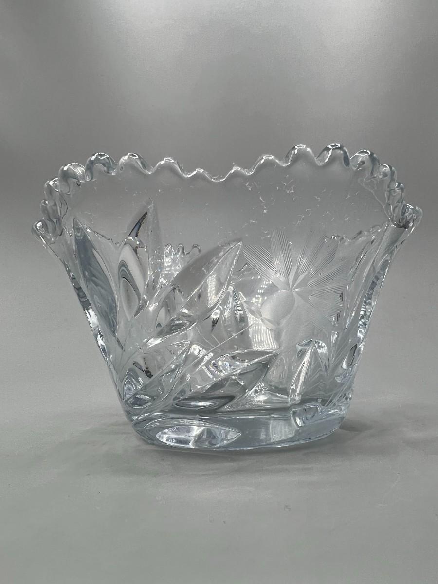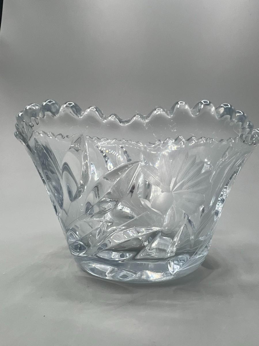 Vintage Crystal Cut Glass Sawtooth Edge Flower Design Candy Trinket Bowl Dish