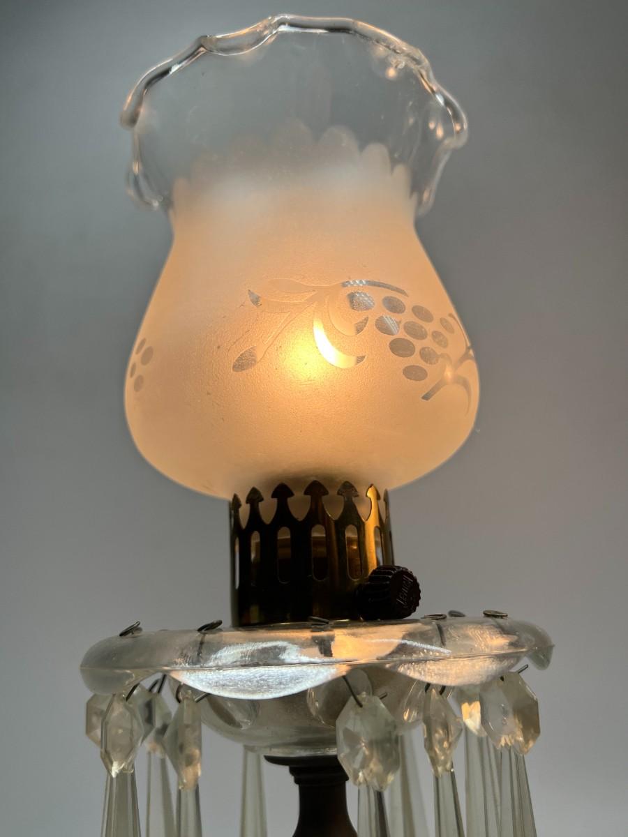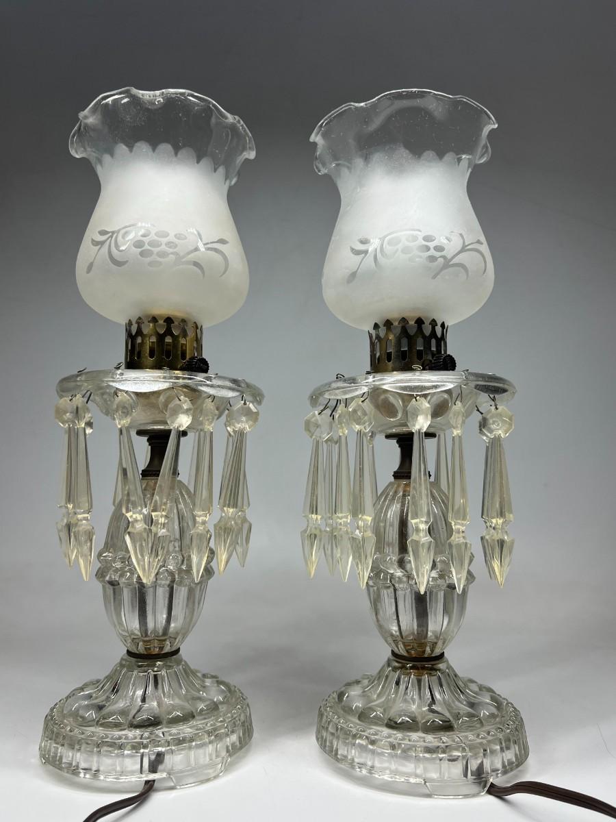 Pair of Vintage Mid Century White Frosted Glass Crystal Glass Chandelier Electric Table Lamp