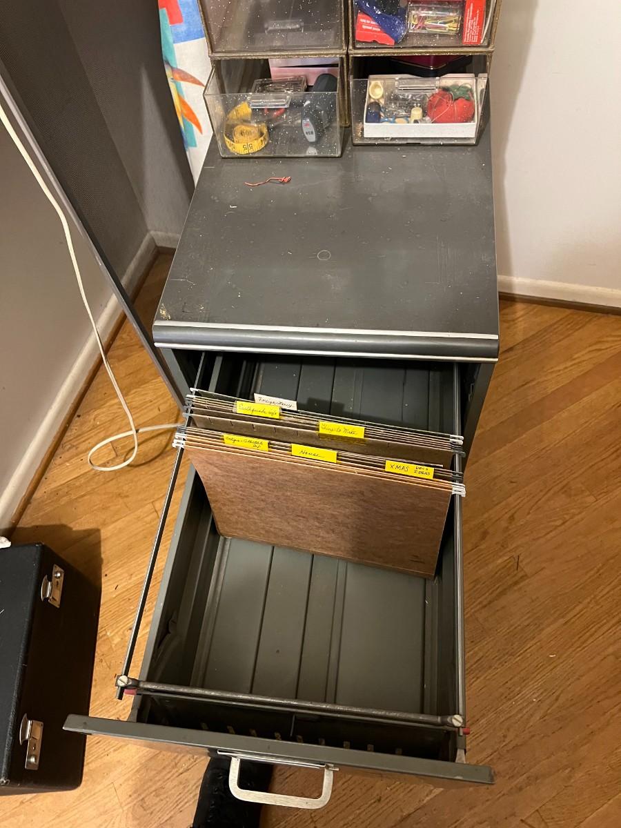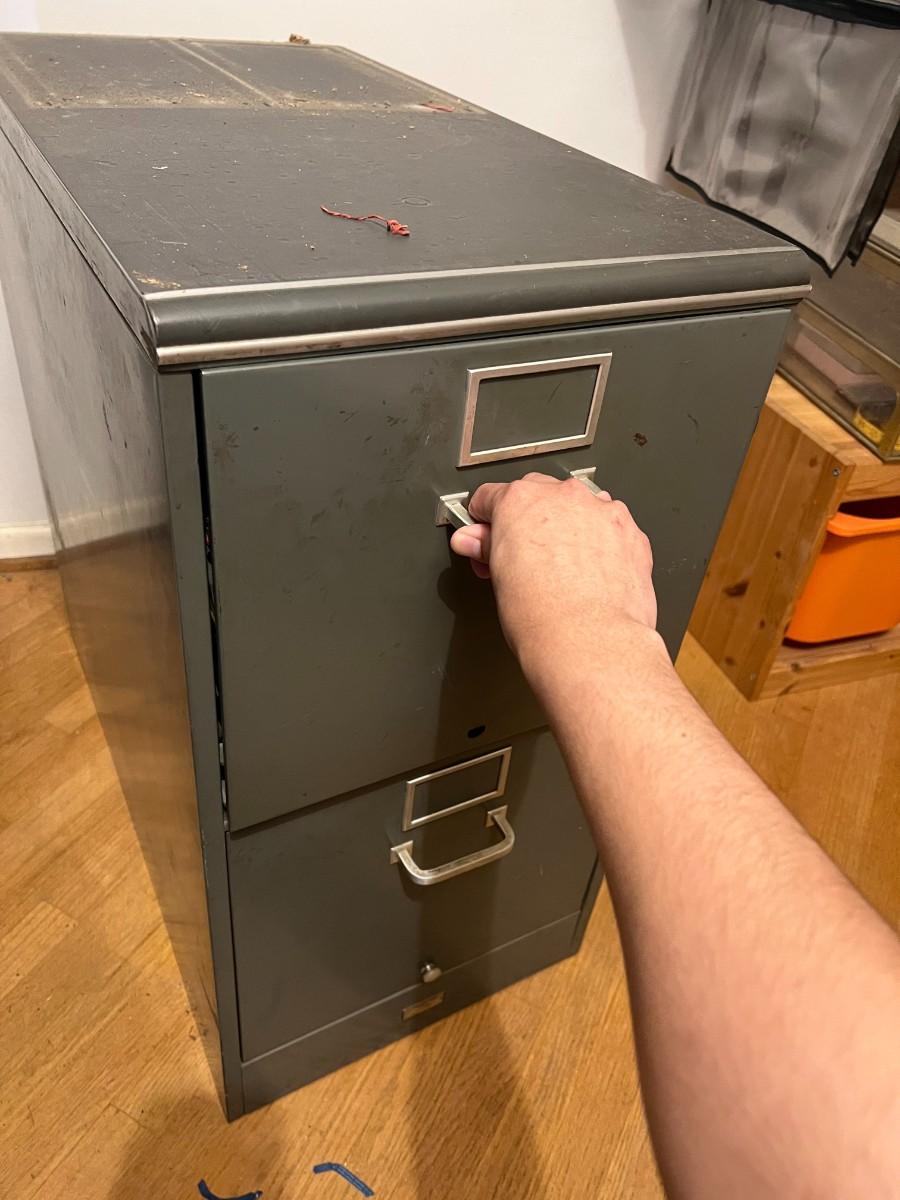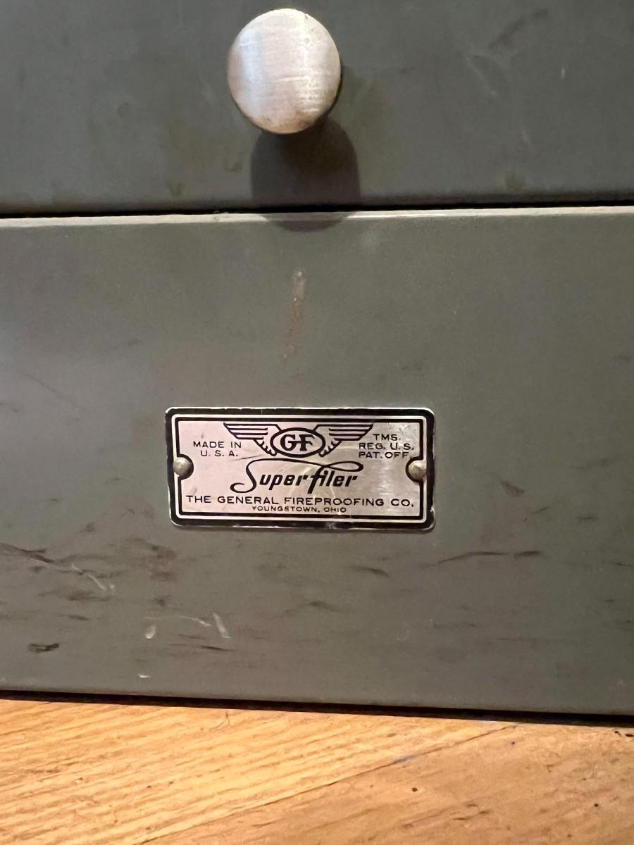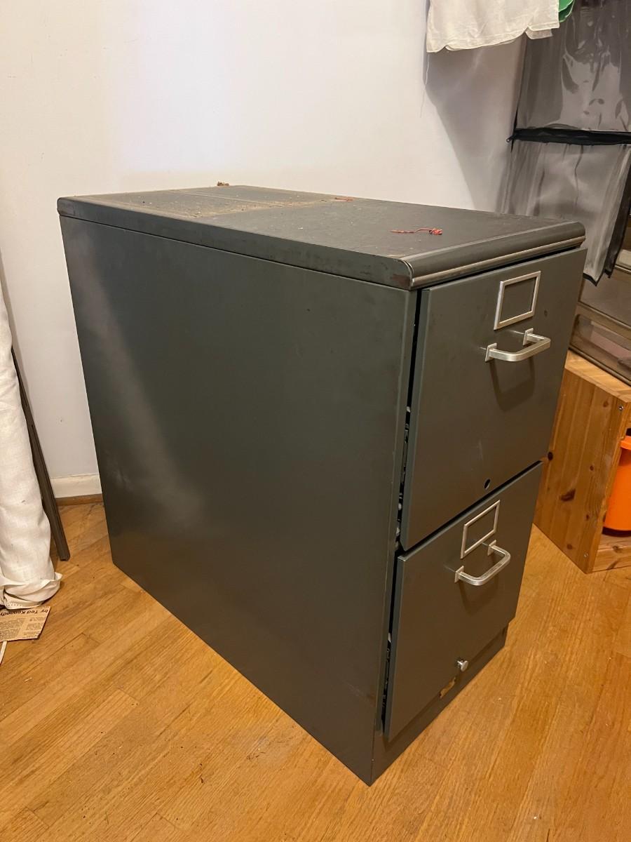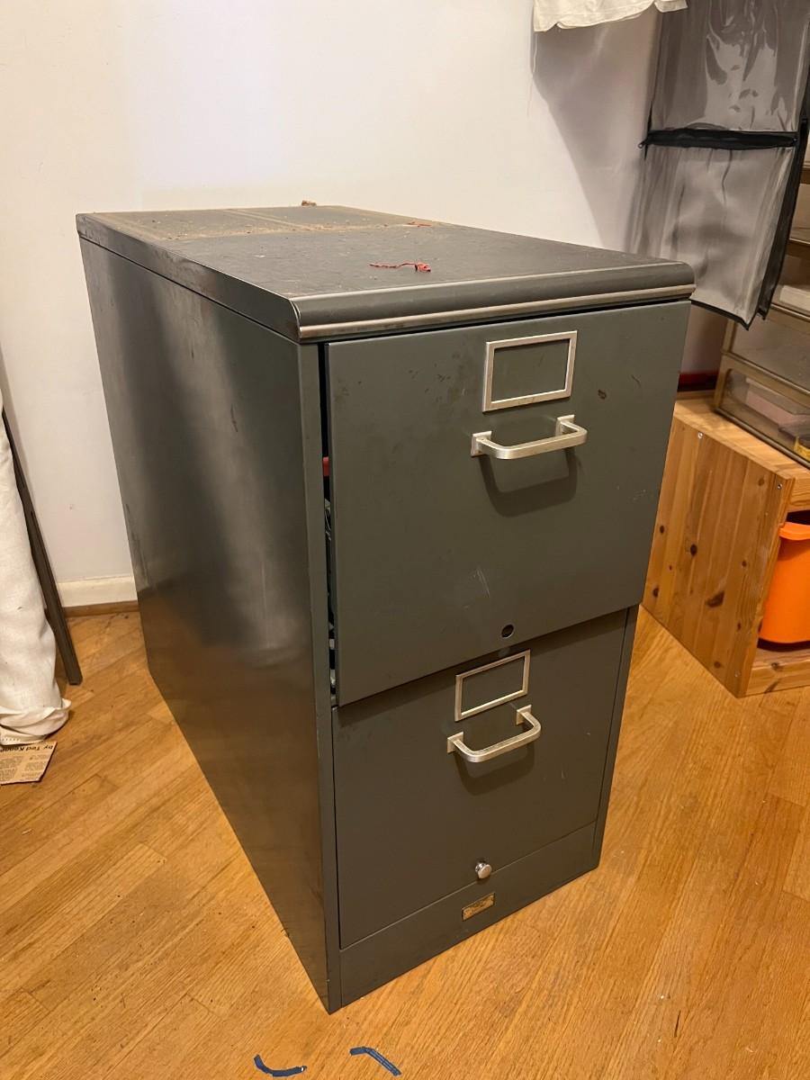 Vintage Two Drawer Metal Filing Cabinet with Tilt Forward Drawer Fronts