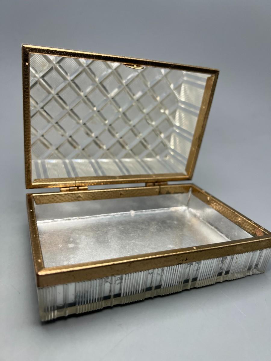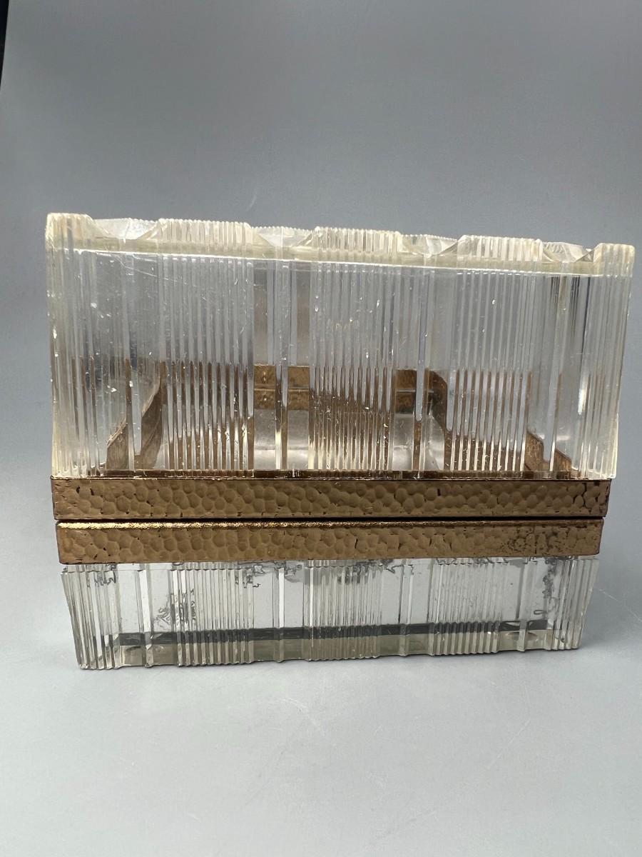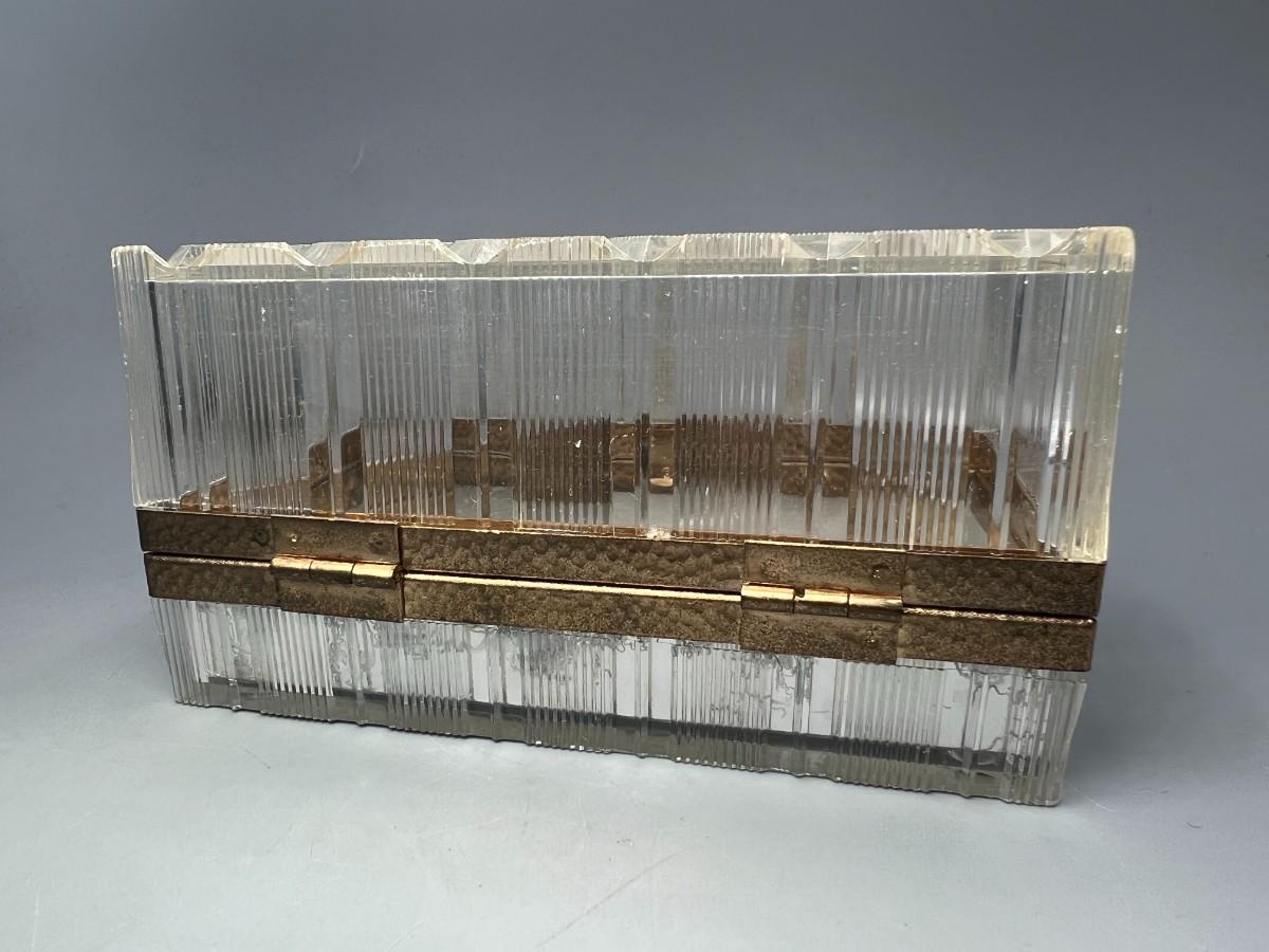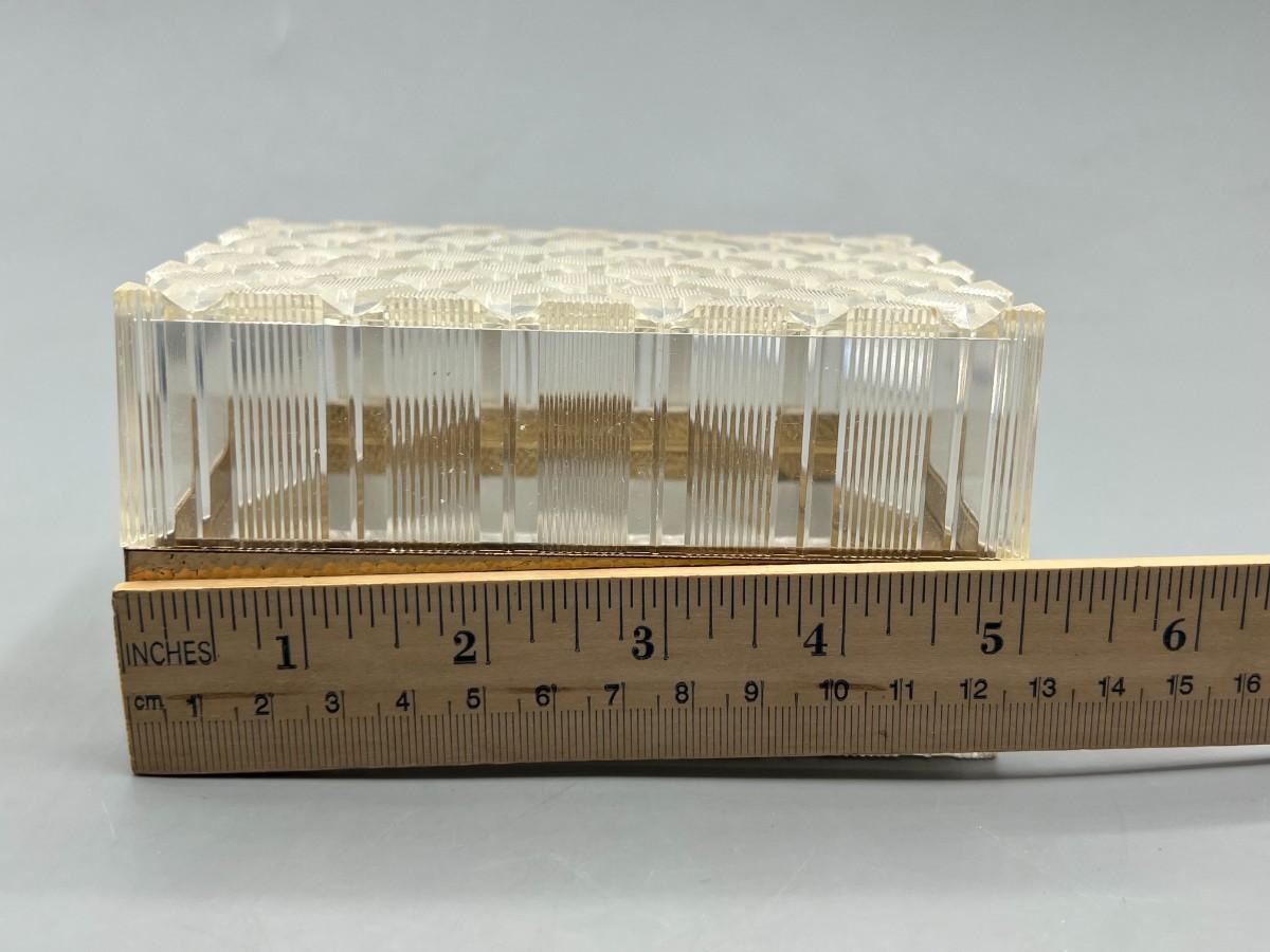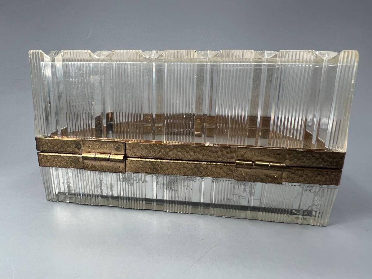 Vintage Mid-Century Plastic Clear Gold Trim Jewelry Trinket Box