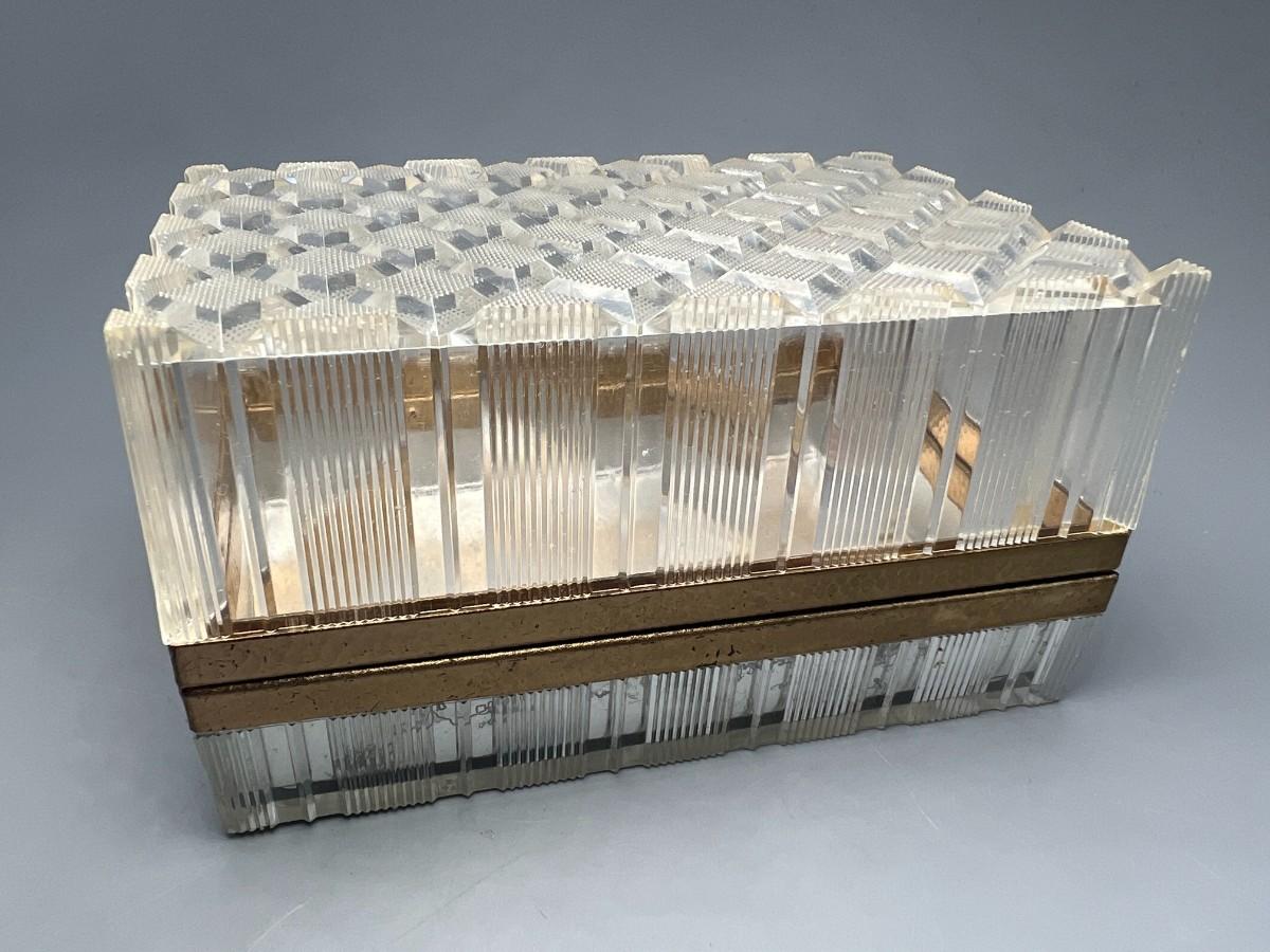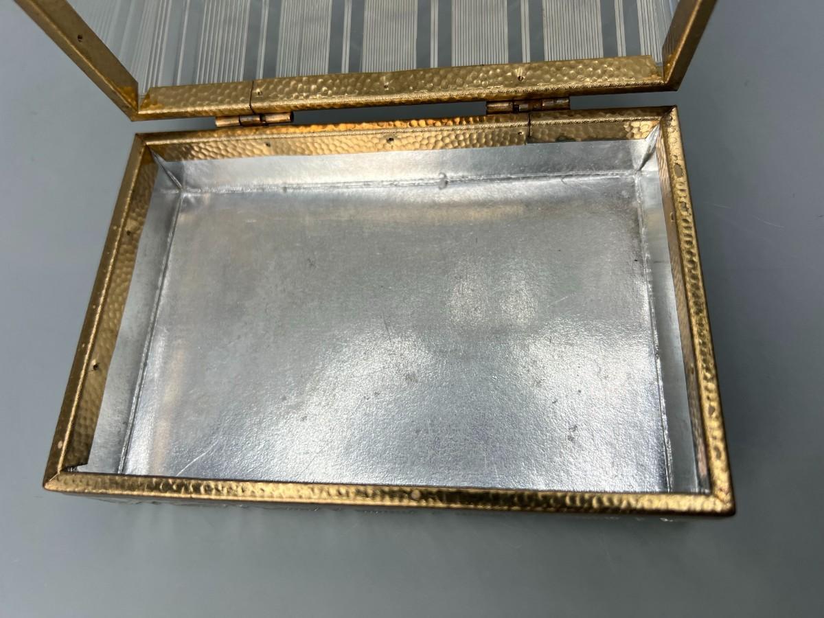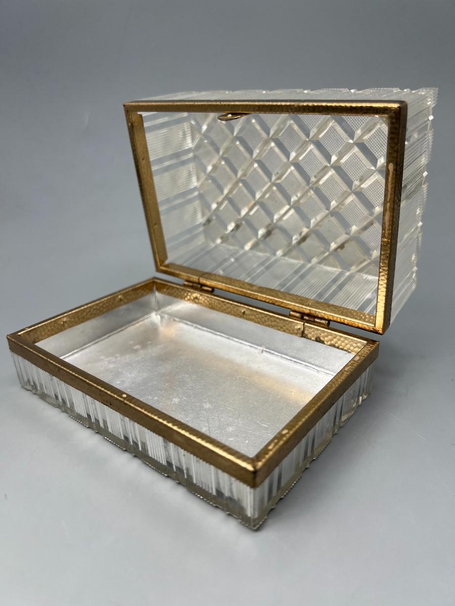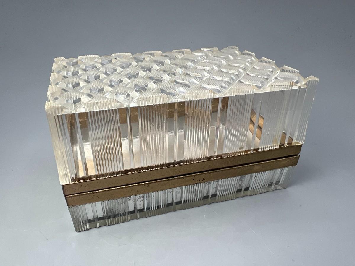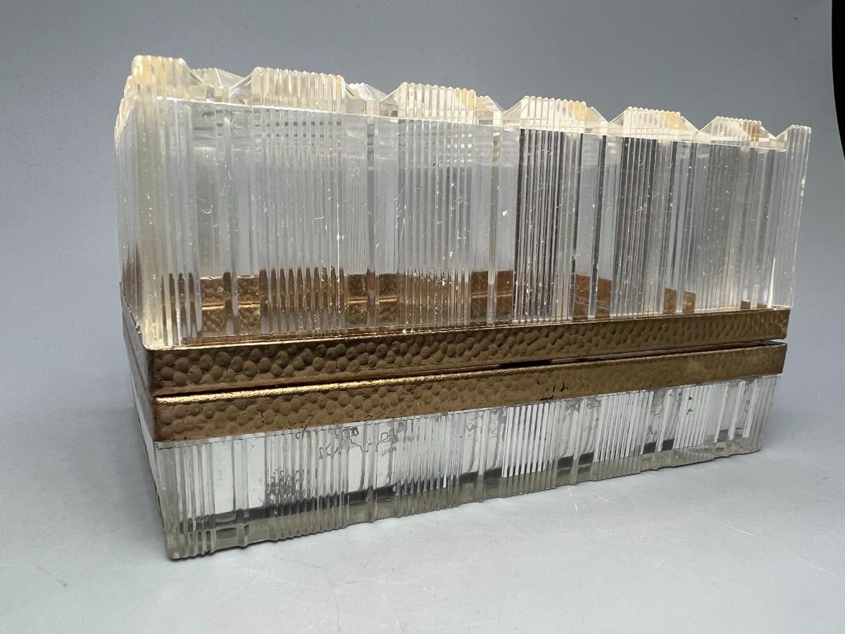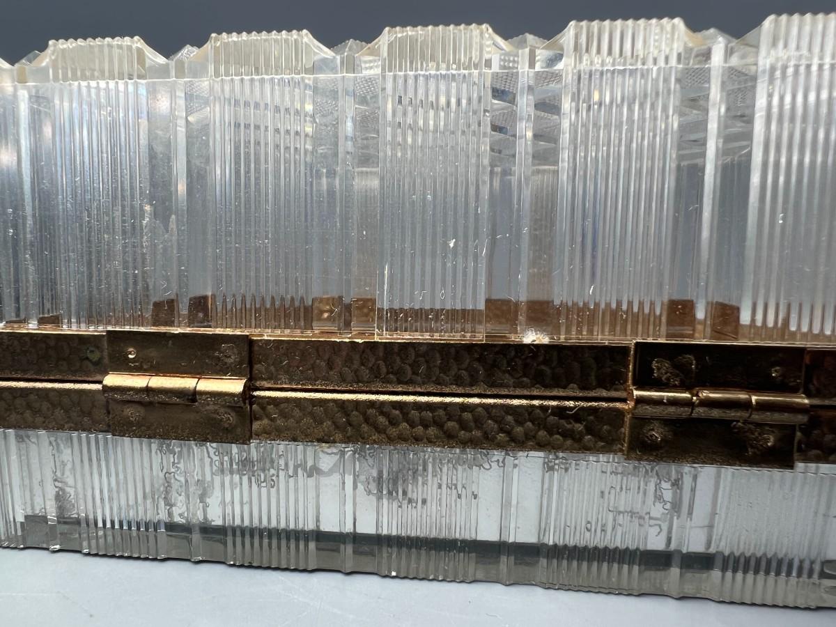 Vintage Mid-Century Plastic Clear Gold Trim Jewelry Trinket Box