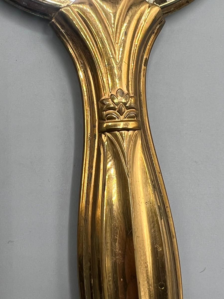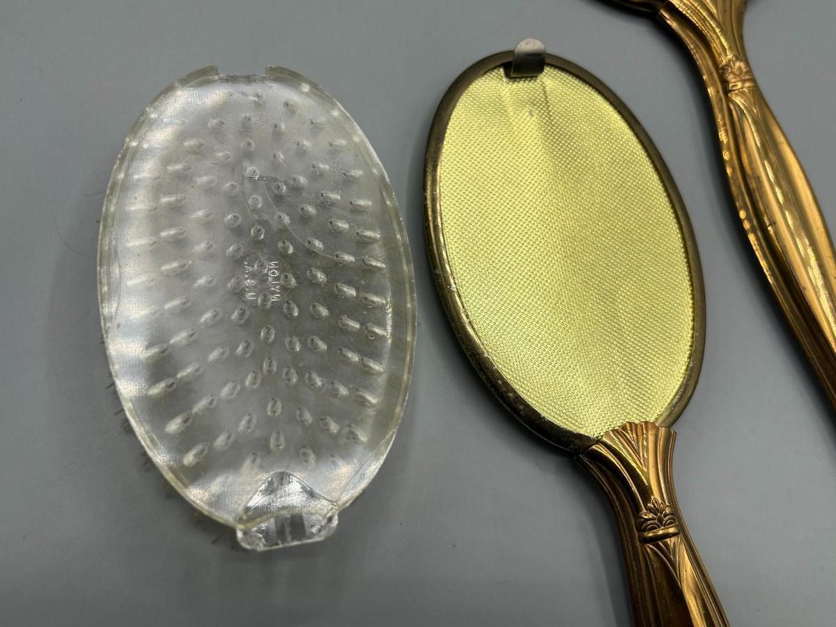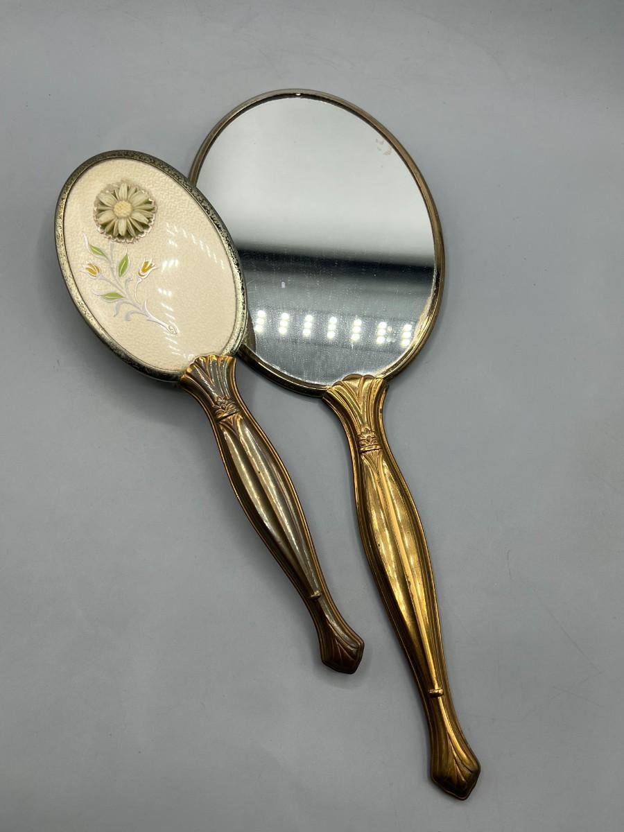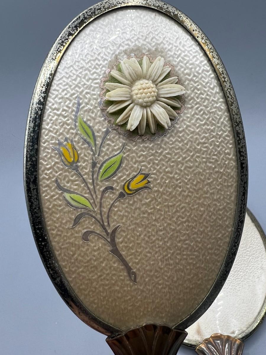Vintage Set of Victorian Style Flower Motif Vanity Makeup Mirror & Hair Brush