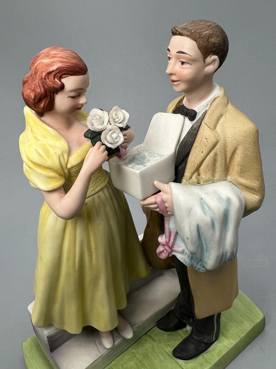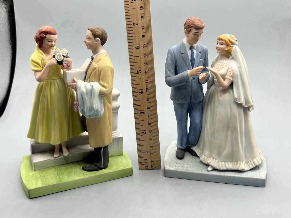 Pair of Vintage Norman Rockwell Bride and Groom & The First Prom Authenticated by Rockwell Museum Statue Figurines