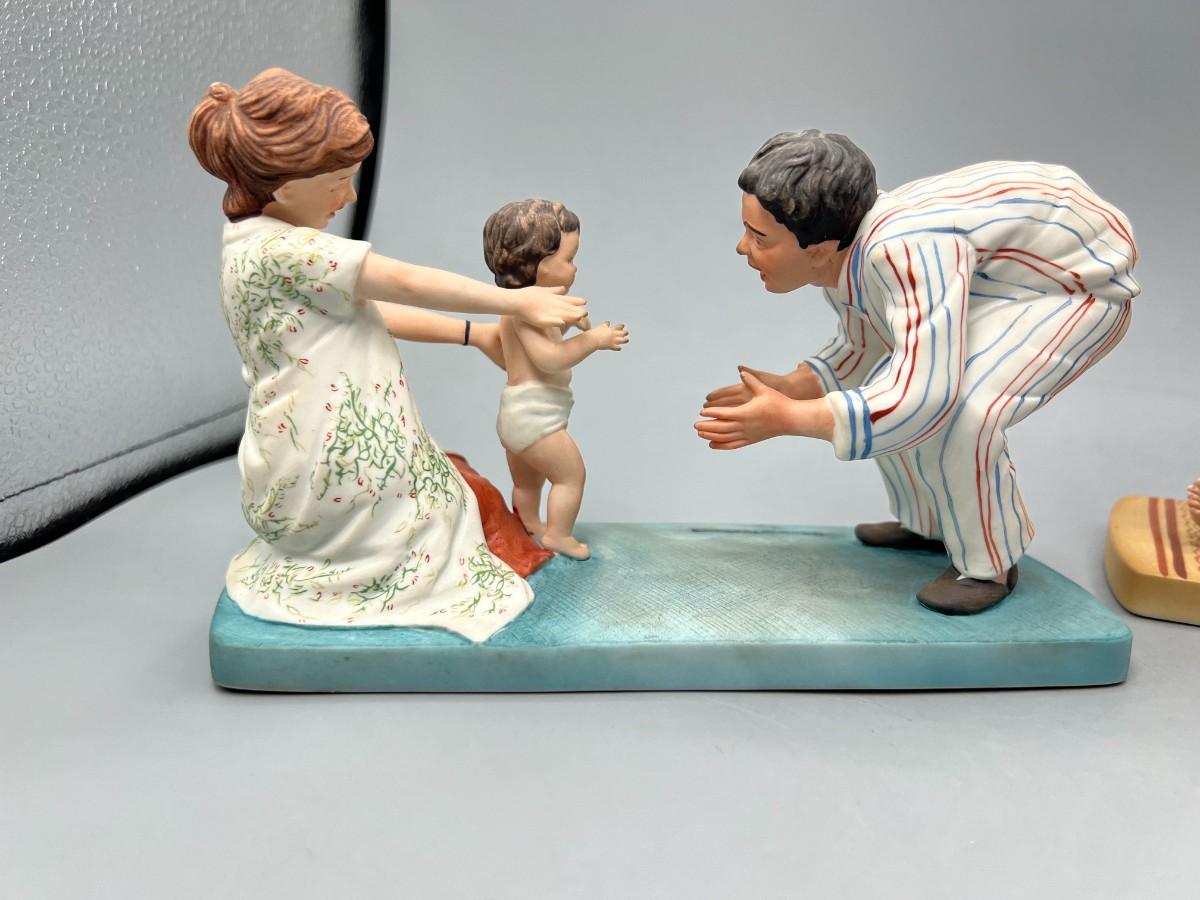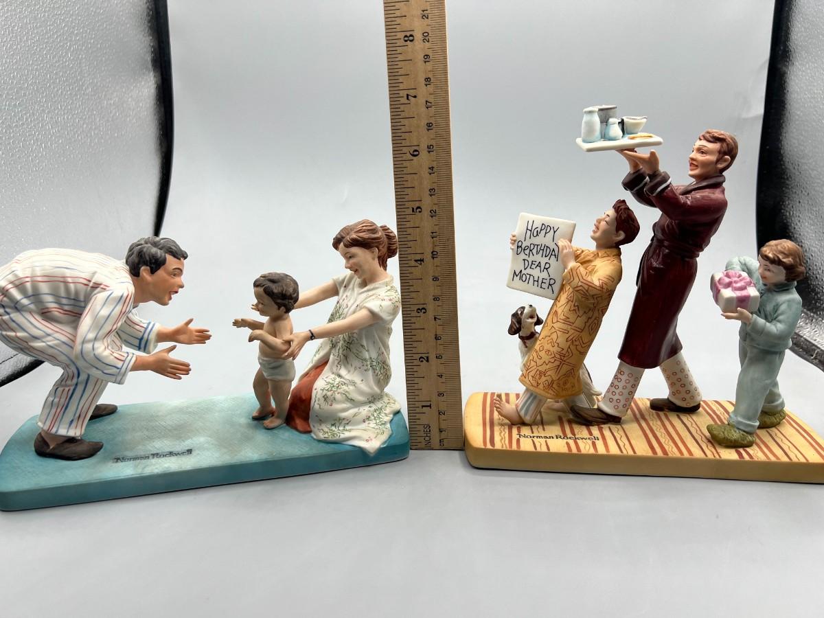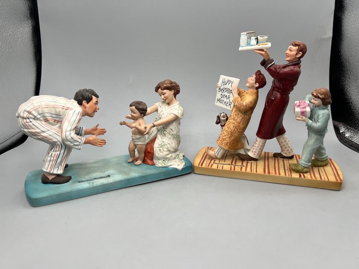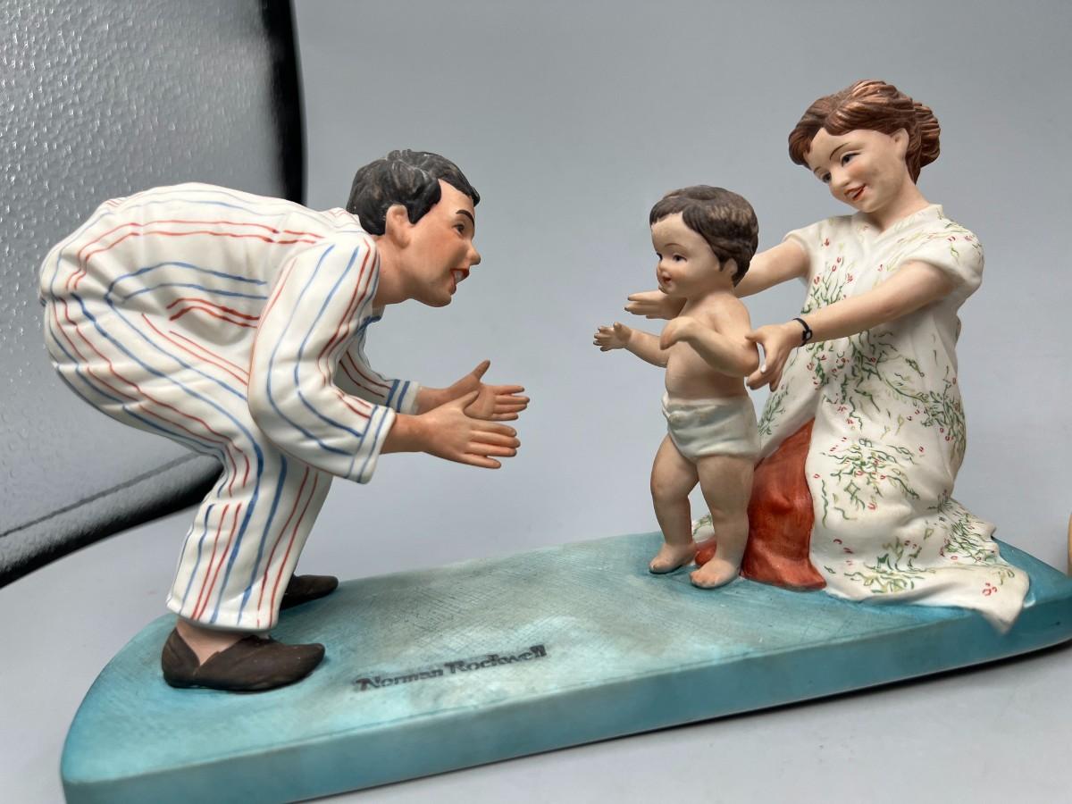 Pair of Vintage Norman Rockwell Americana Happy Birthday, Dear Mother & Baby's First Step Authenticated by Rockwell Museum Figurines