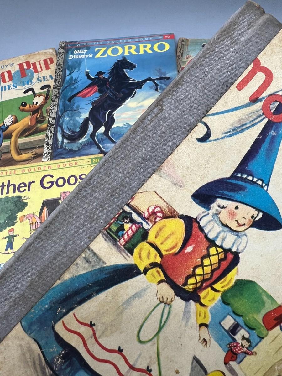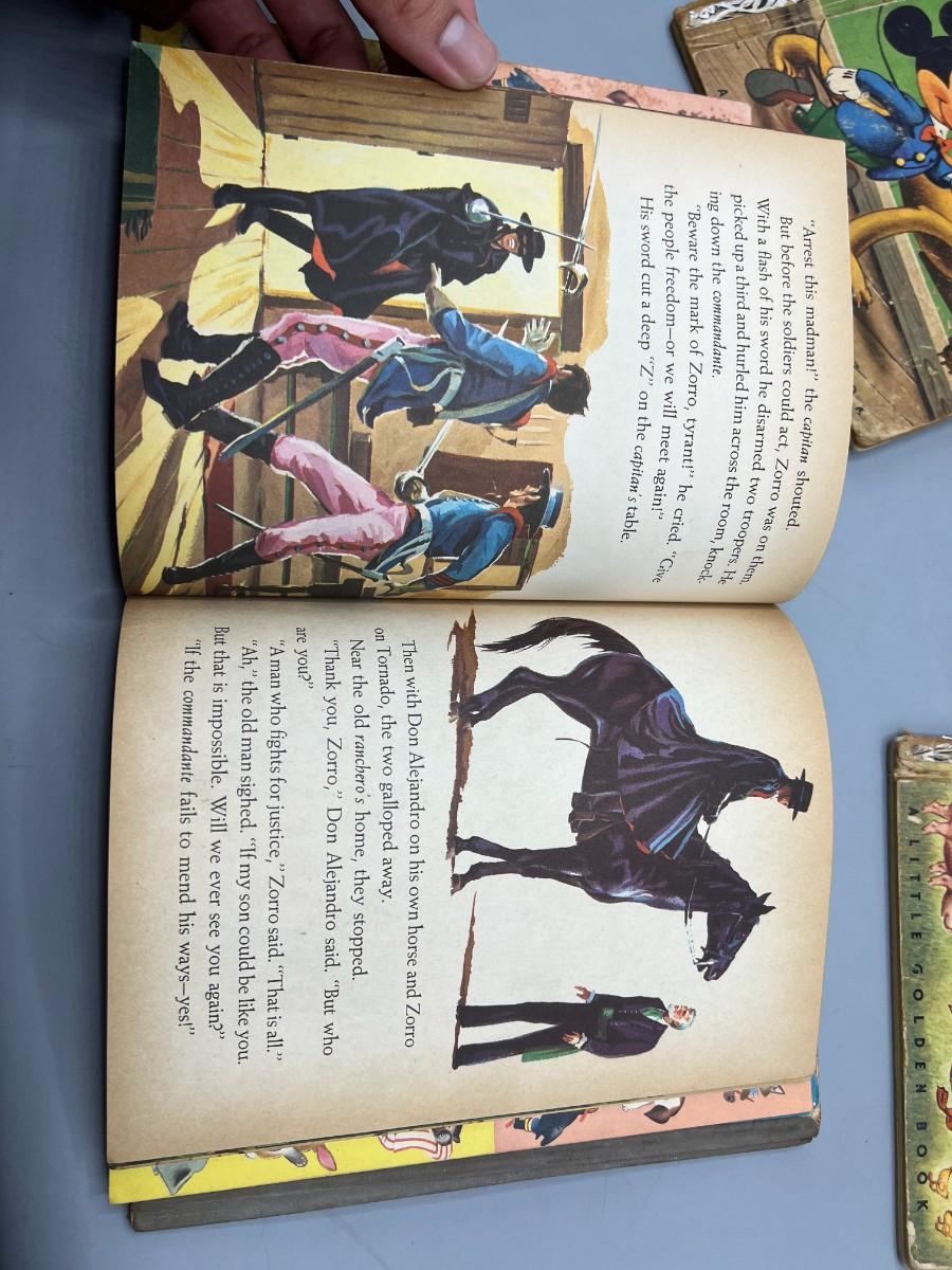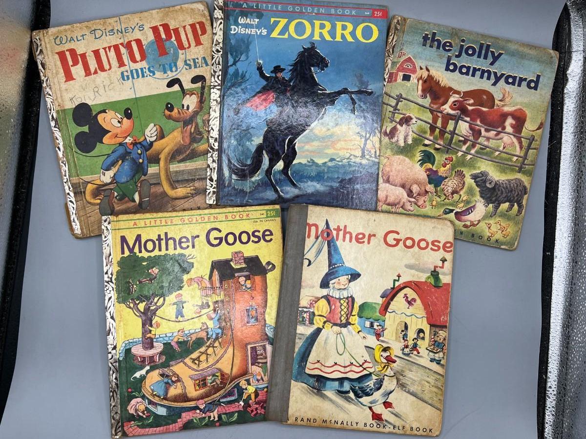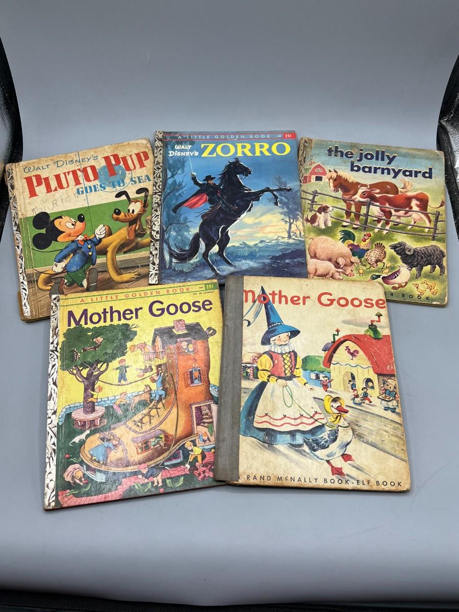 Lot of 5 Little Golden Book Vintage Children's Storybooks Walt Disney Zorro Mother Goose. In vintage read condition.