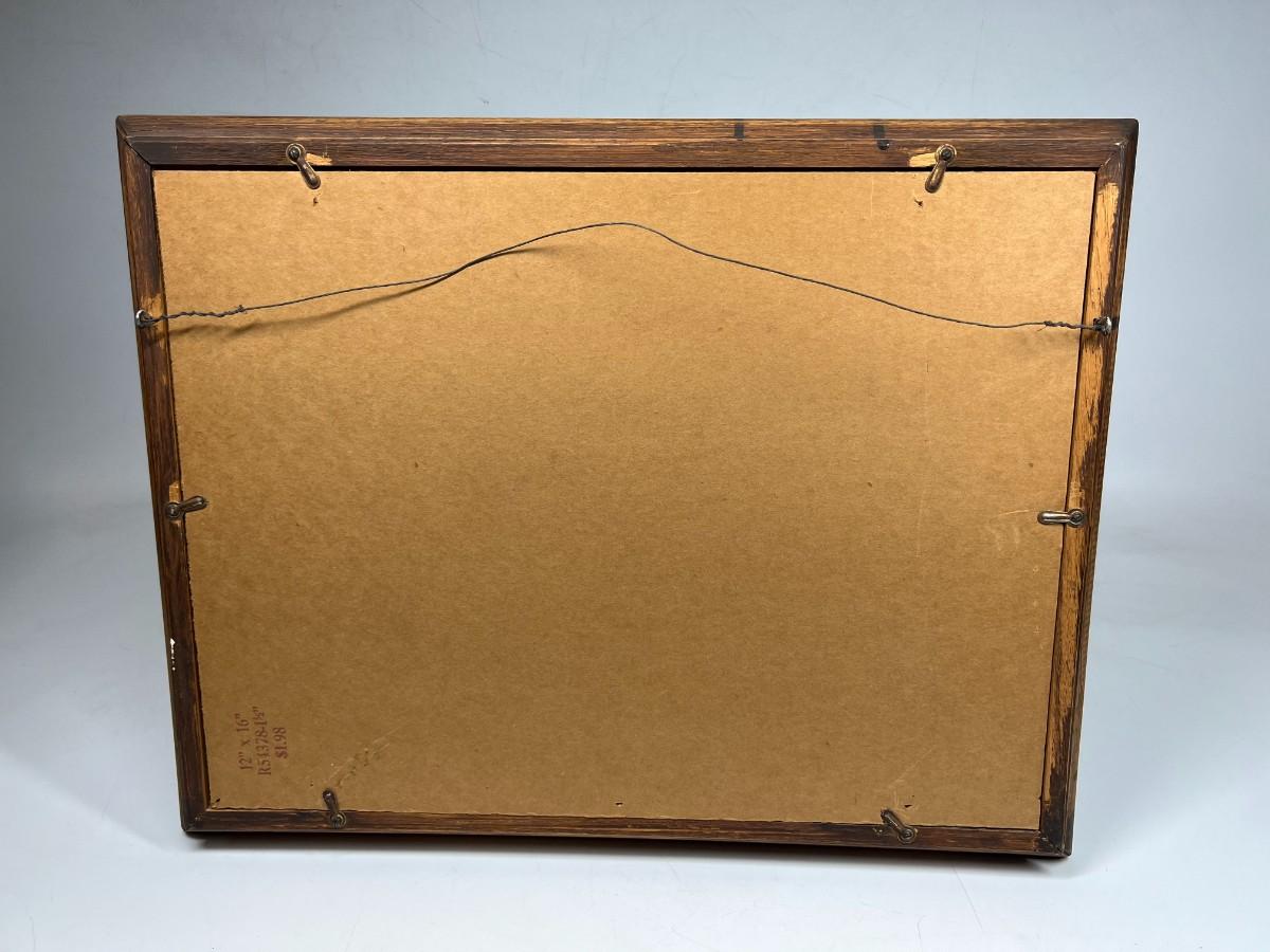 There is no significant damage to the canvas or the frame and is in overall good displayable condition. Check pictures for more details and for sizing.