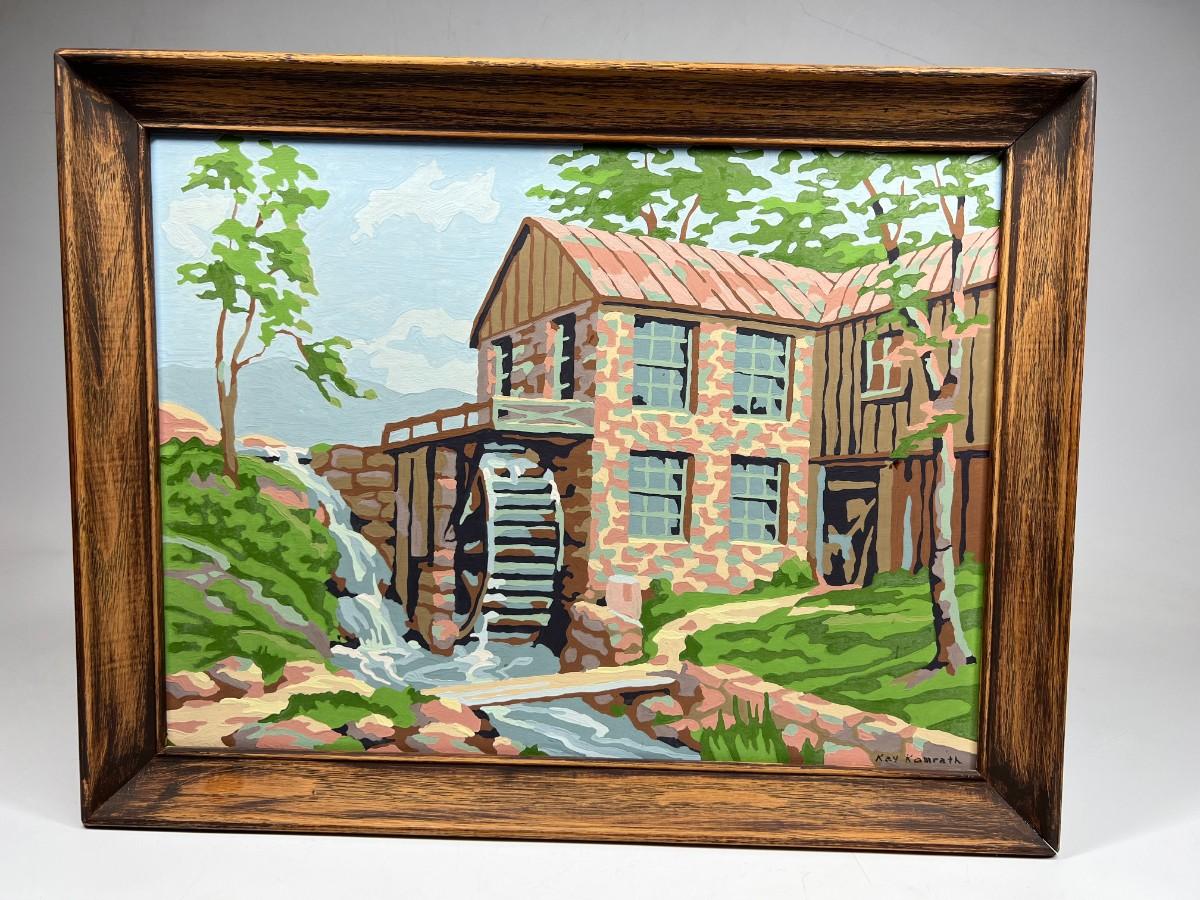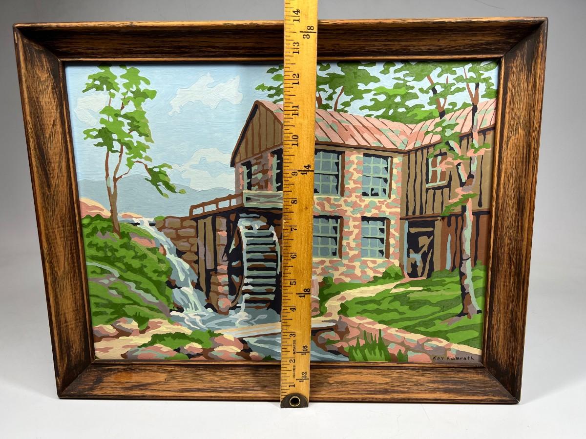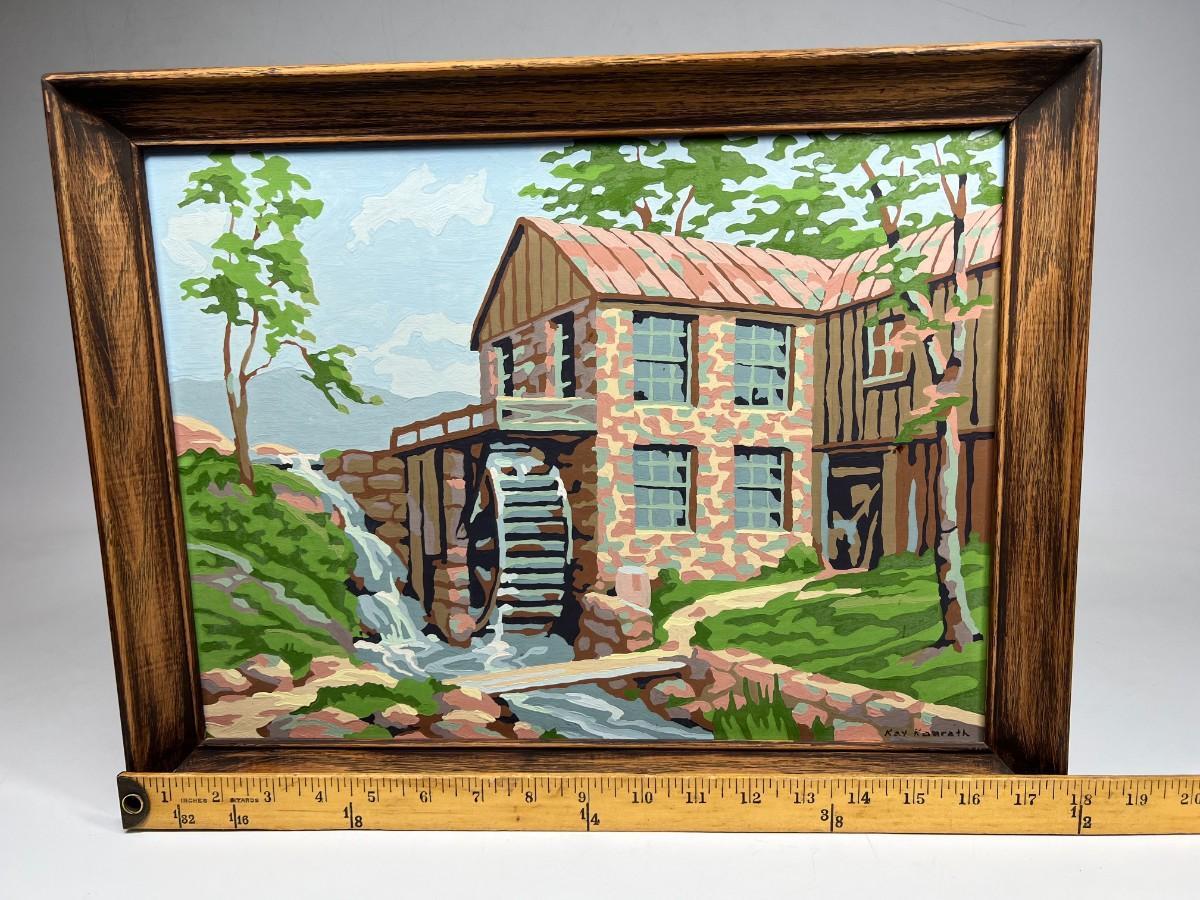 Vintage Paint by Number Stone Watermill Countryside Framed Art