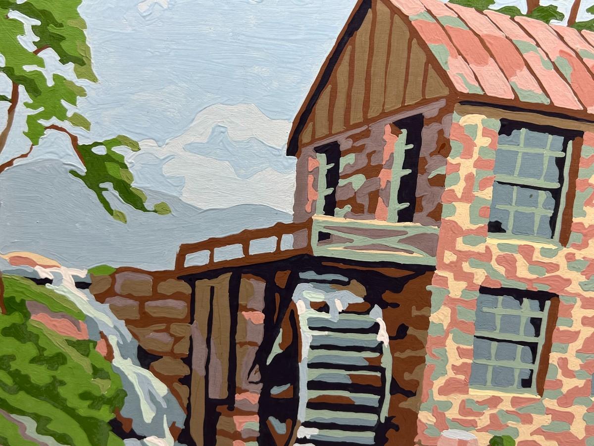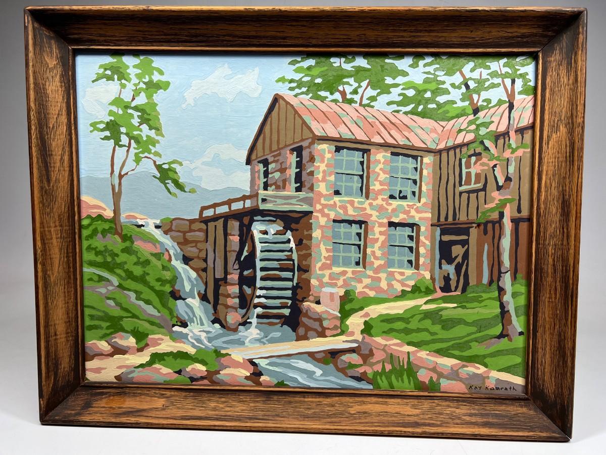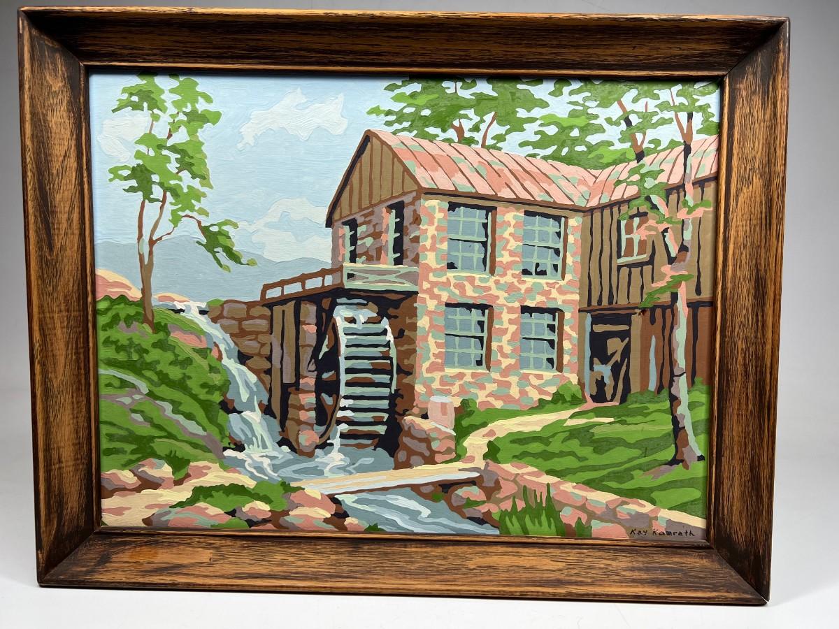 Vintage Paint by Number Stone Watermill Countryside Framed Art