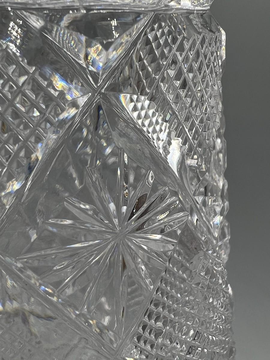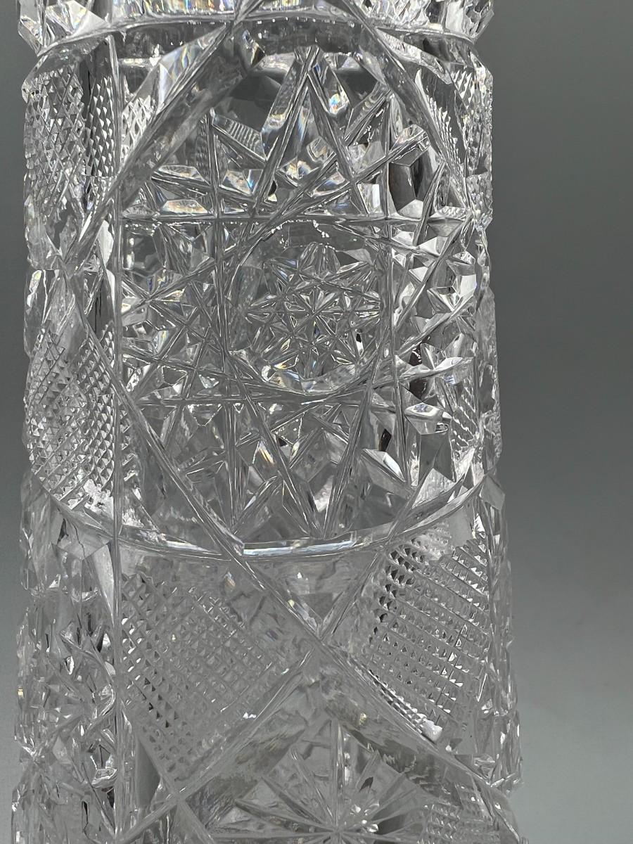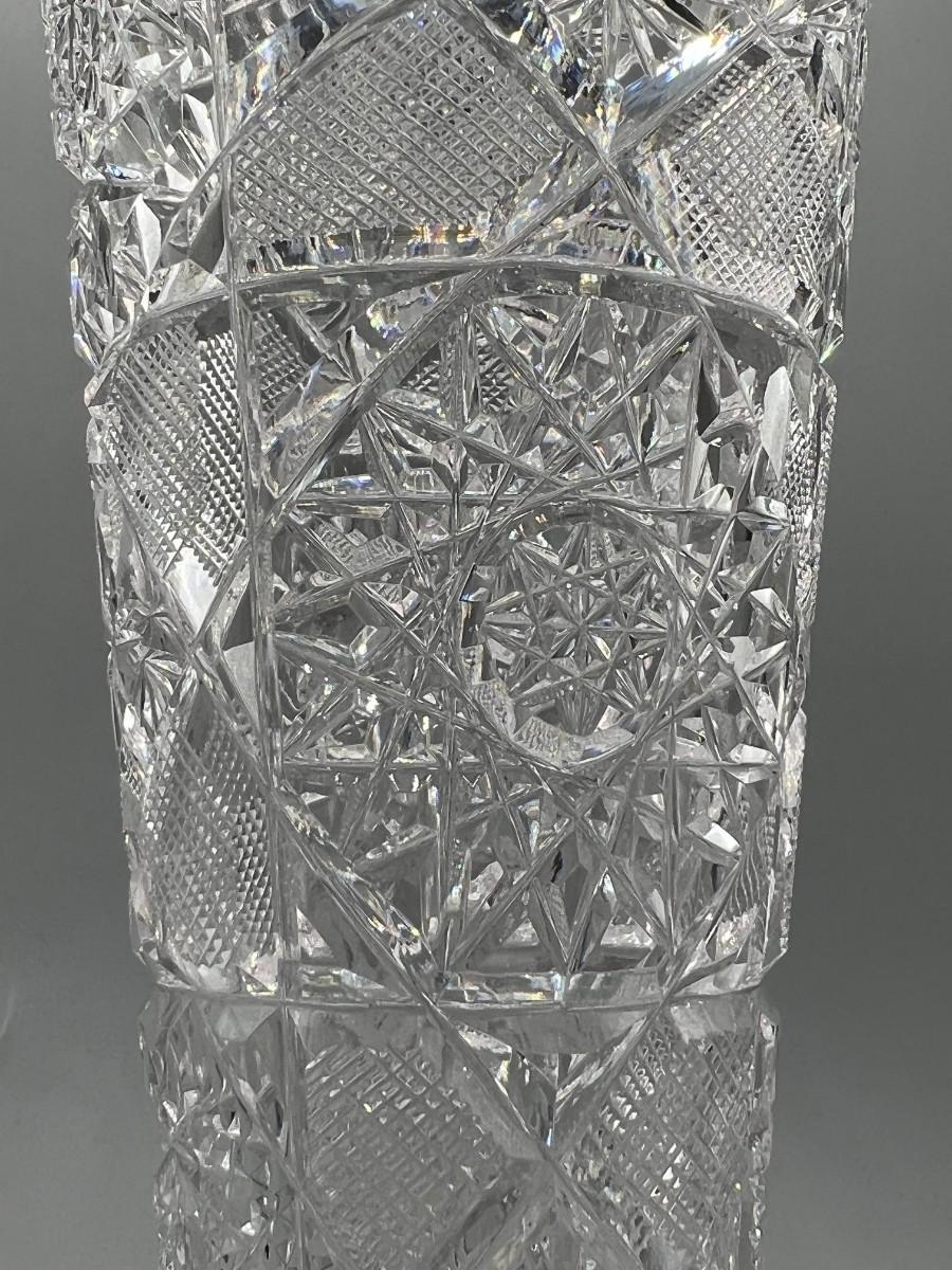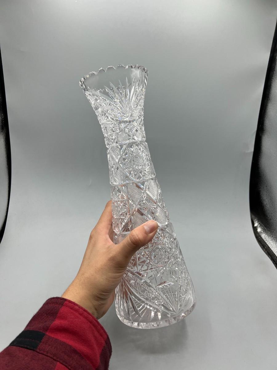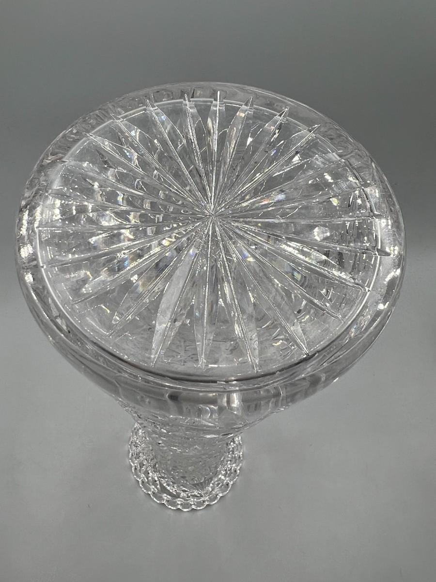 Large Vintage Cut Crystal Sawtooth Edge Flower Vase. In good condition. About 12" size.