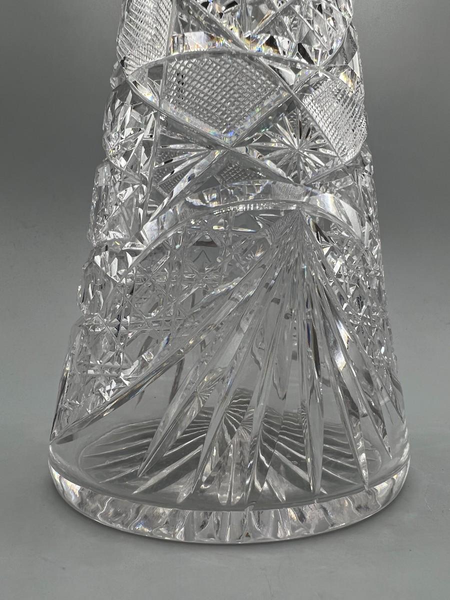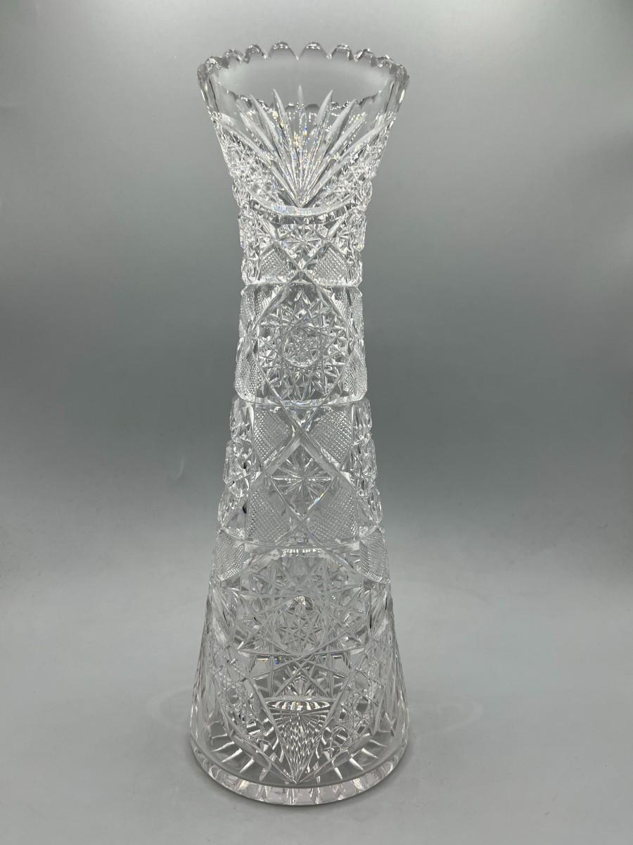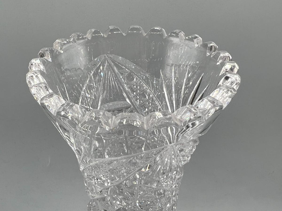 Large Vintage Cut Crystal Sawtooth Edge Flower Vase