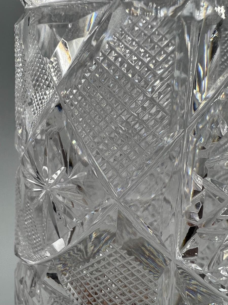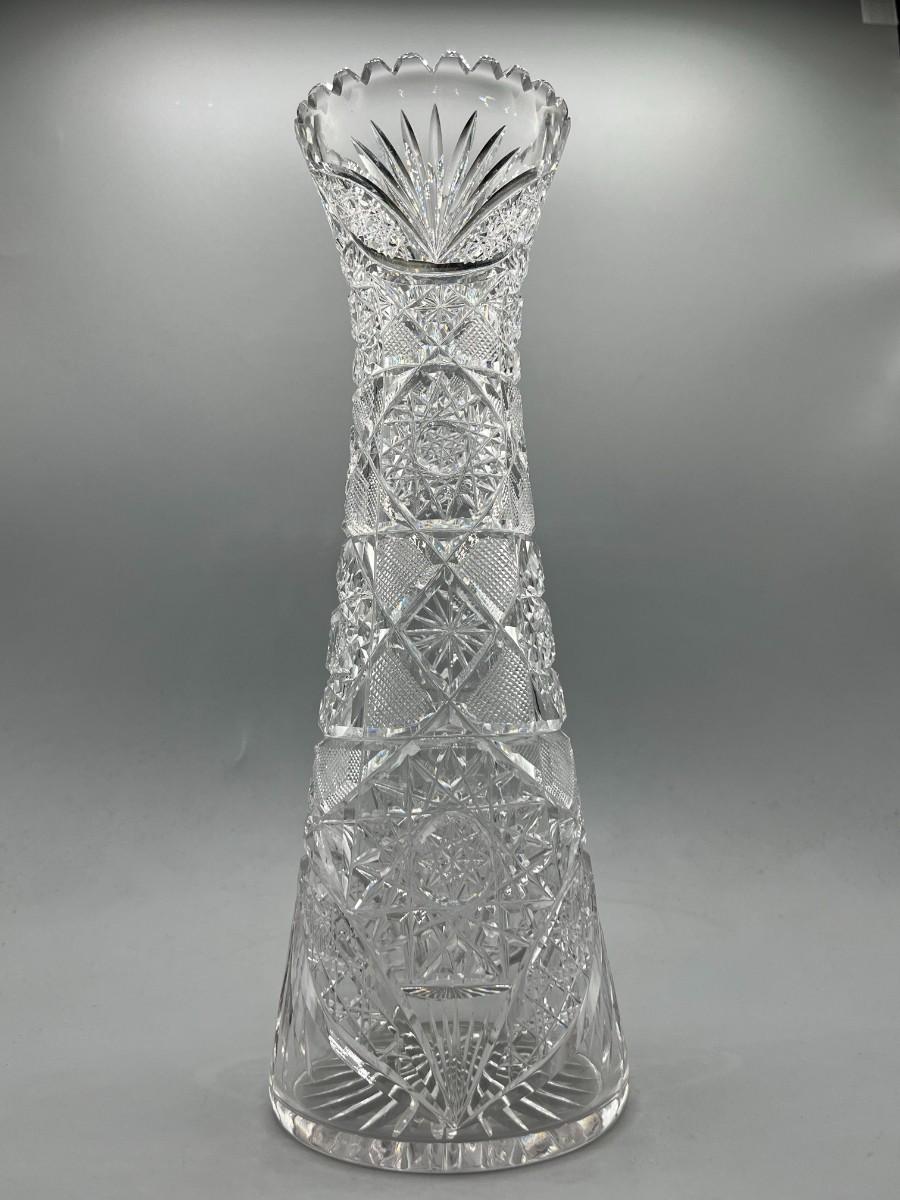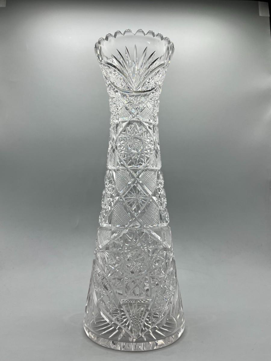 Large Vintage Cut Crystal Sawtooth Edge Flower Vase
