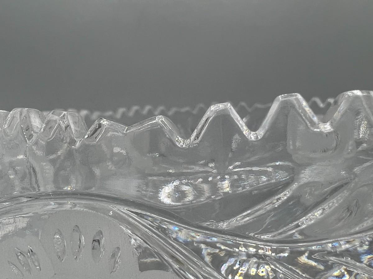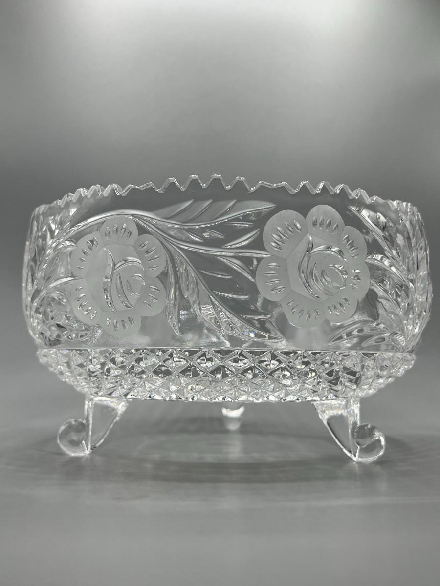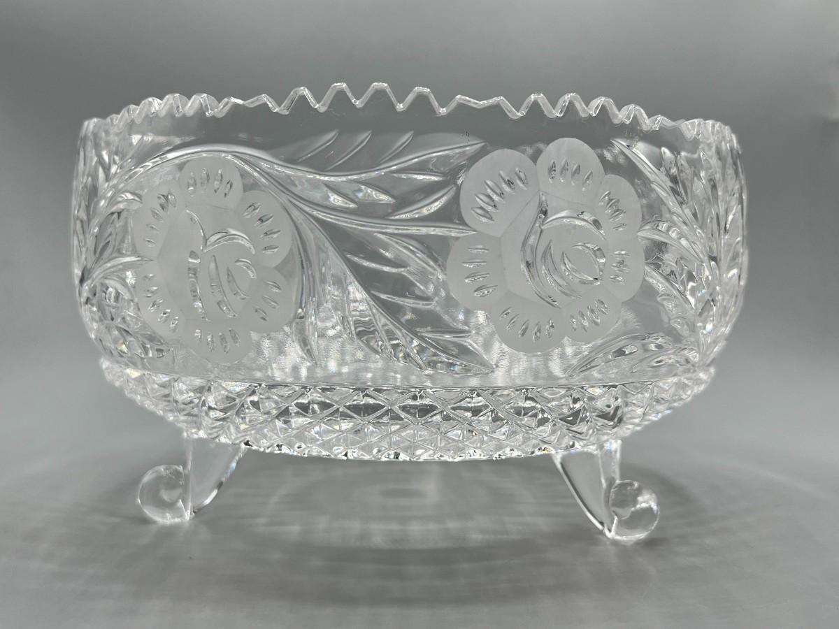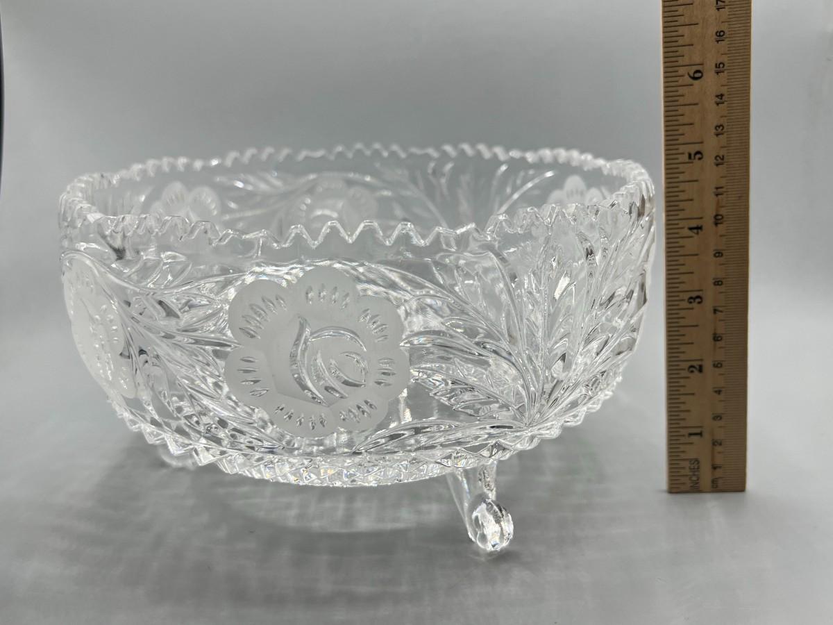 Vintage Flower Cut Pattern Footed Crystal Glass Dish Bowl