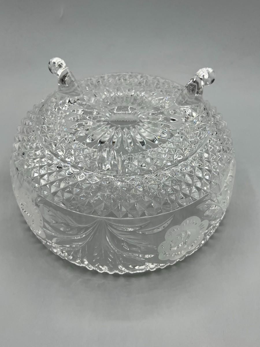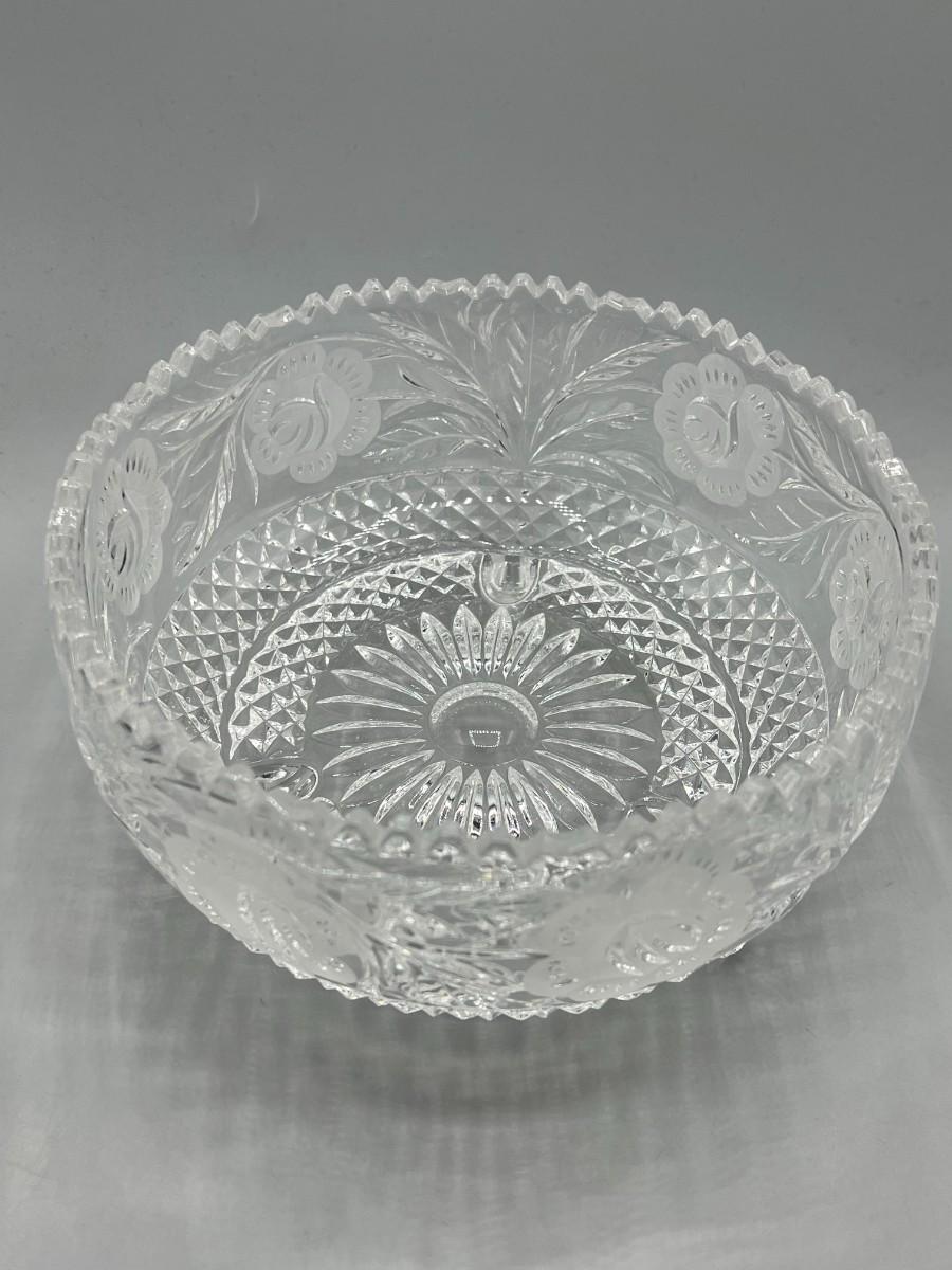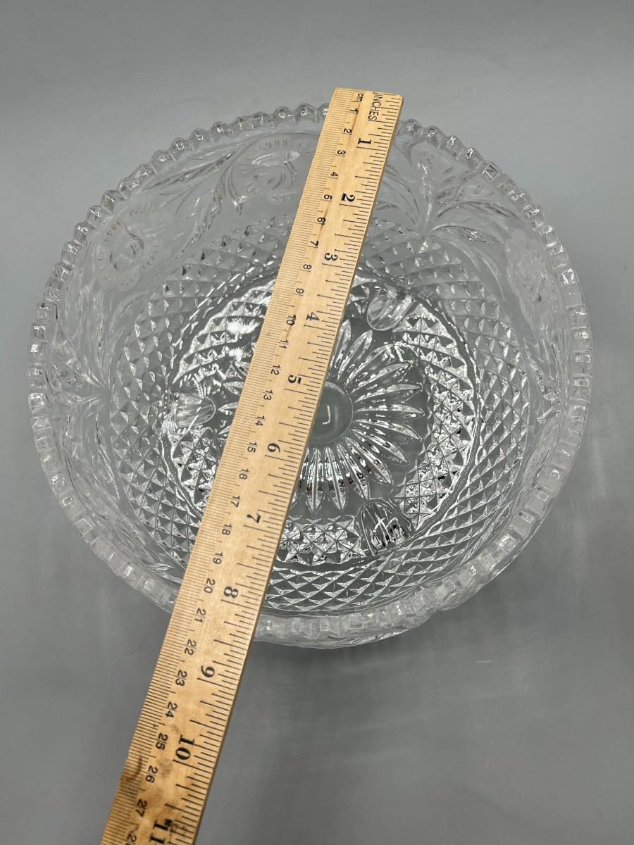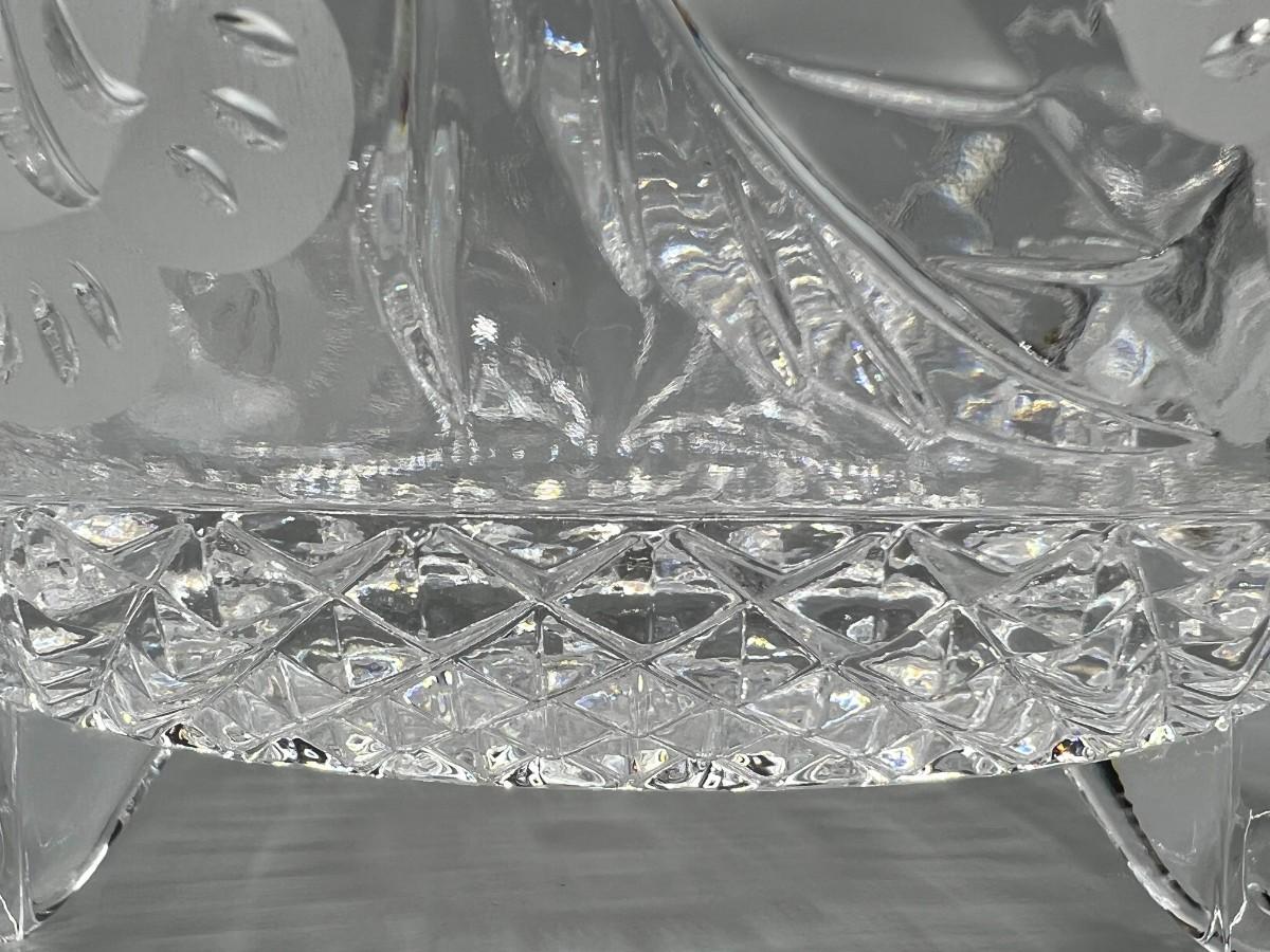 Vintage Flower Cut Pattern Footed Crystal Glass Dish Bowl