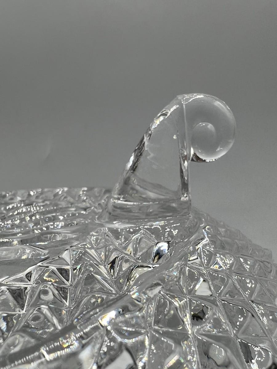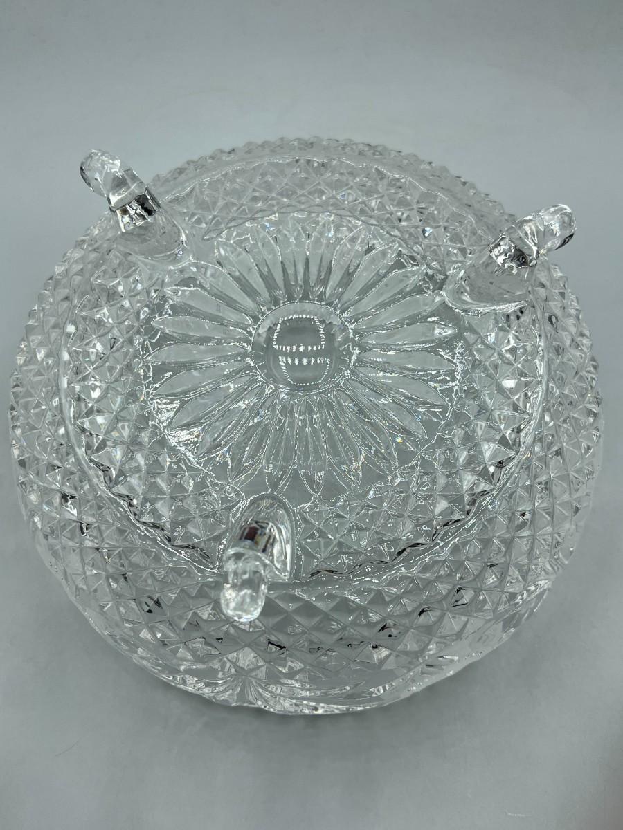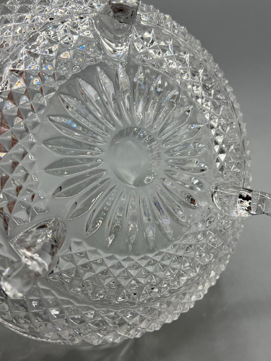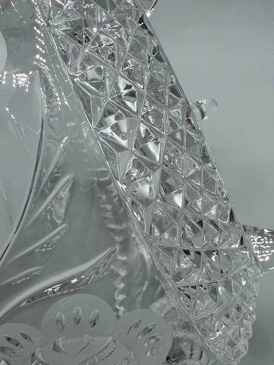 Vintage Flower Cut Pattern Footed Crystal Glass Dish Bowl