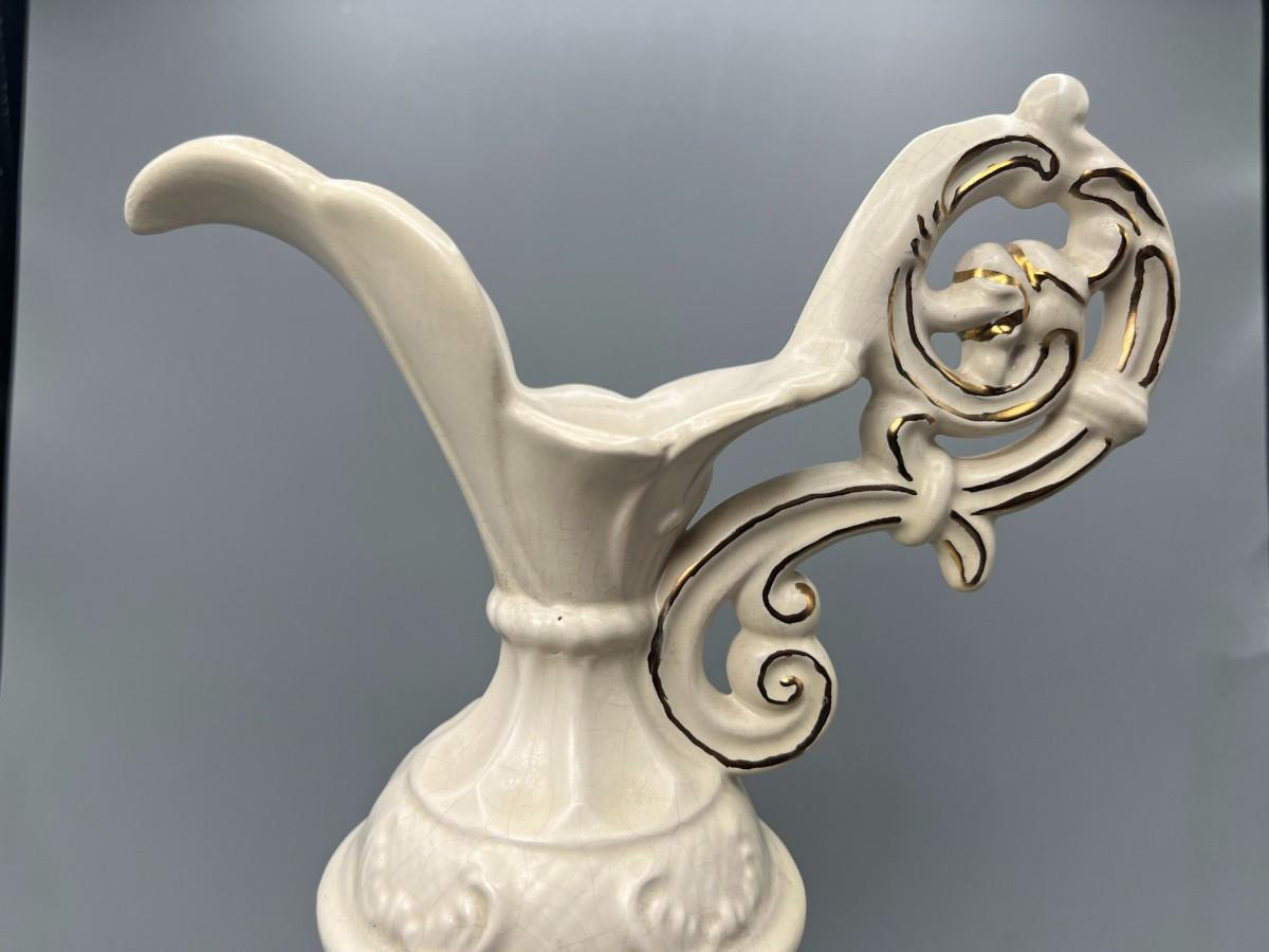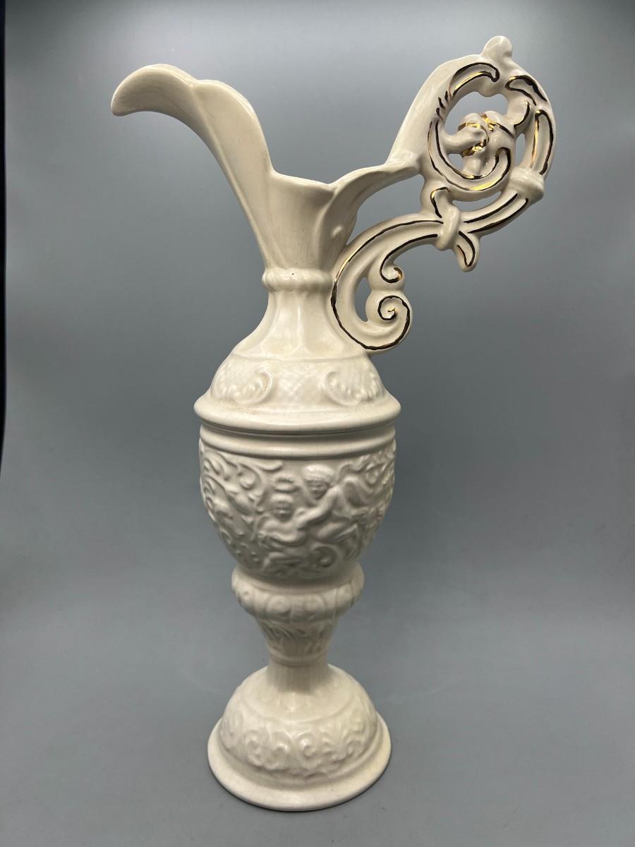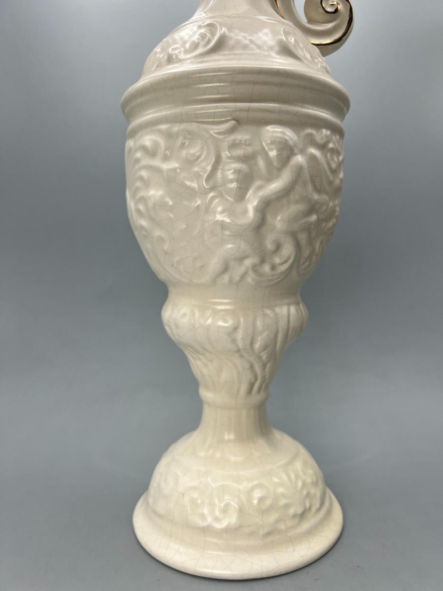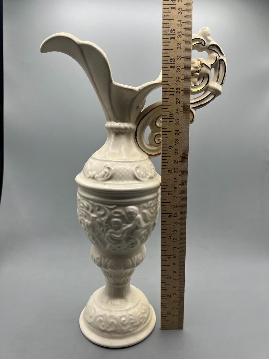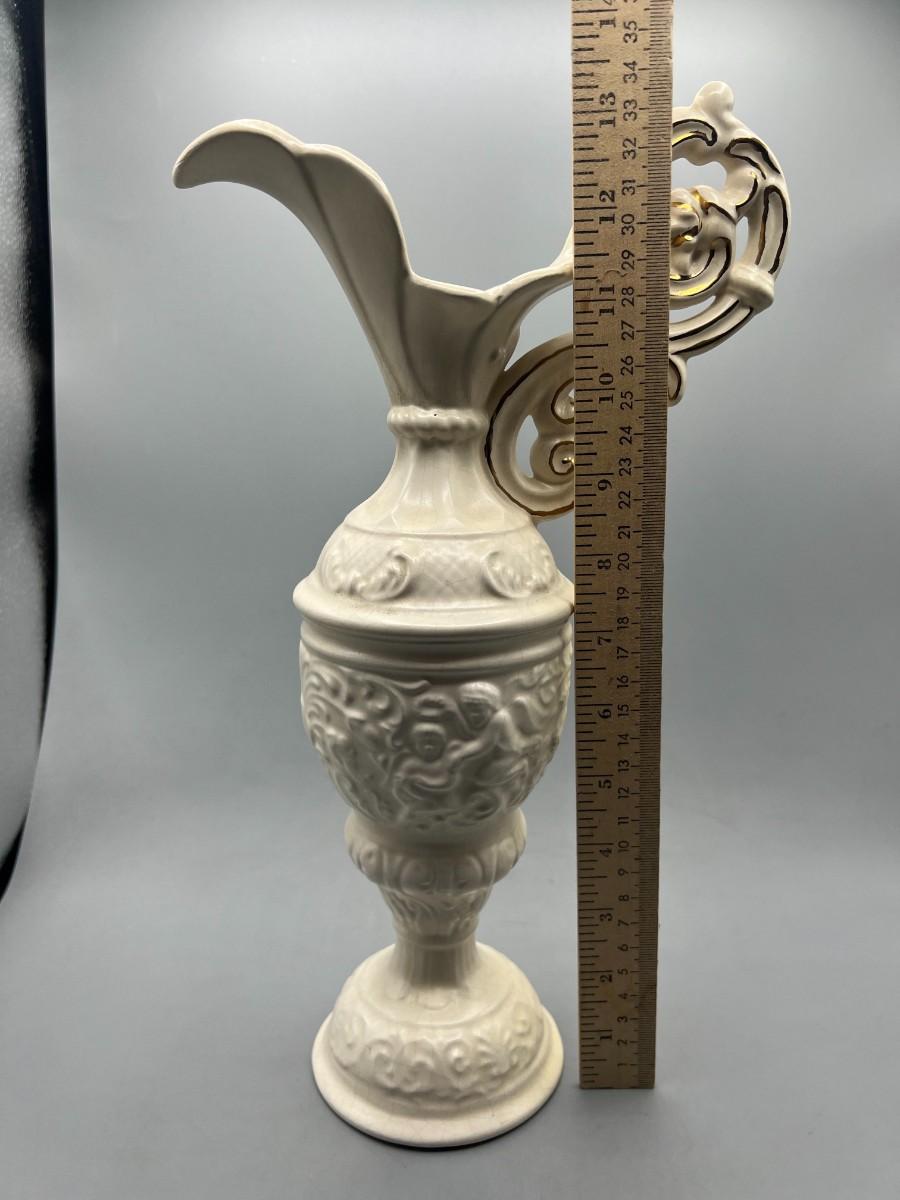 Vintage Artist Signed Ceramic Cherub Angel Bisque Displayable Mid Century Pitcher