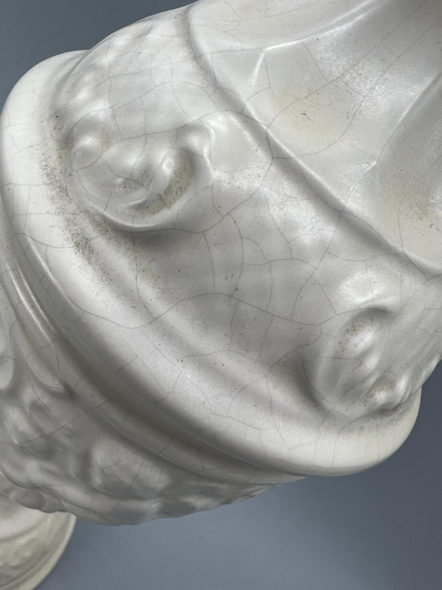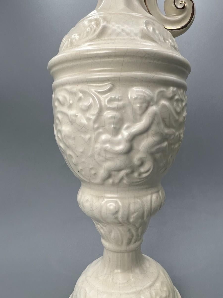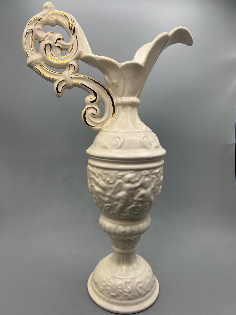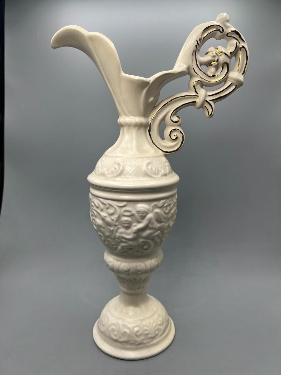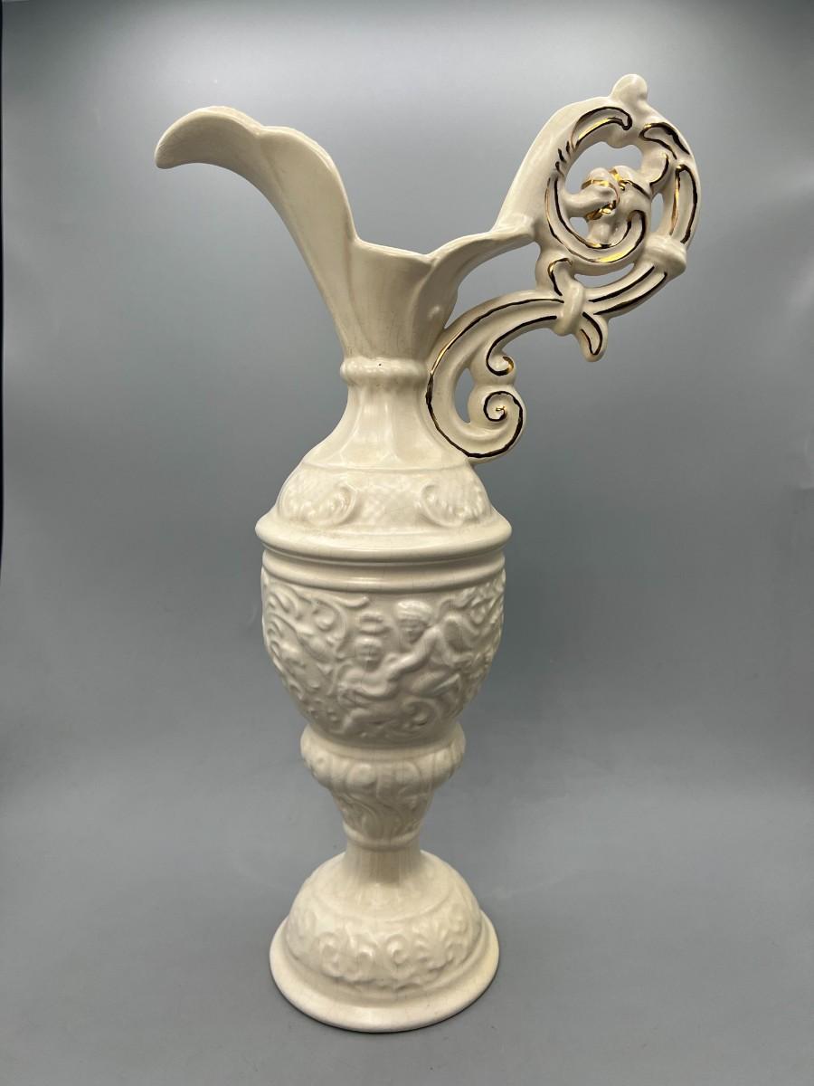Vintage Artist Signed Ceramic Cherub Angel Bisque Displayable Mid Century Pitcher