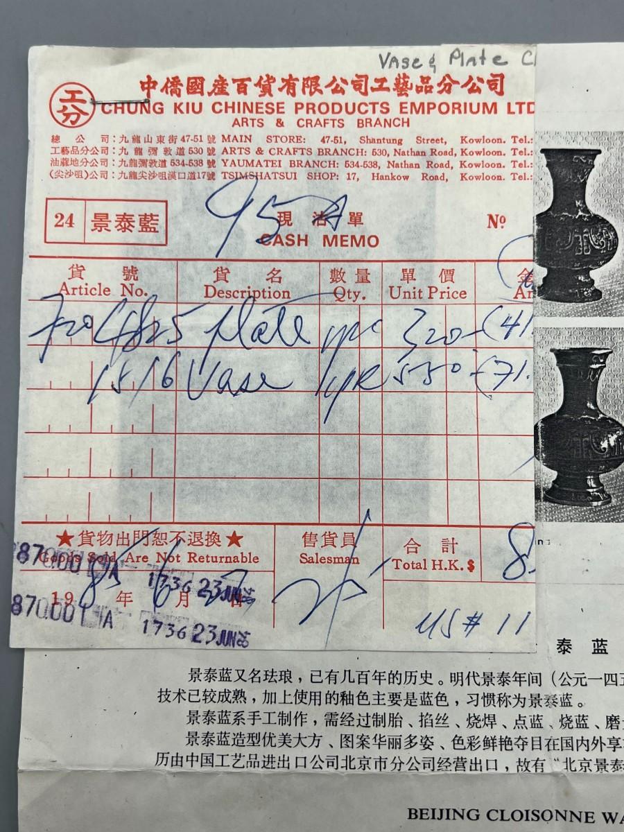 There is velcro taped to the bottom of the vase and on top of the wooden pedestal, but there is no significant damage and is in overall good collectible condition. Comes with the original receipt and information sheet.