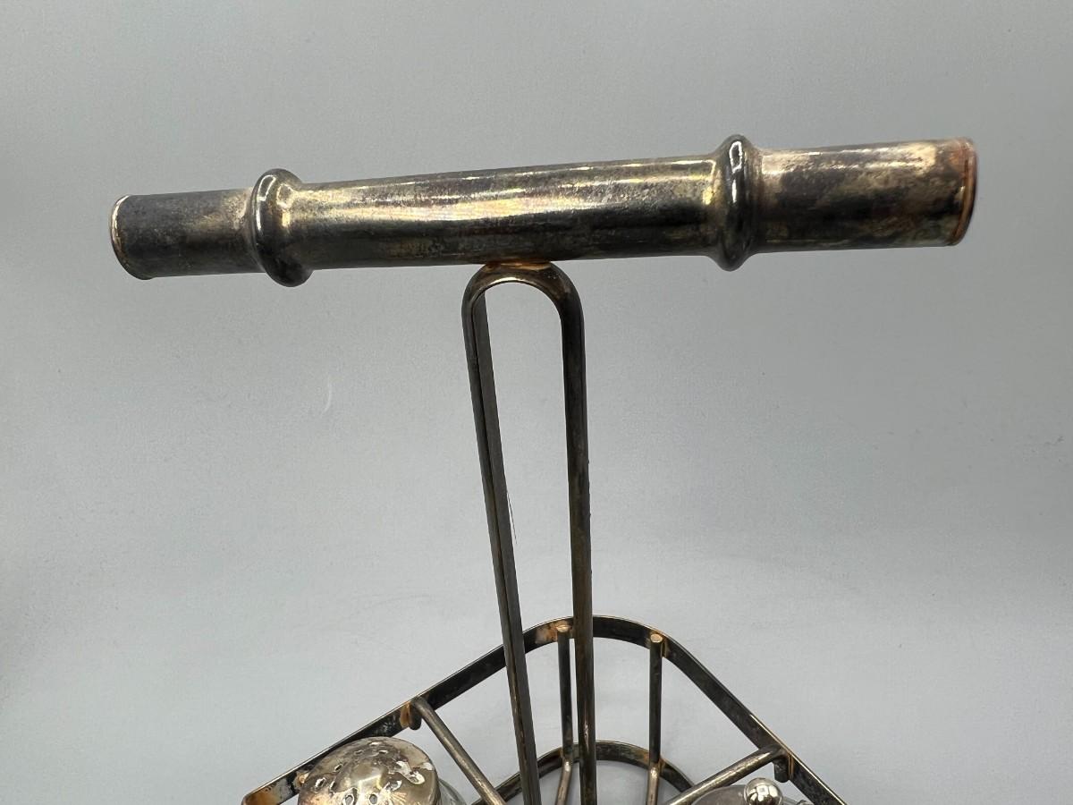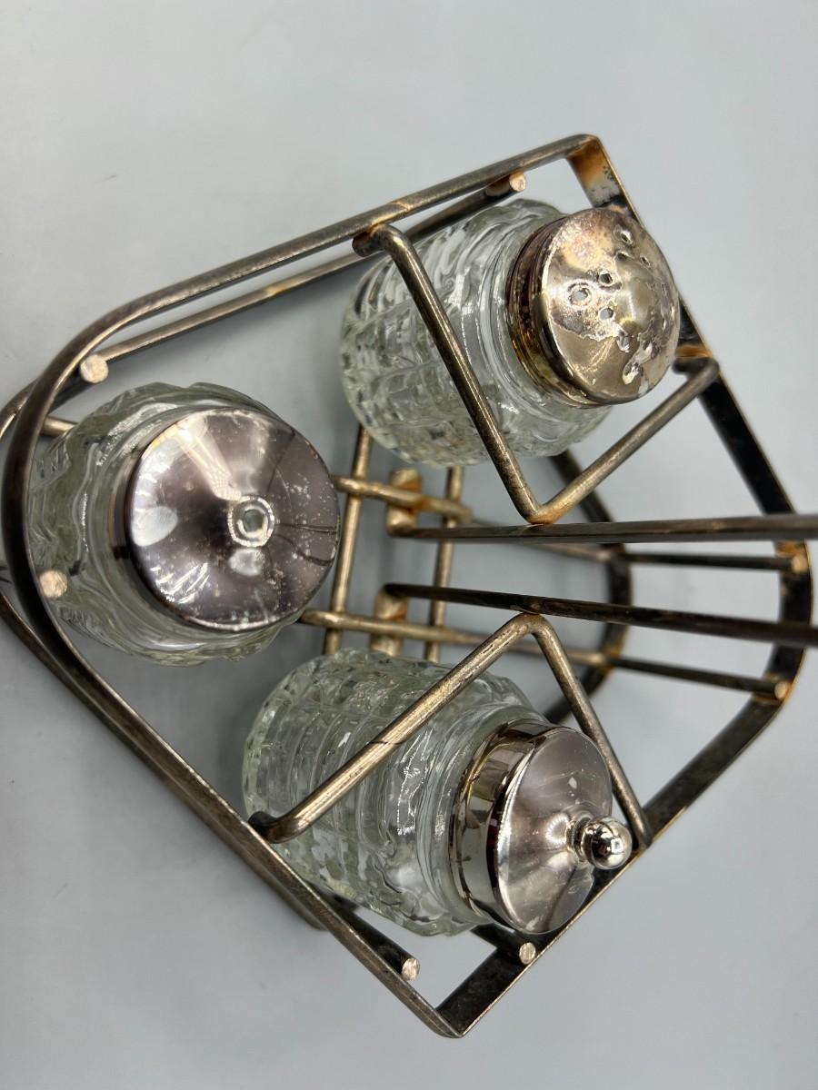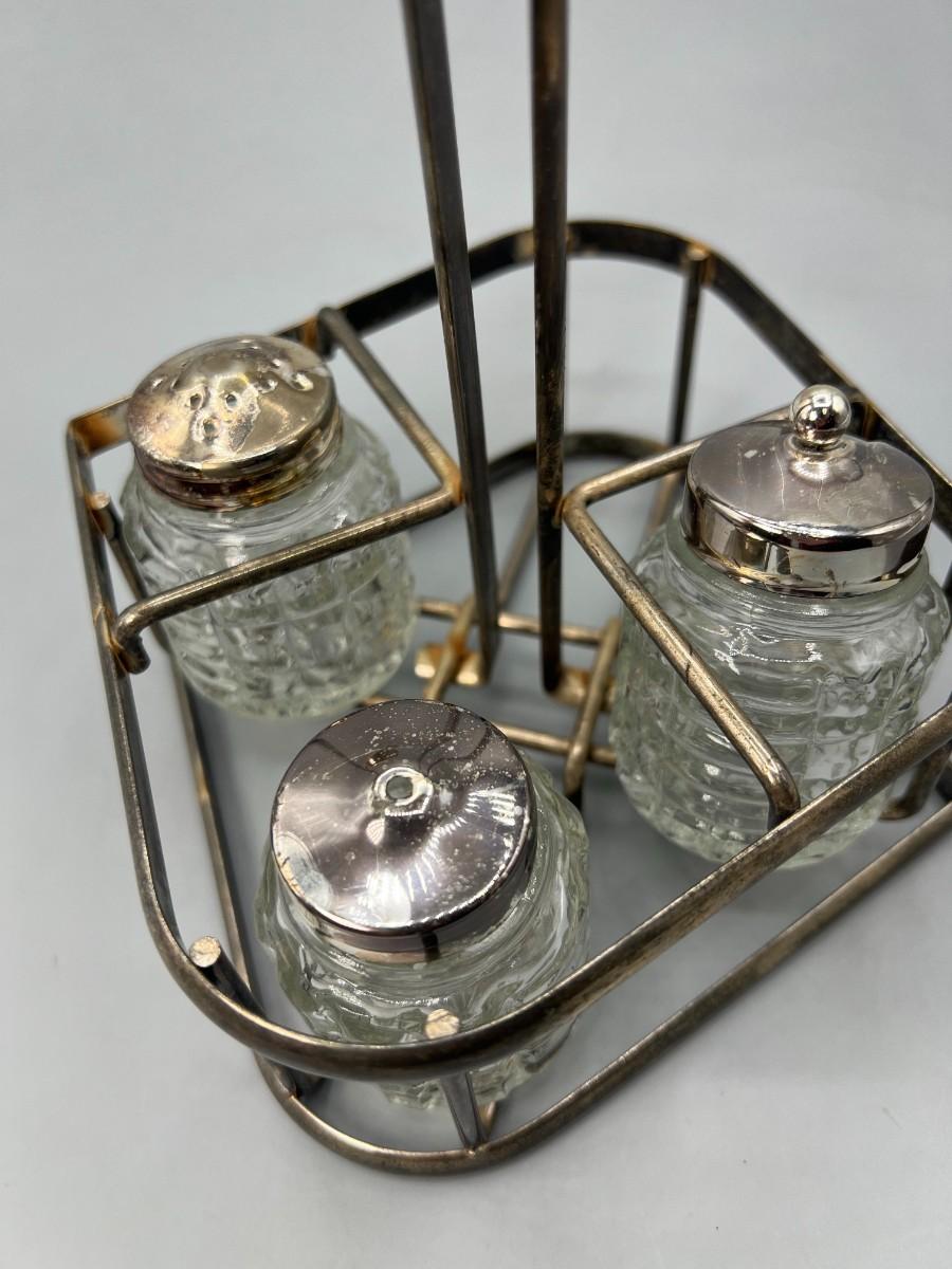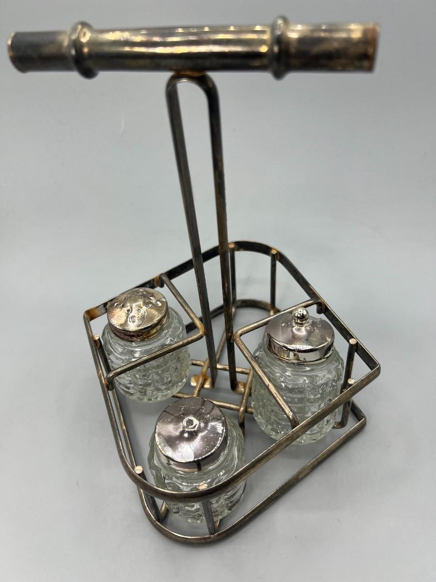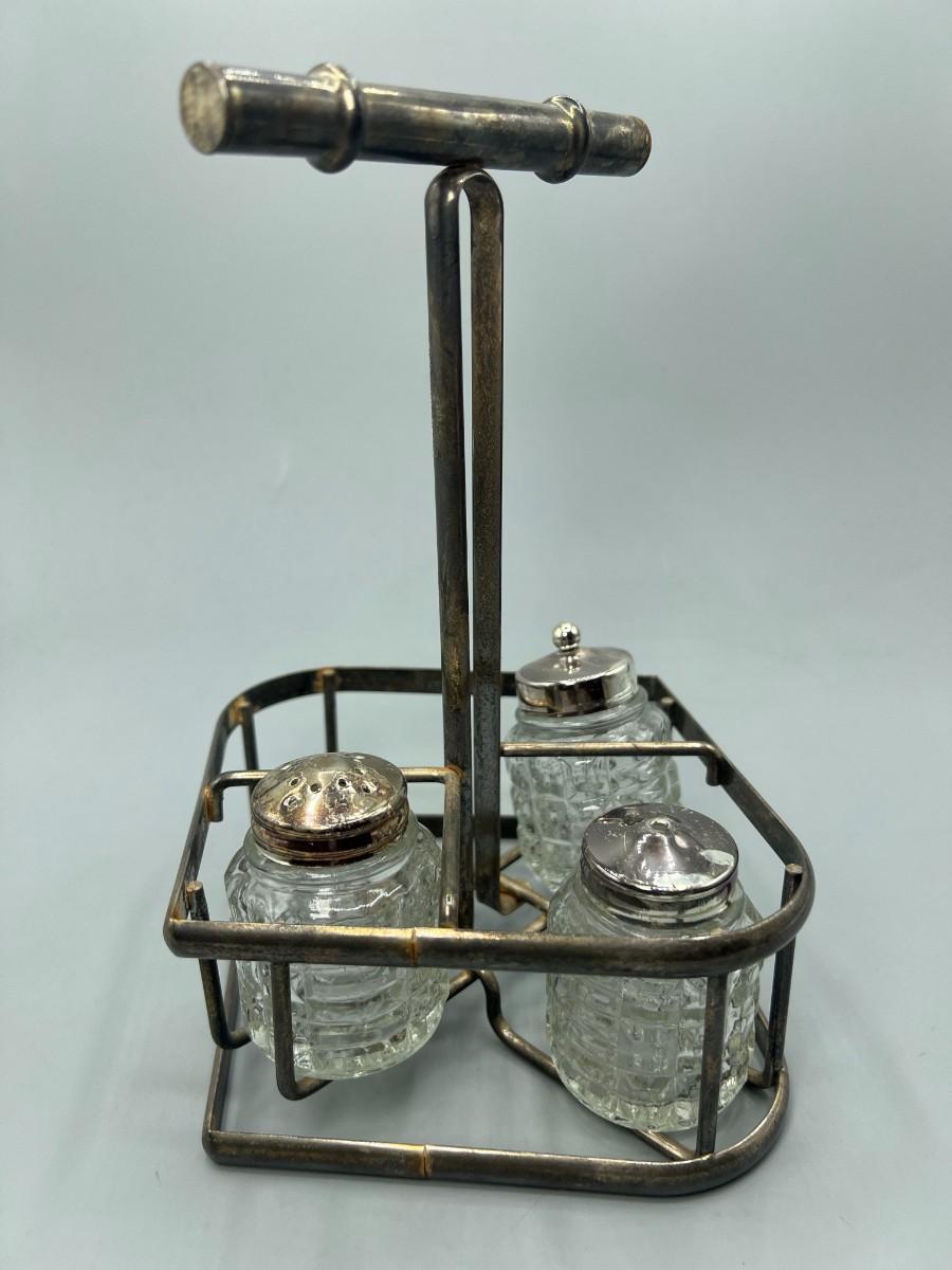 Vintage Glass Salt & Pepper Ingredient Container Silver plate Caddy