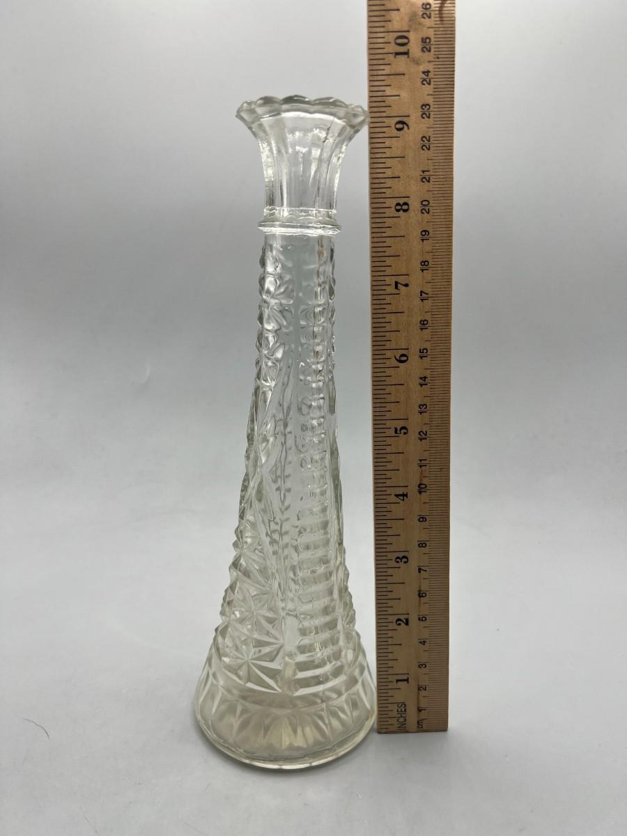 Small Vintage Anchor Hocking Clear Cut Glass Starburst Flower Bud Vase