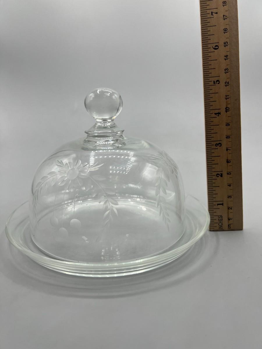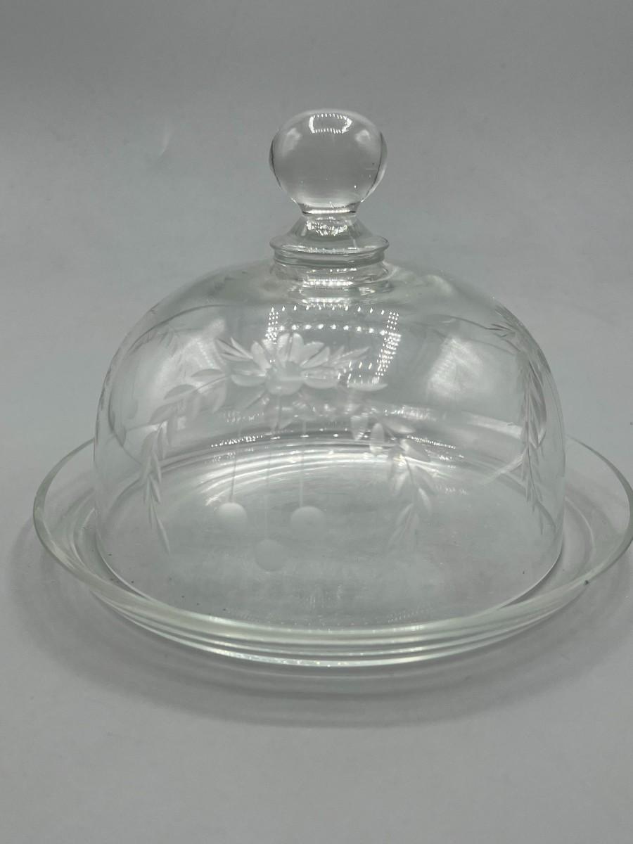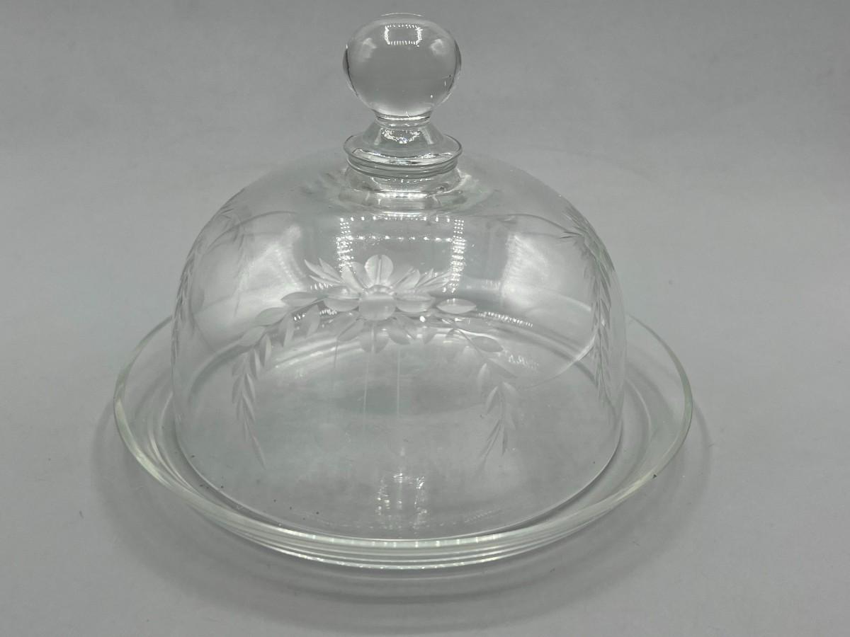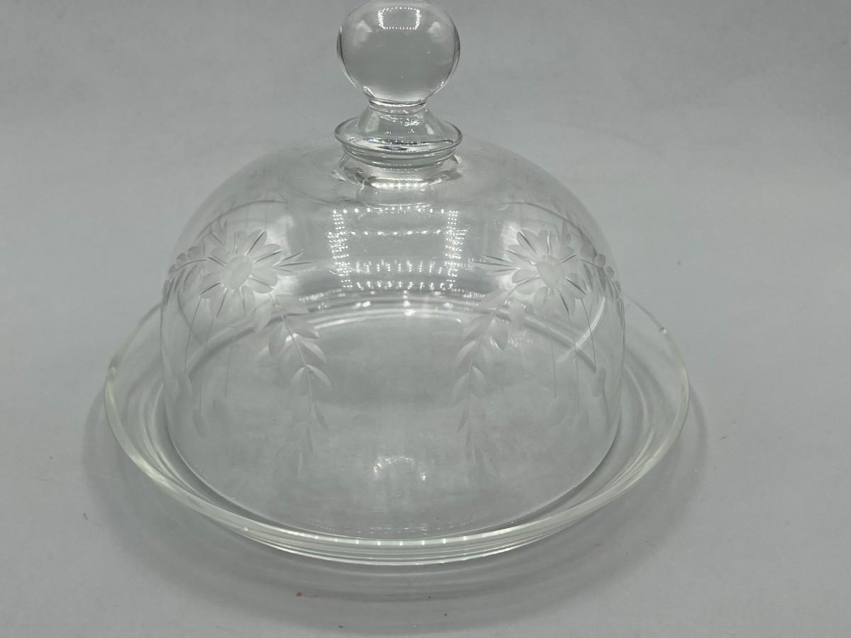Retro Clear Glass Flower Motif Dome Cover Butter Cheese Dish