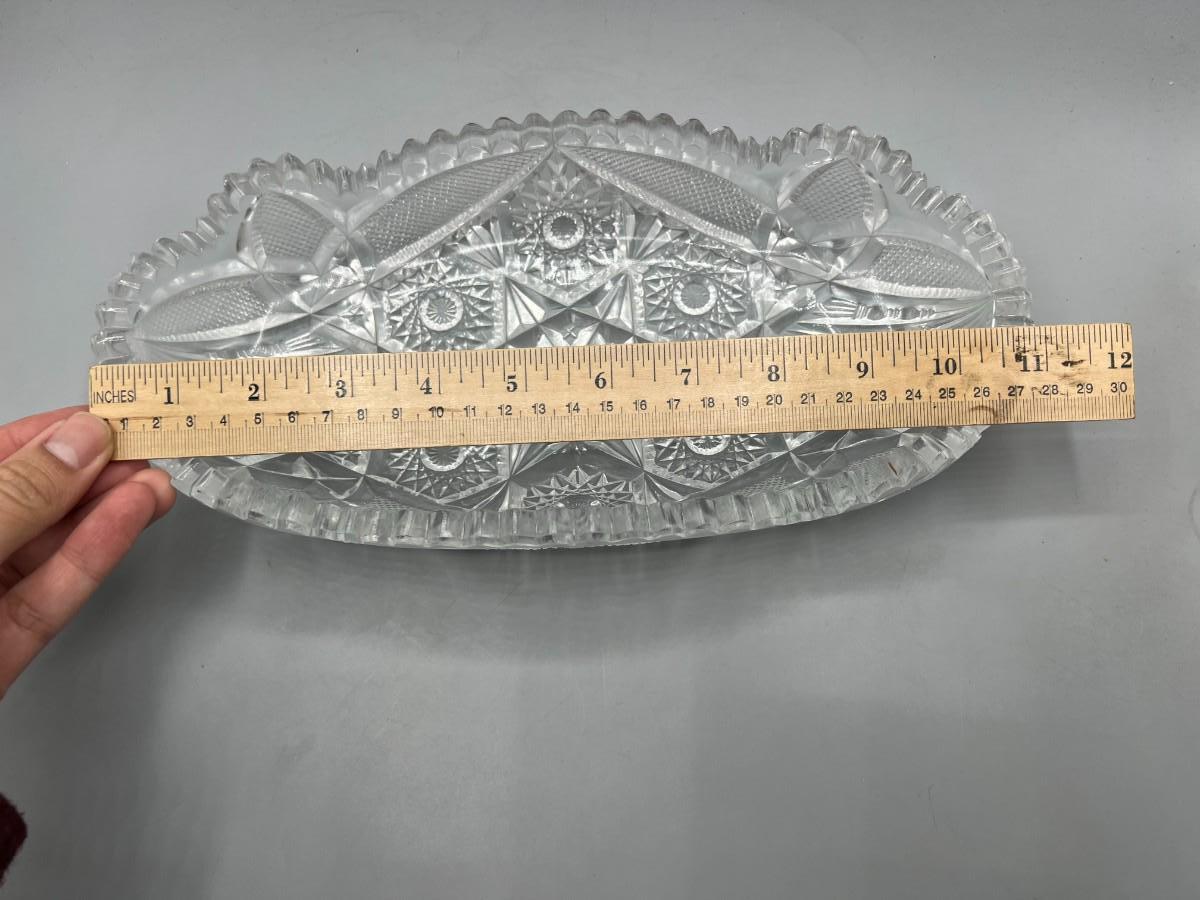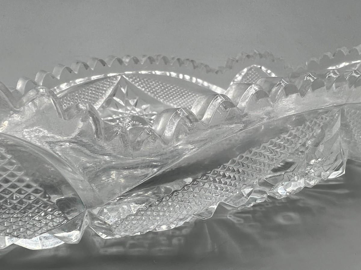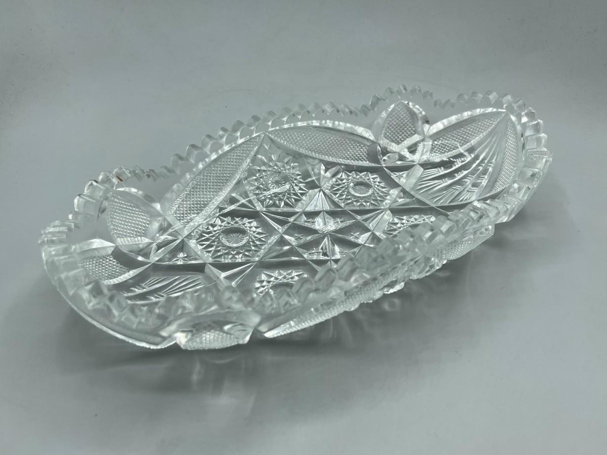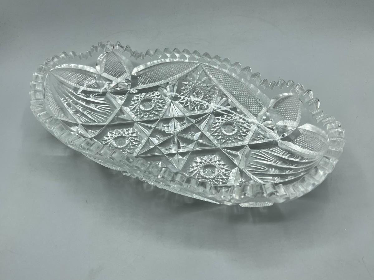 Vintage Oblong Sawtooth Cut Crystal Serving Dish. In good condition. Almost 12" length.