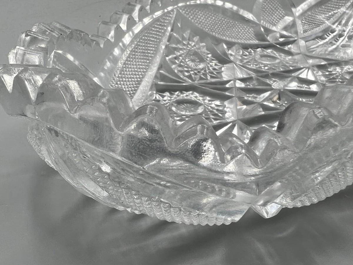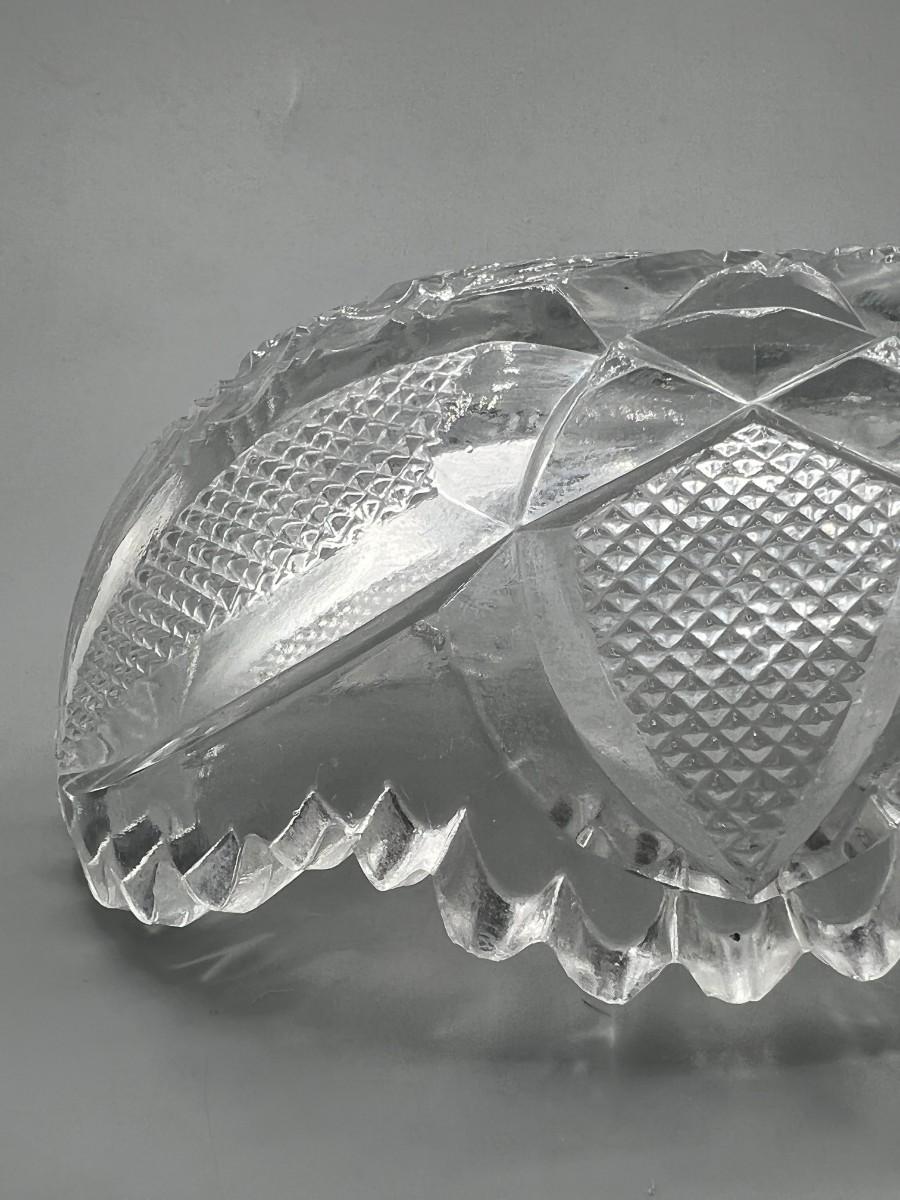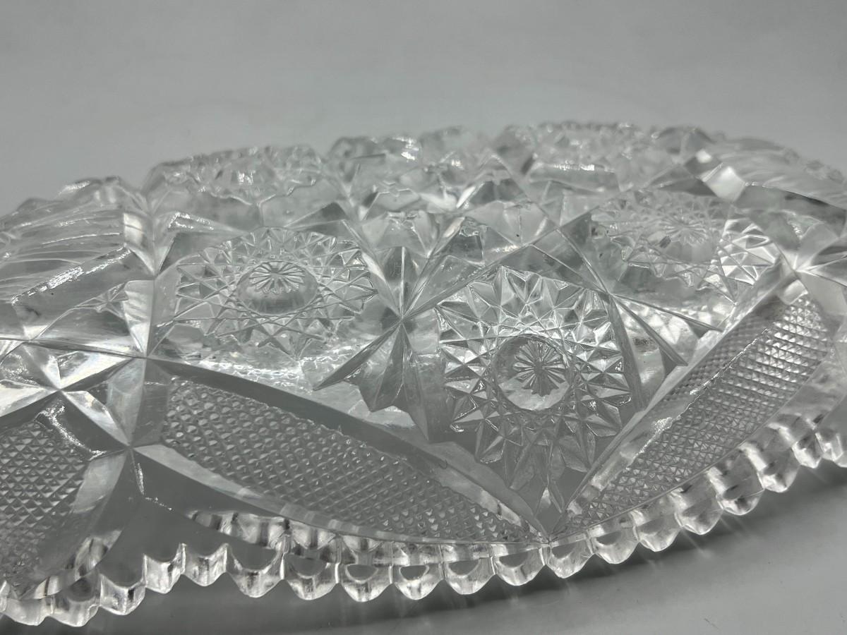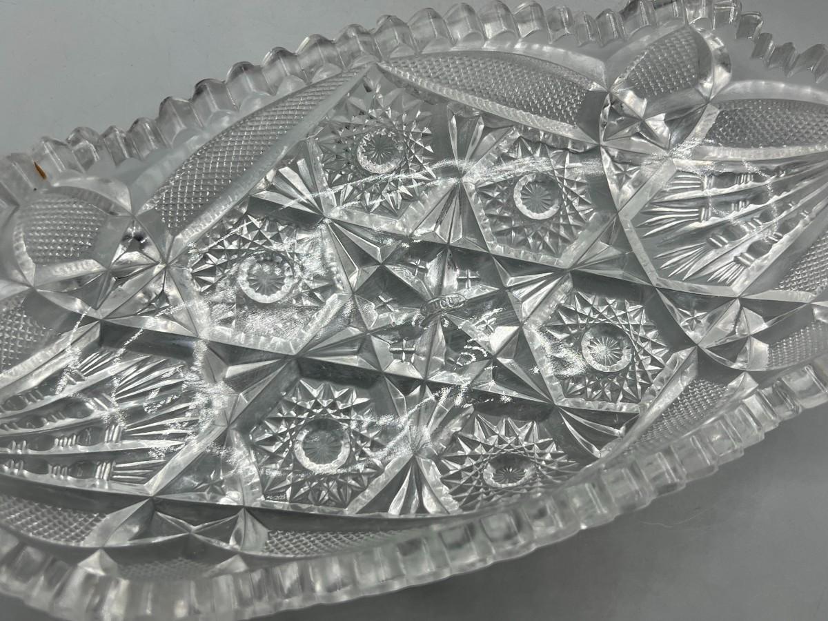 Vintage Oblong Sawtooth Cut Crystal Serving Dish. In good condition. Almost 12" length.