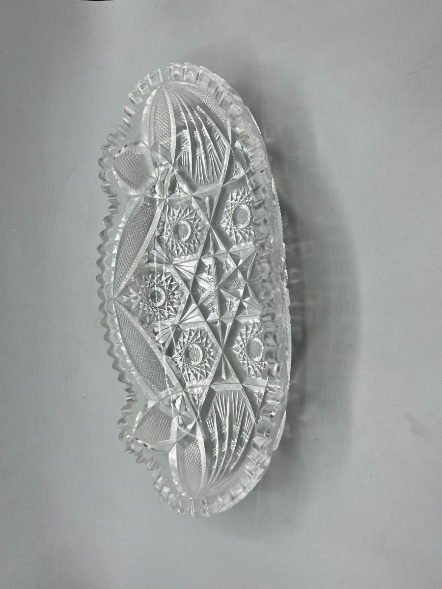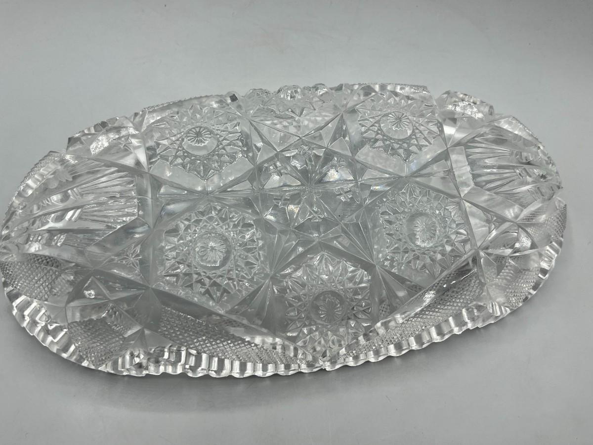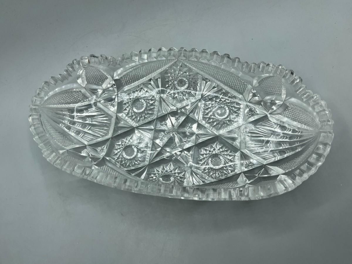 Vintage Oblong Sawtooth Cut Crystal Serving Dish