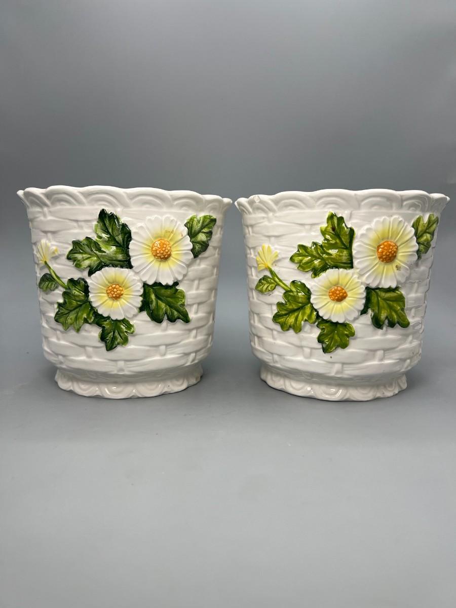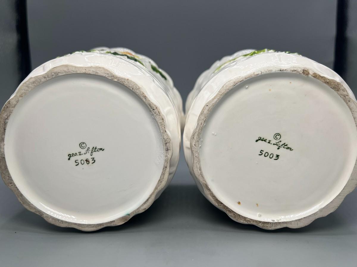 Pair of Vintage Lefton Ceramic White Flower Daisy Planter Pots