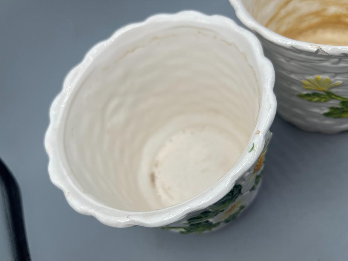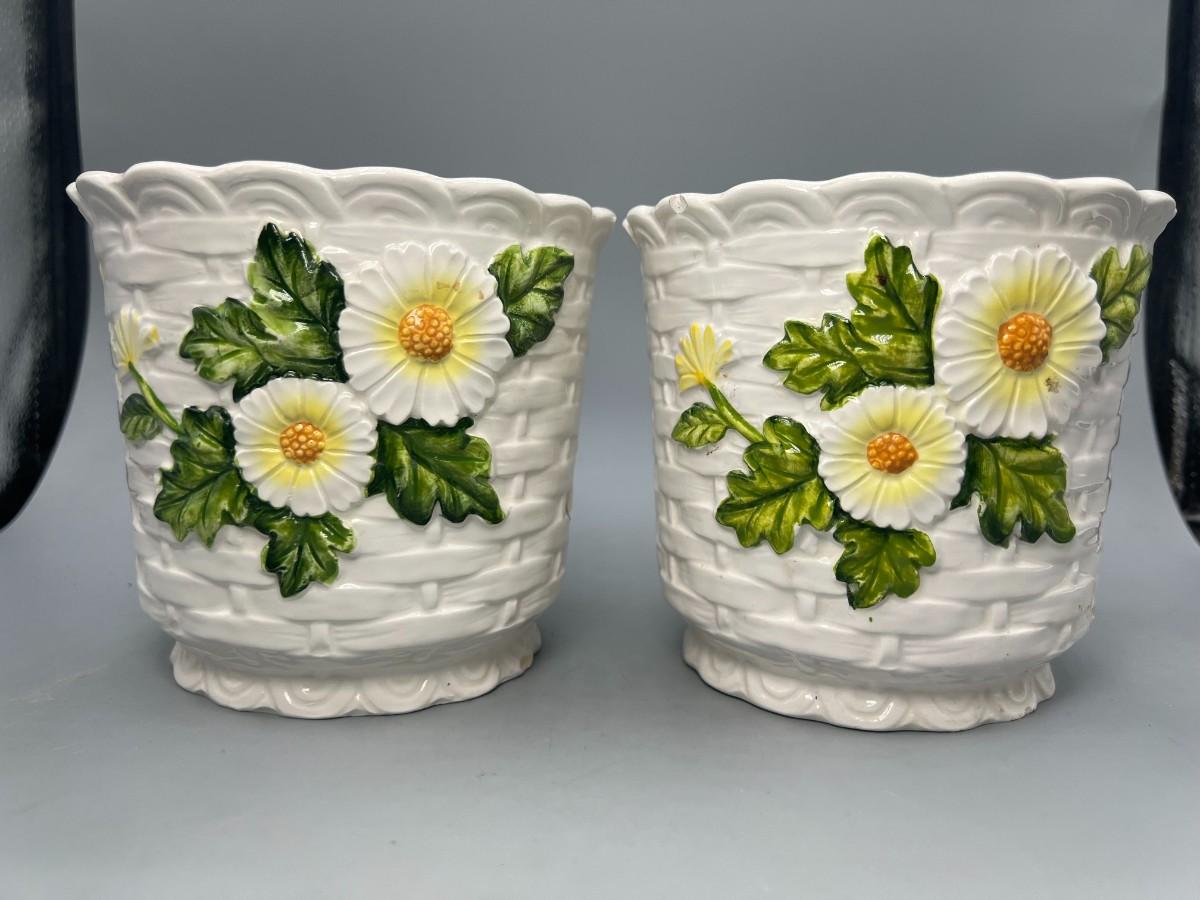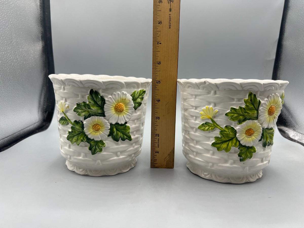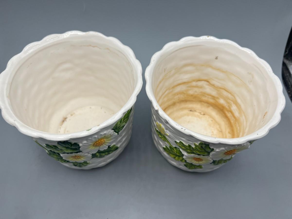 Pair of Vintage Lefton Ceramic White Flower Daisy Planter Pots. In previously used condition. One looks like it was used more, it does have a small chip along the edge.