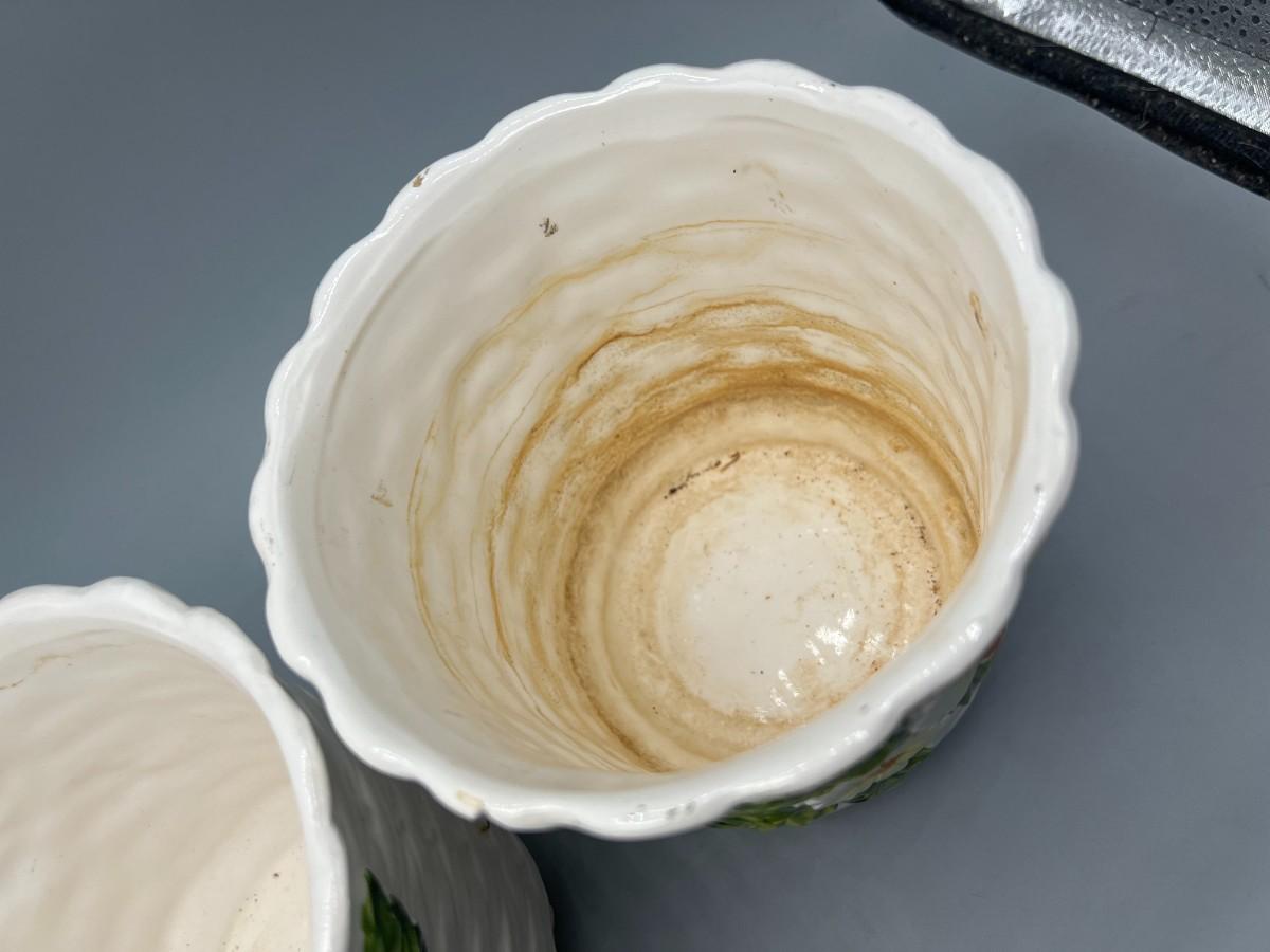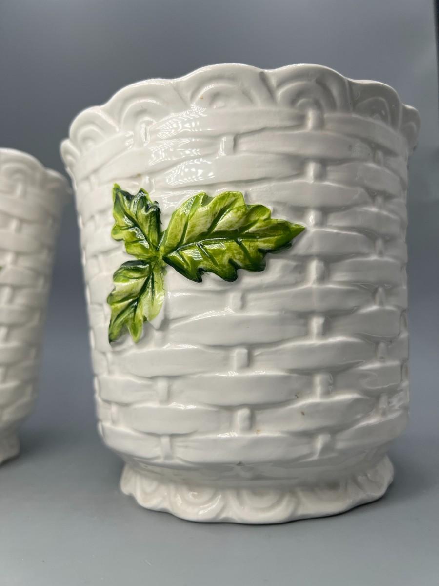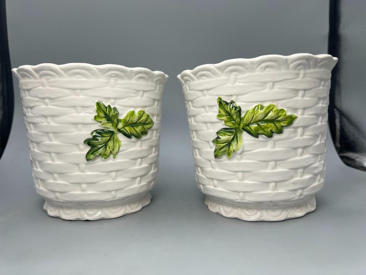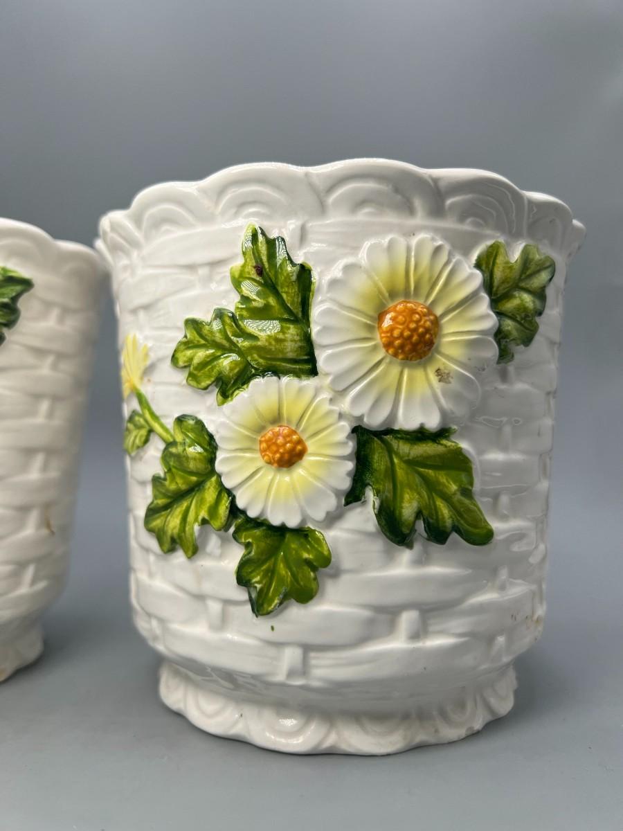 Pair of Vintage Lefton Ceramic White Flower Daisy Planter Pots. In previously used condition. One looks like it was used more, it does have a small chip along the edge.