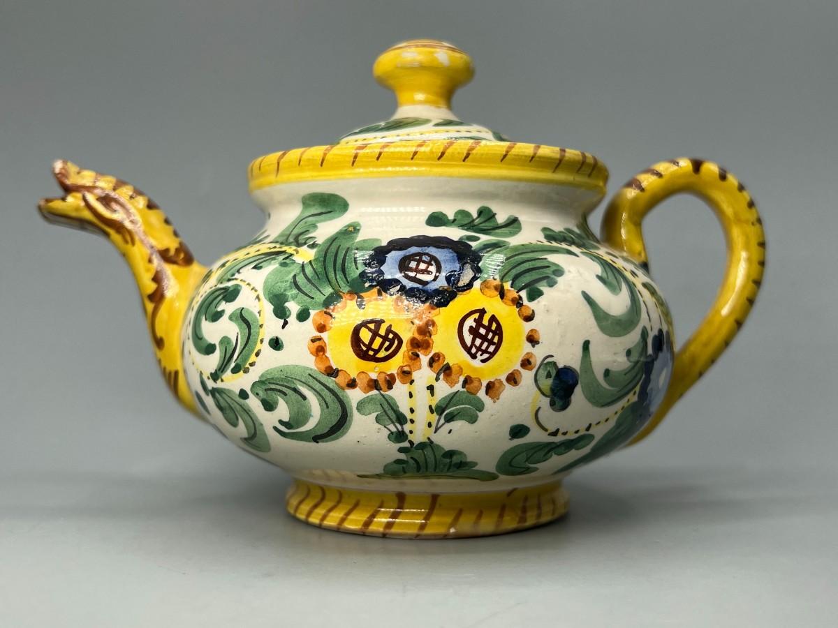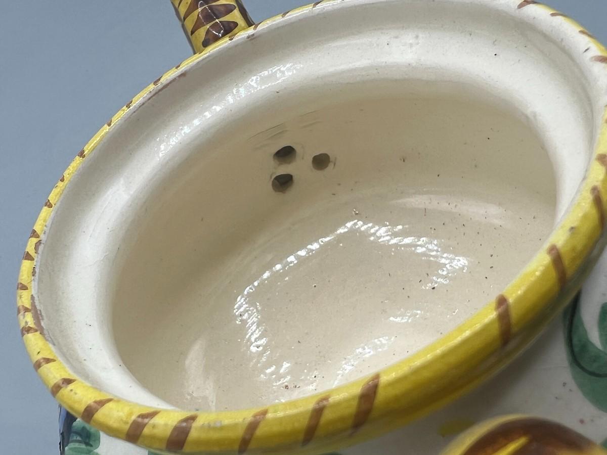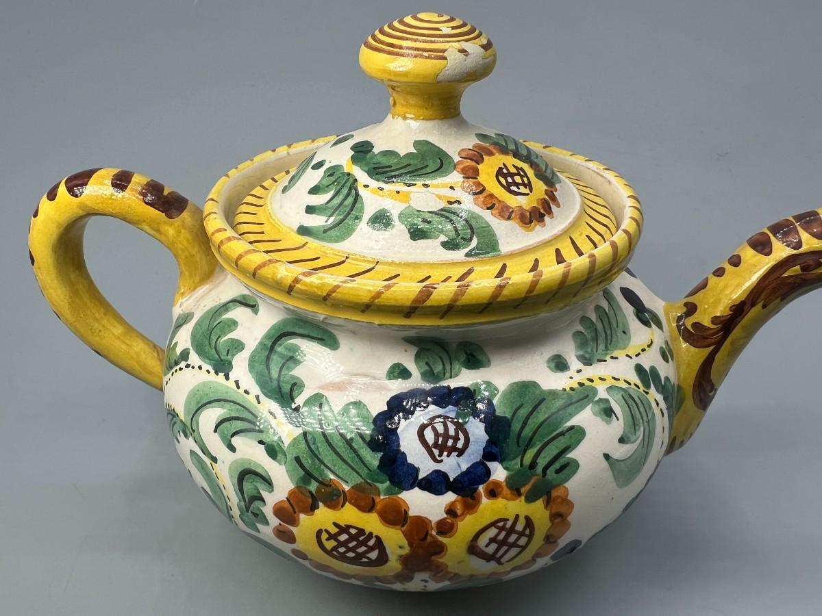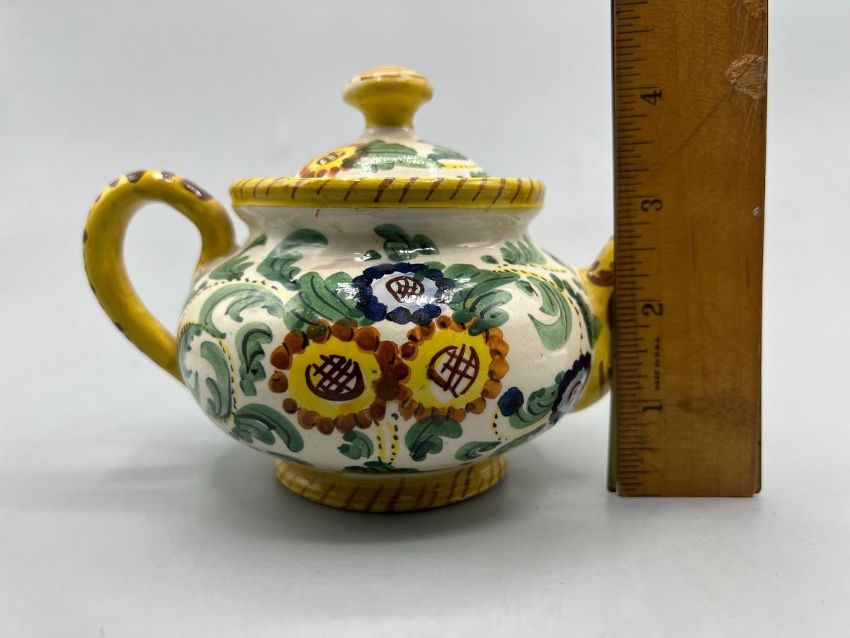 Vintage Signed Italian Pottery Ceramic Yellow Floral Motif Filter Teapot