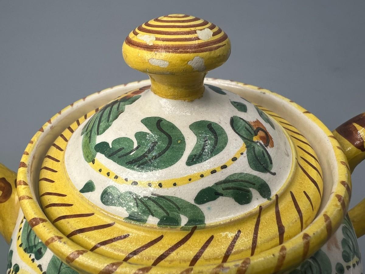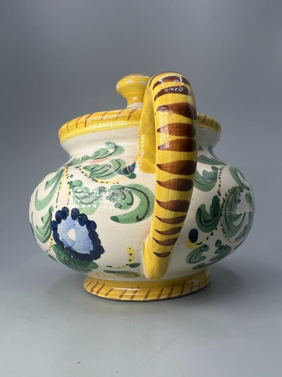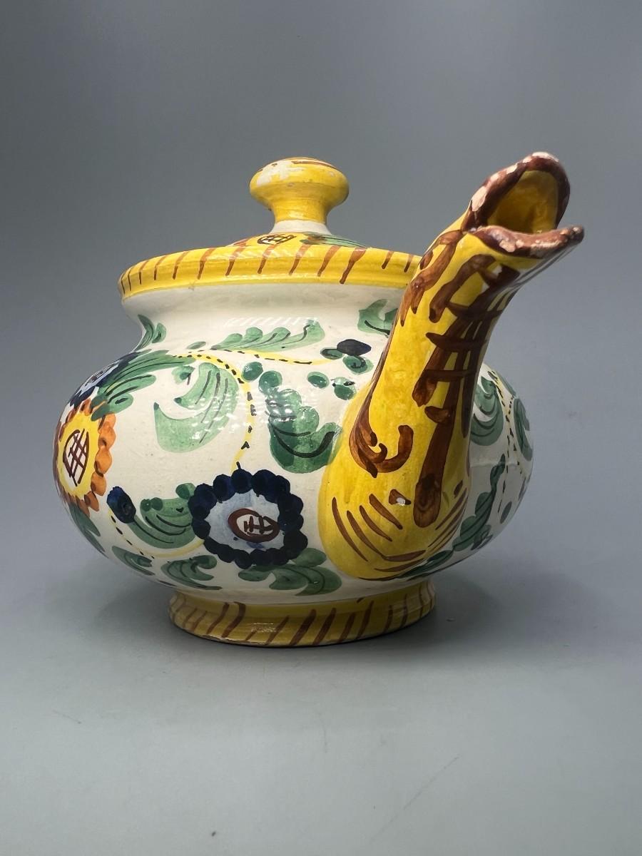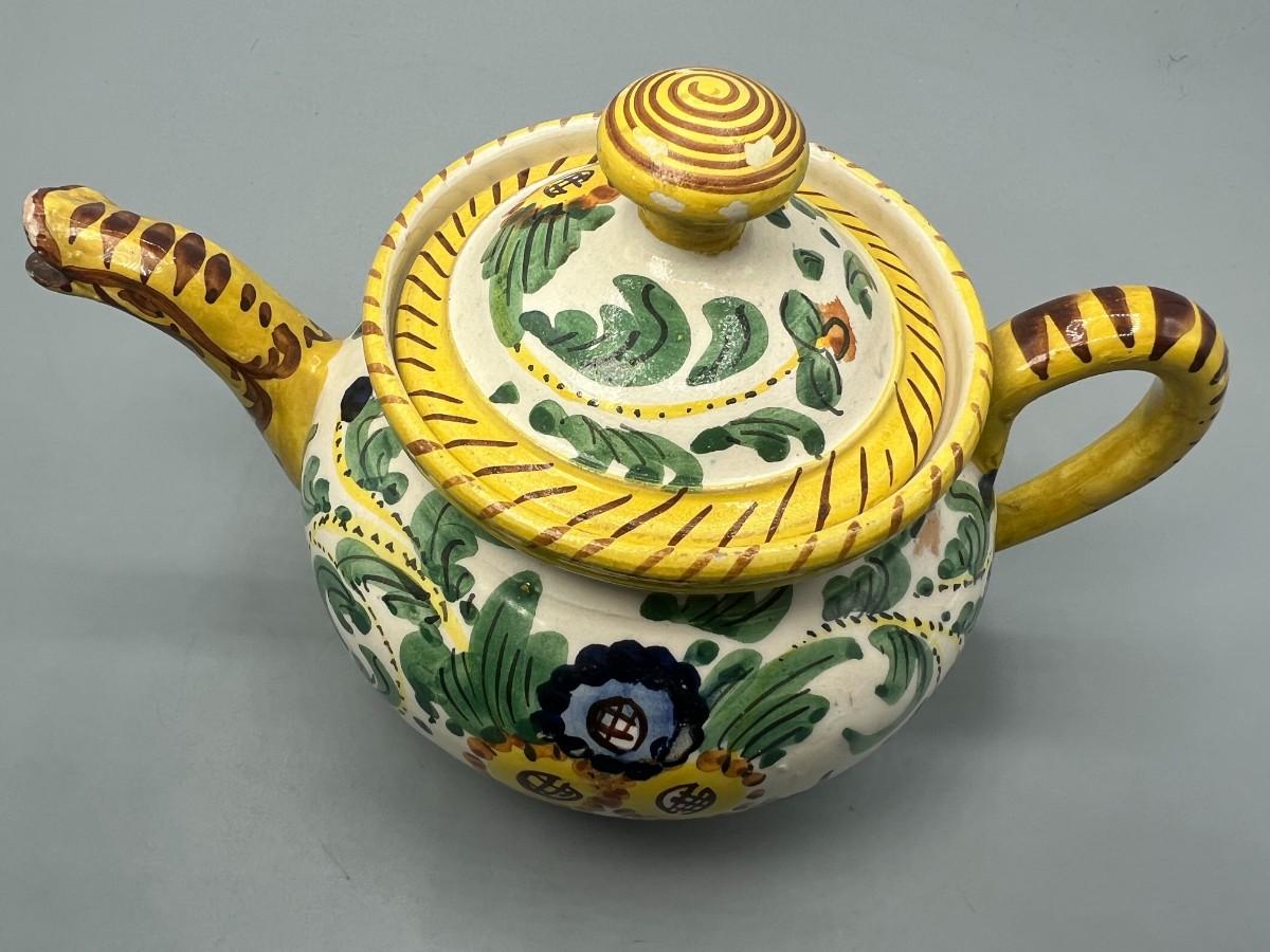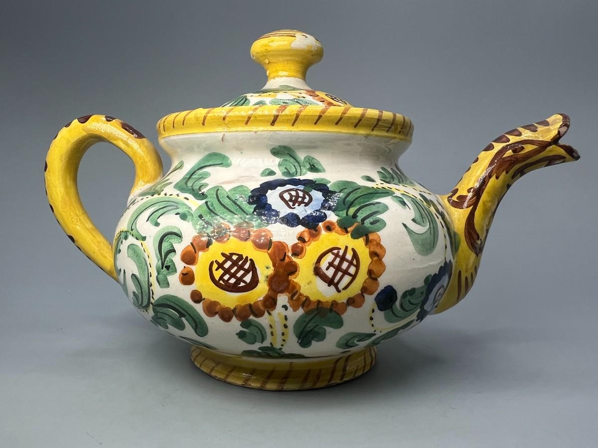 Vintage Signed Italian Pottery Ceramic Yellow Floral Motif Filter Teapot