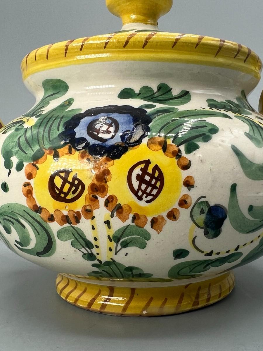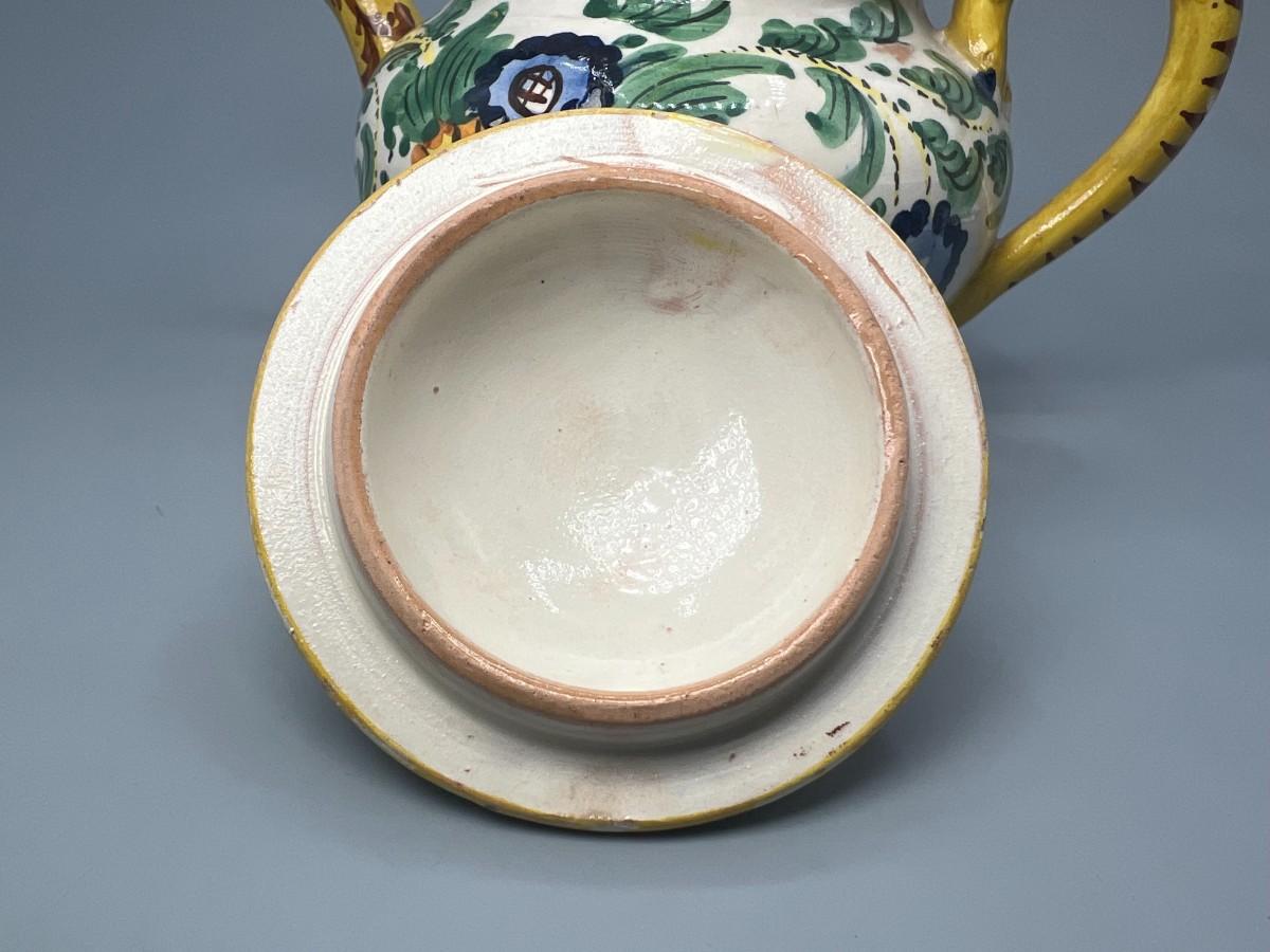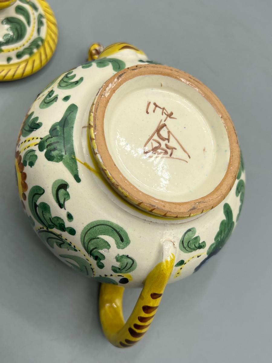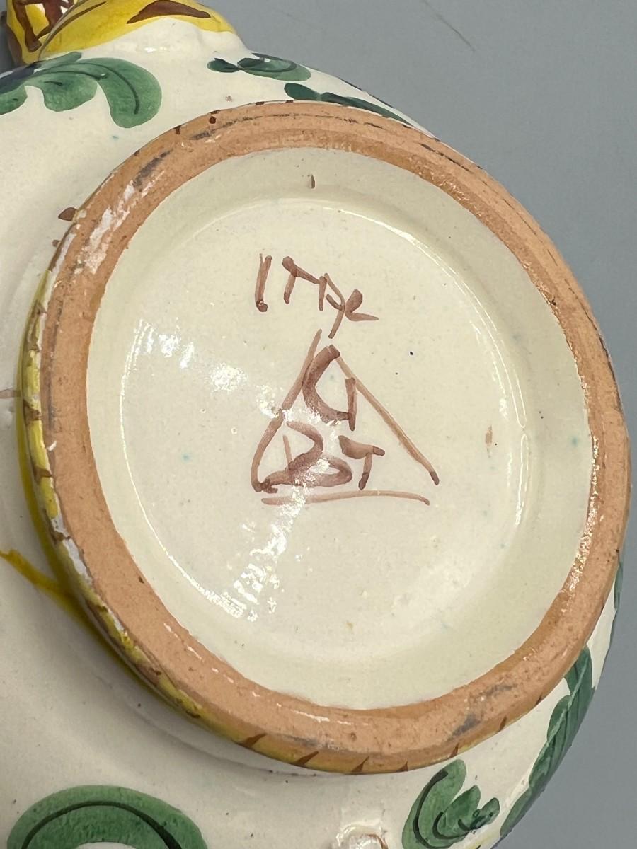 Vintage Signed Italian Pottery Ceramic Yellow Floral Motif Filter Teapot