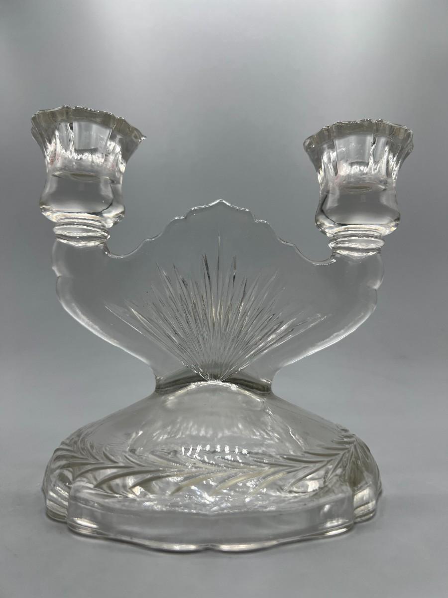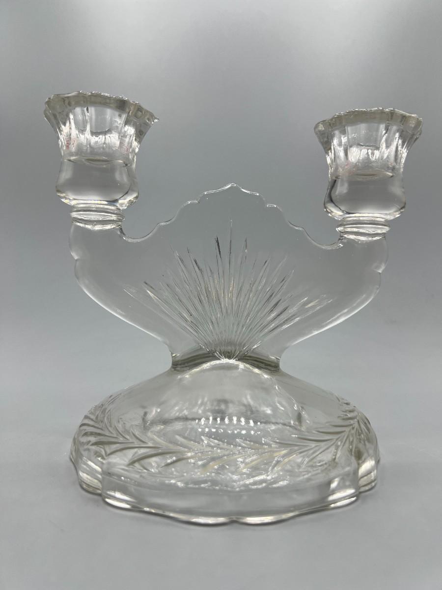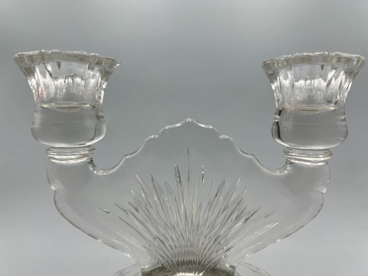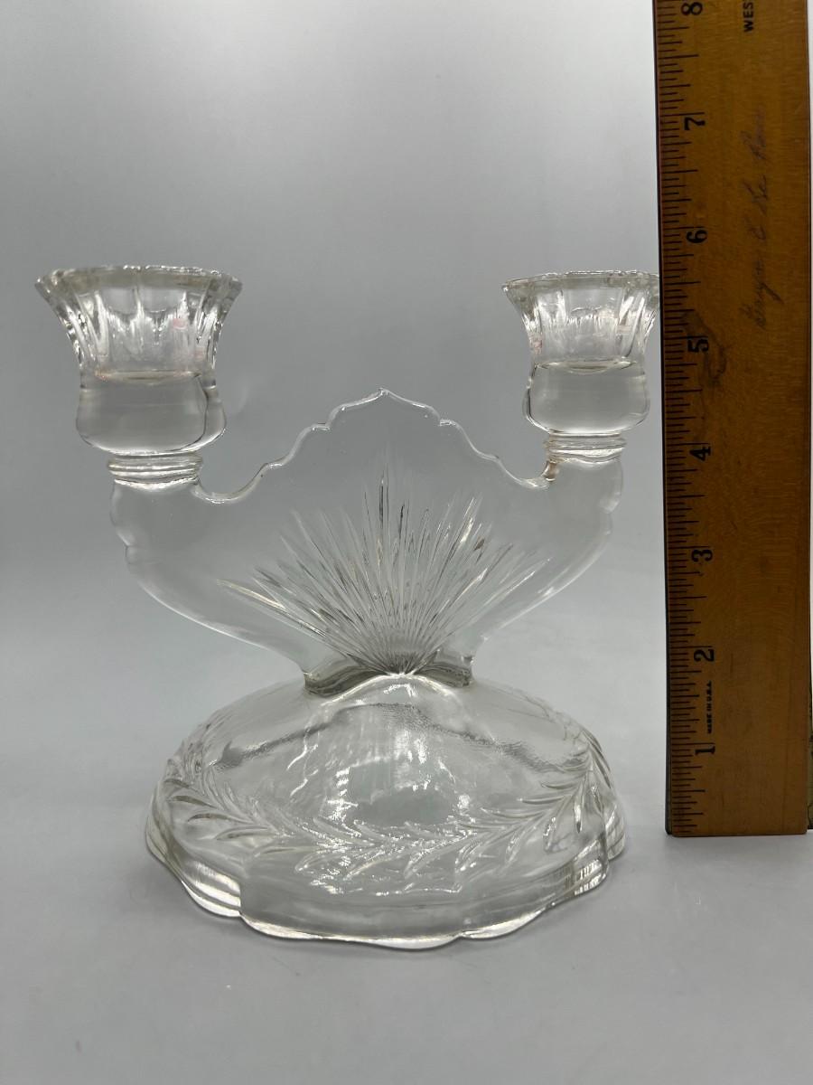 Vintage Jeanette Sunburst Clear Pressed Glass Mid Century Modern Sunburst Candlestick Holder