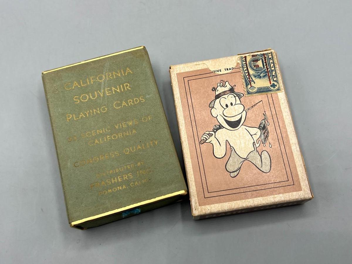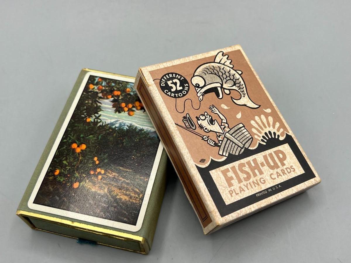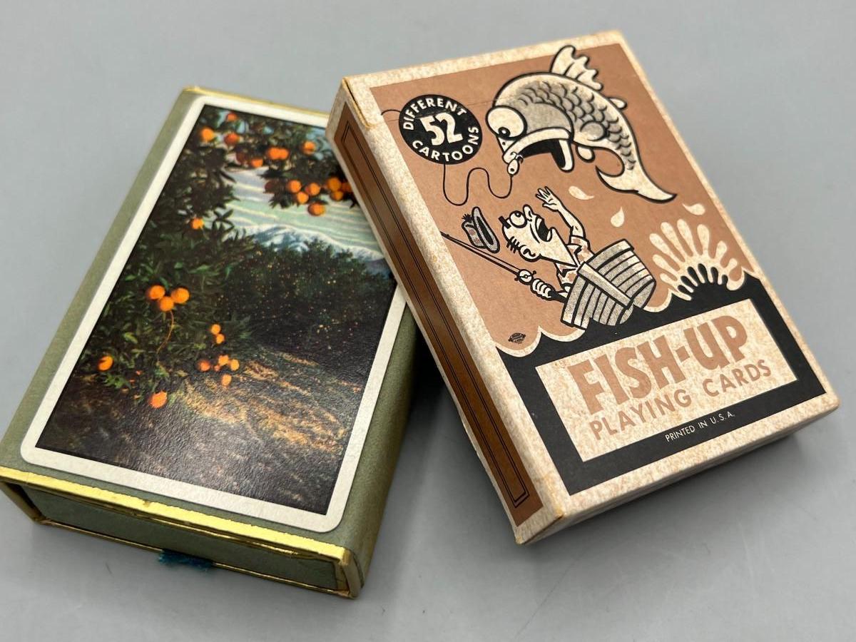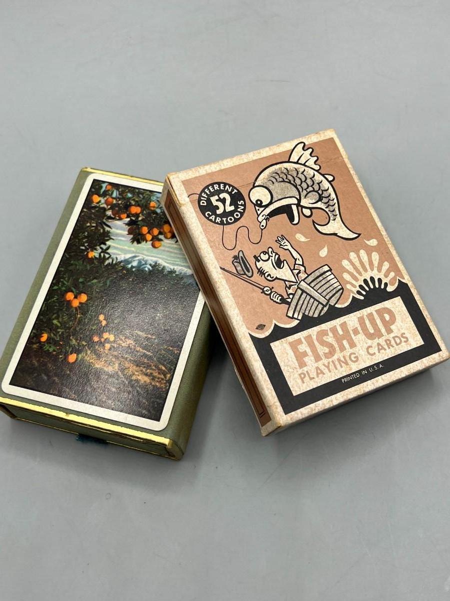 Vintage Playing Cards Fish Up 53 Different Fishing Cartoons Playing Cards & California Souvenir Scenery Picture Cards