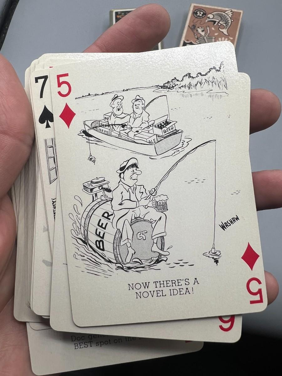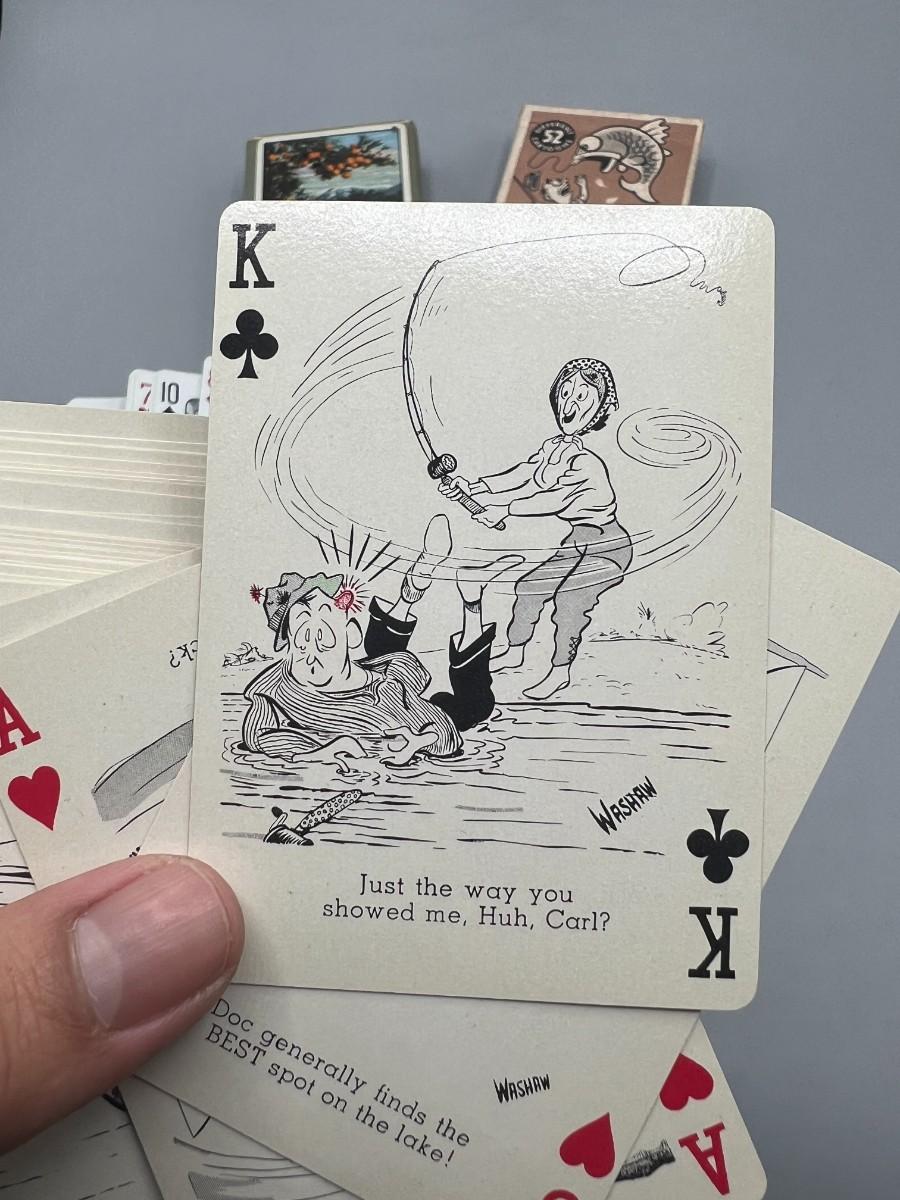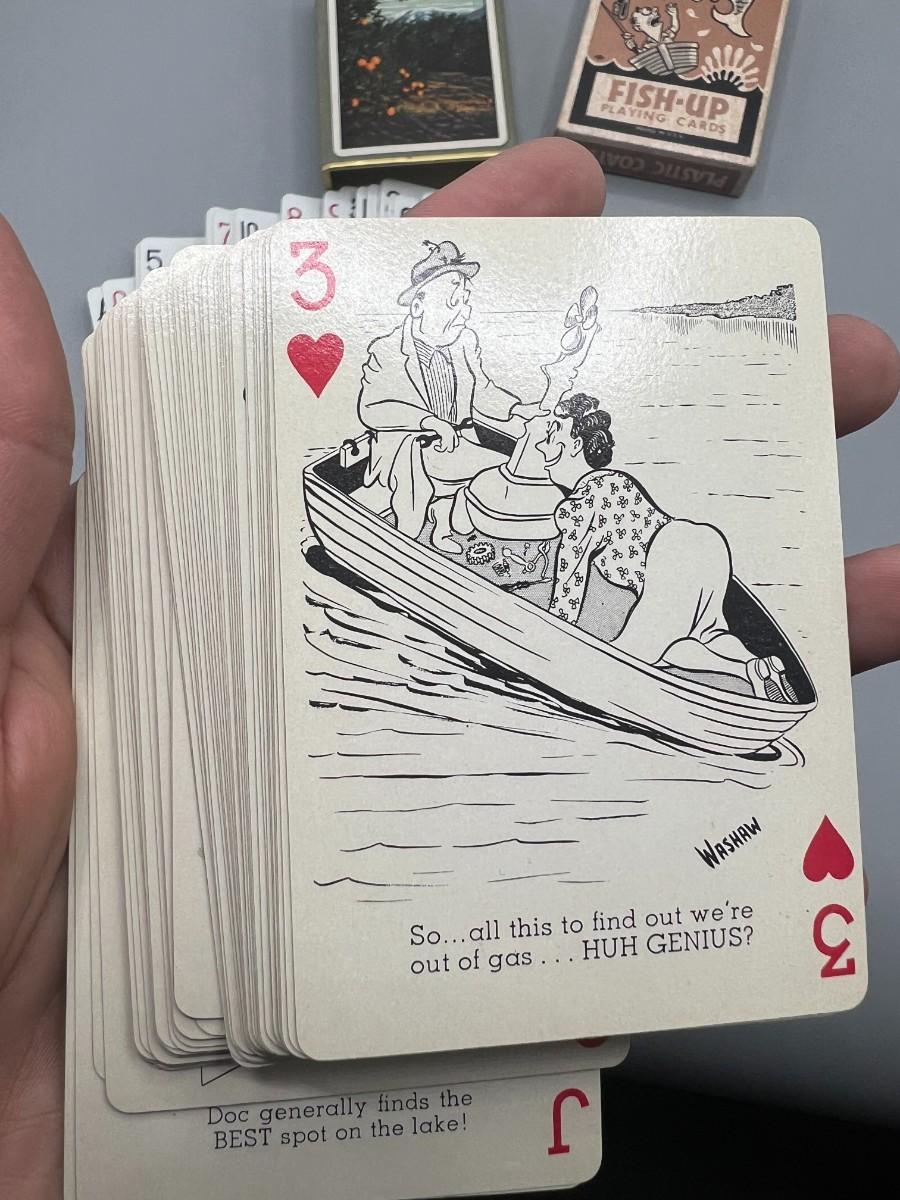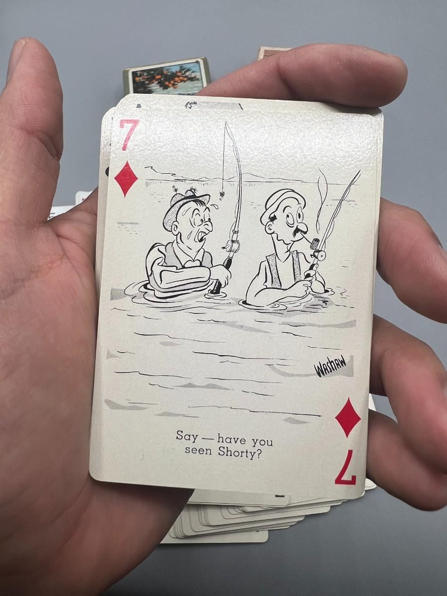 Vintage Playing Cards Fish Up 53 Different Fishing Cartoons Playing Cards & California Souvenir Scenery Picture Cards