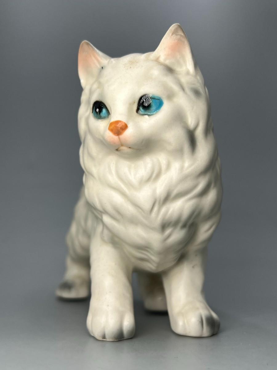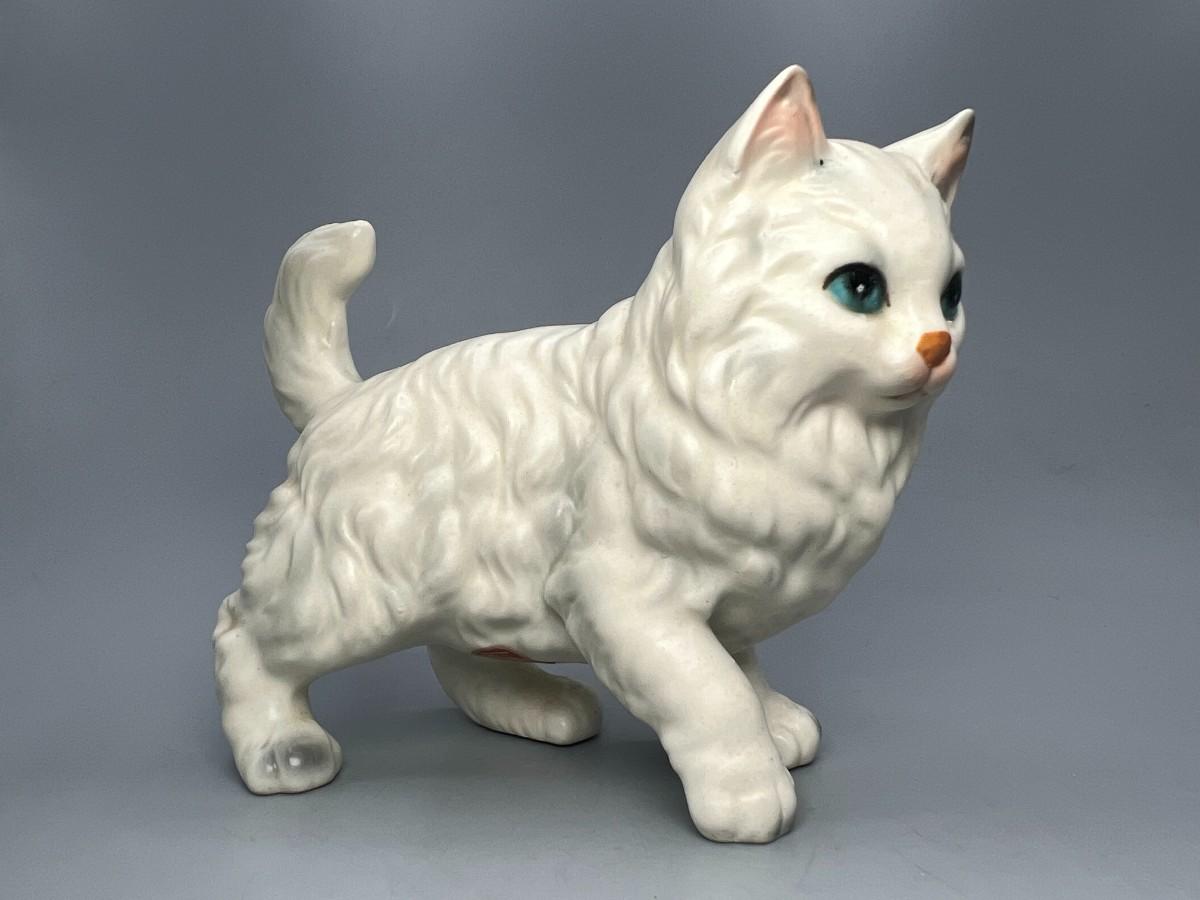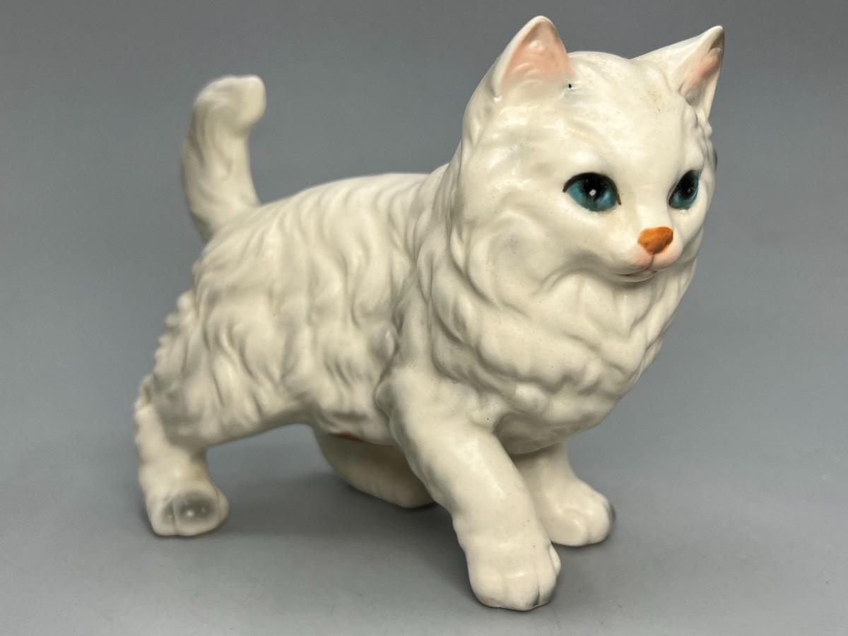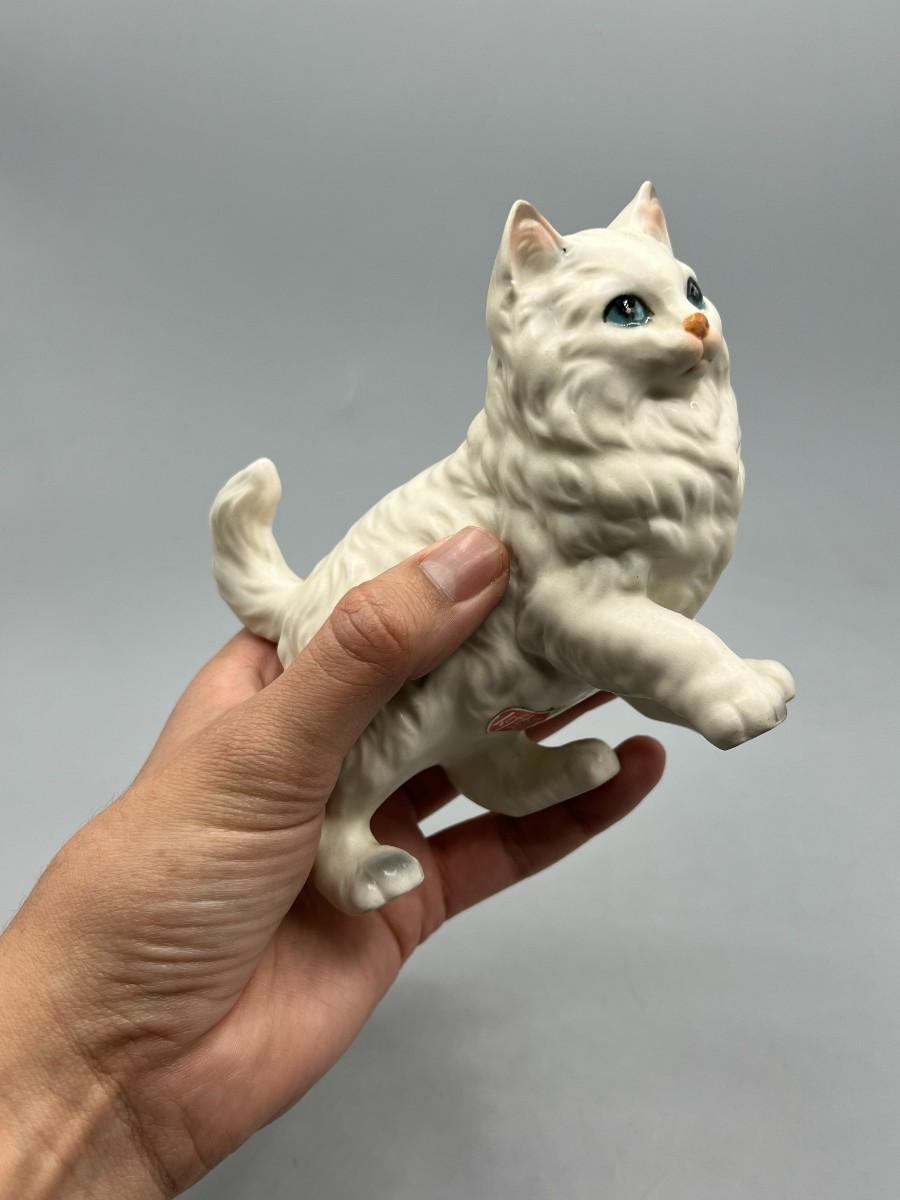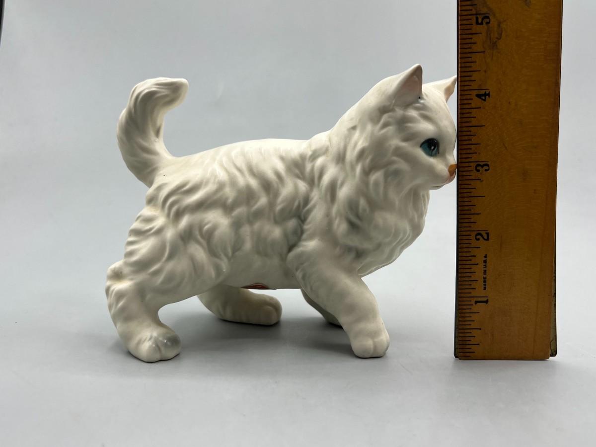 Vintage Lefton Ceramic Porcelain White Persian Cat Figurine H6364 Japan Statuette