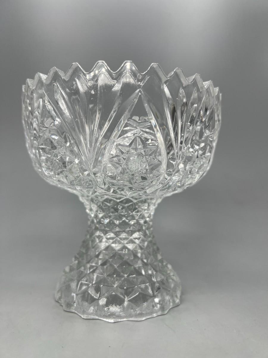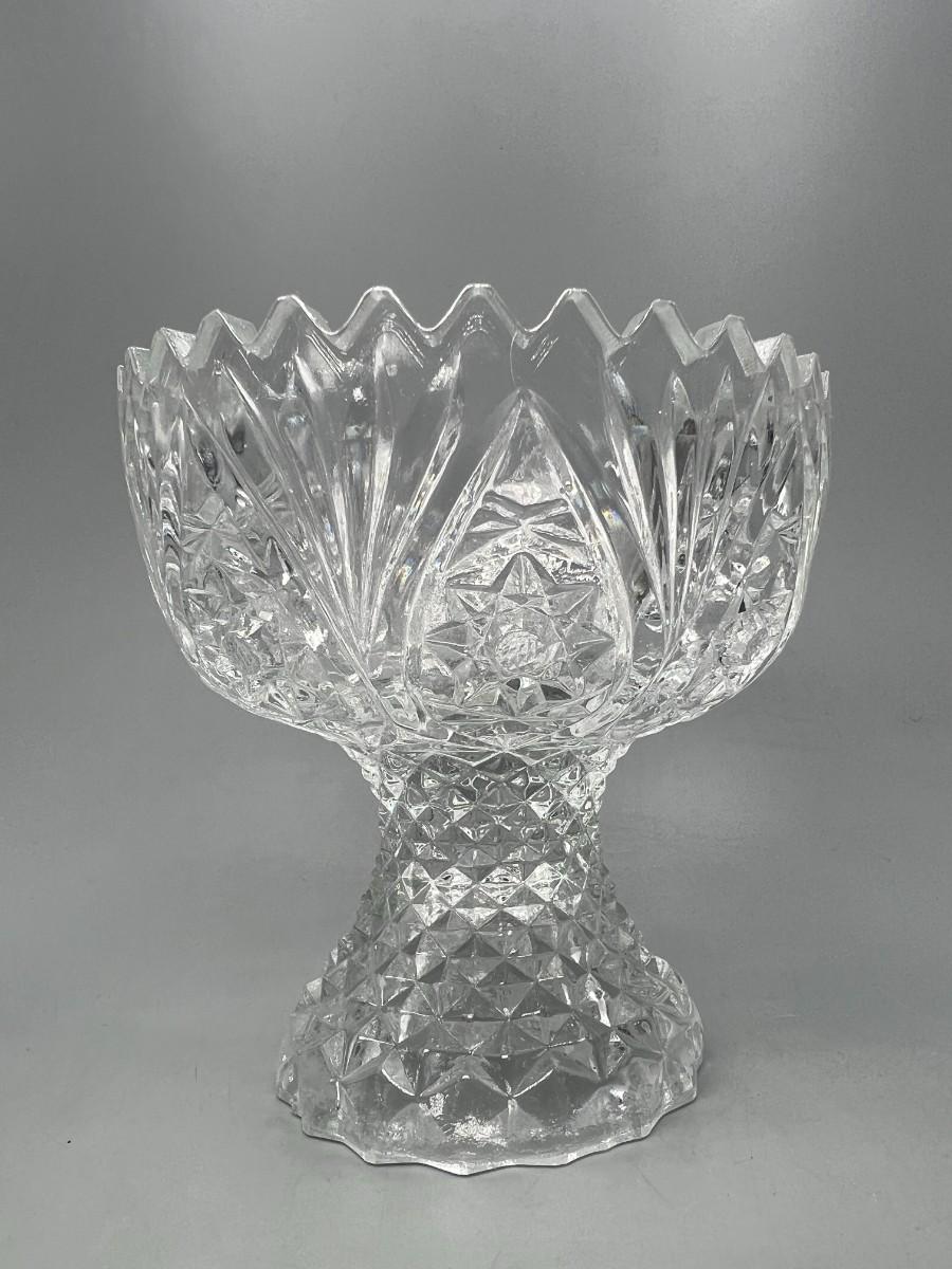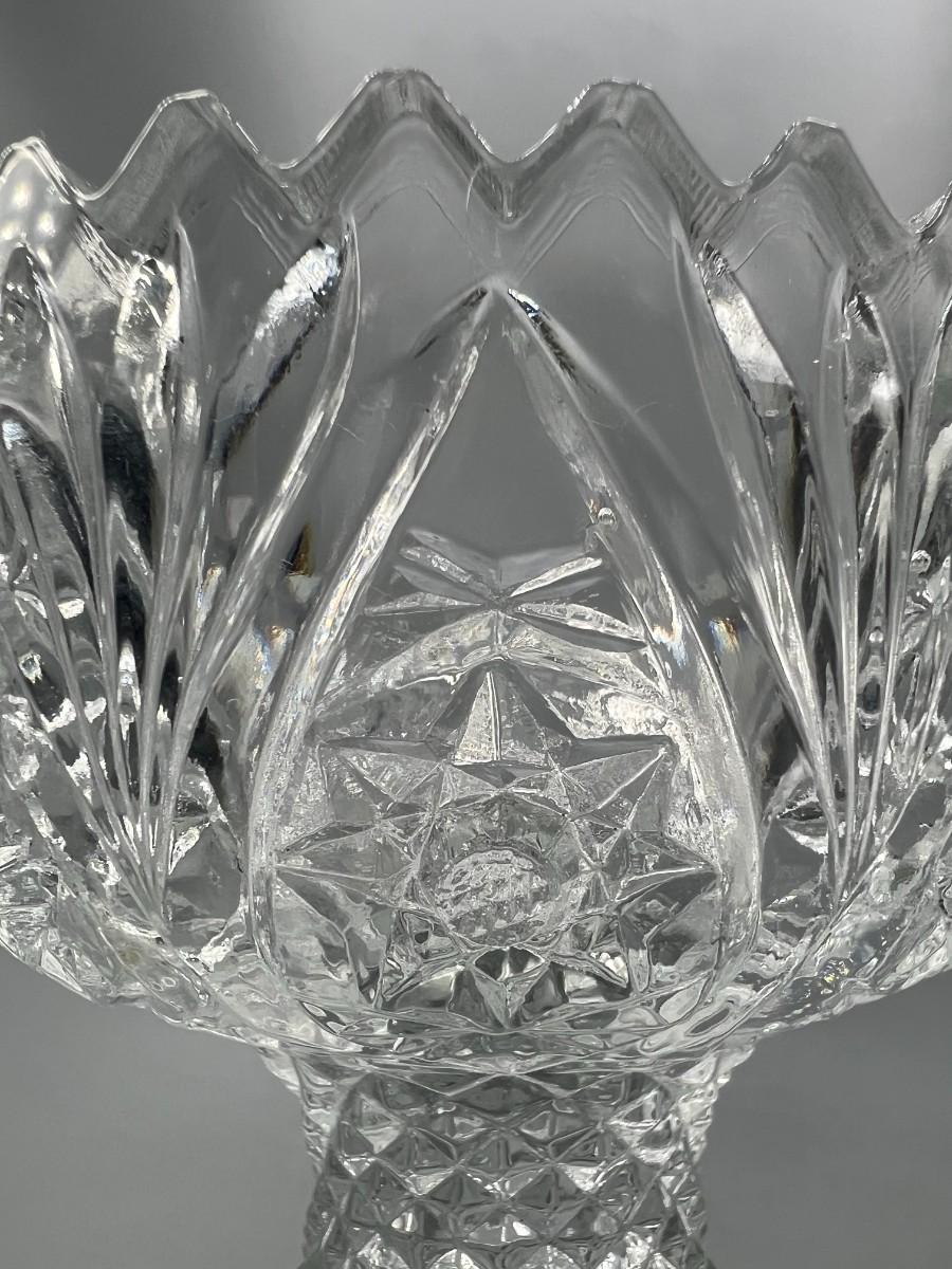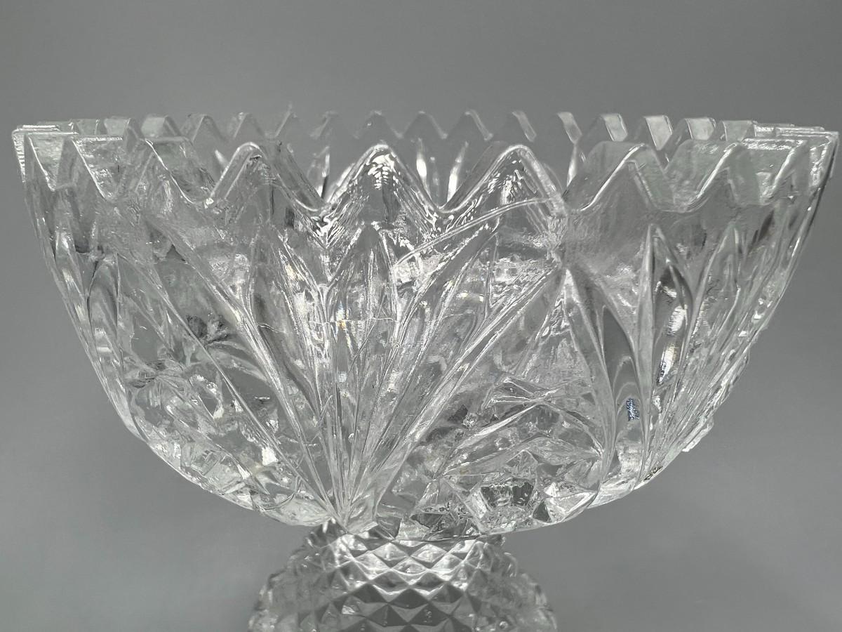 Vintage Mid-Century Crystal Glass Ruffled Edge Displayable Goblet Compote Sawtooth Rim